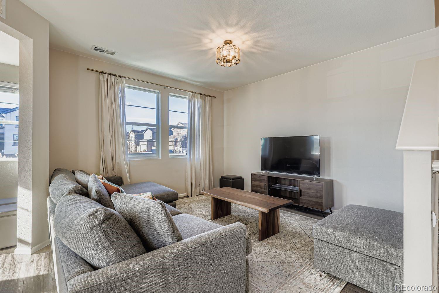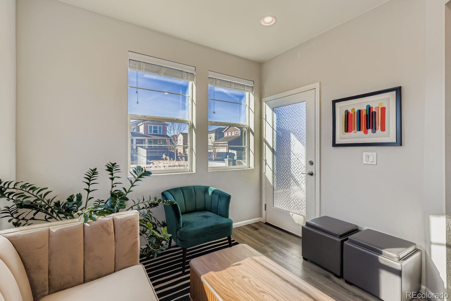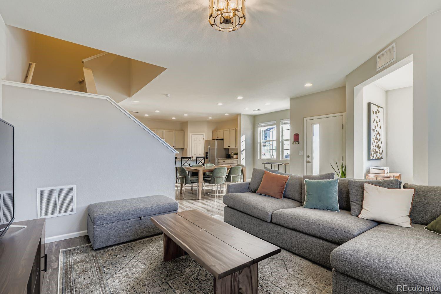Picture yourself living in this beautiful, bright townhome in Avion at Denver Connection West where you will enjoy access to The Denver Connection Hub Community Center with pools, fitness center, hot tub and year round events. The townhome is a well maintained end unit that has plenty of room with 4 bedrooms, 3 bathrooms, a bonus room and spacious patio for outdoor entertaining. The kitchen features a large island, stainless steel appliances, granite countertops and a pantry. The open floor plan flows from the kitchen into a large dining area, living room and bonus room. The bonus room leads out to the private patio. Enjoy convenient on-street parking directly outside the front door in addition to the attached 2 car garage. Denver Connection West is centrally located between downtown Denver and DIA with easy access to shopping, entertainment and restaurants. Enjoy strolls in the nearby park and scenic walking trails. Don't miss this opportunity to own a home that combines low maintenance living with aesthetic appeal.
