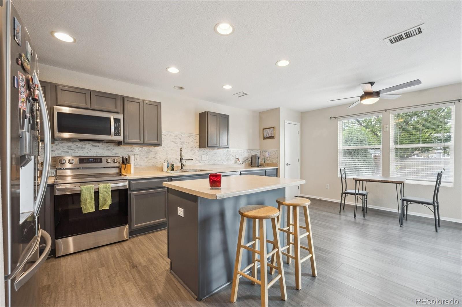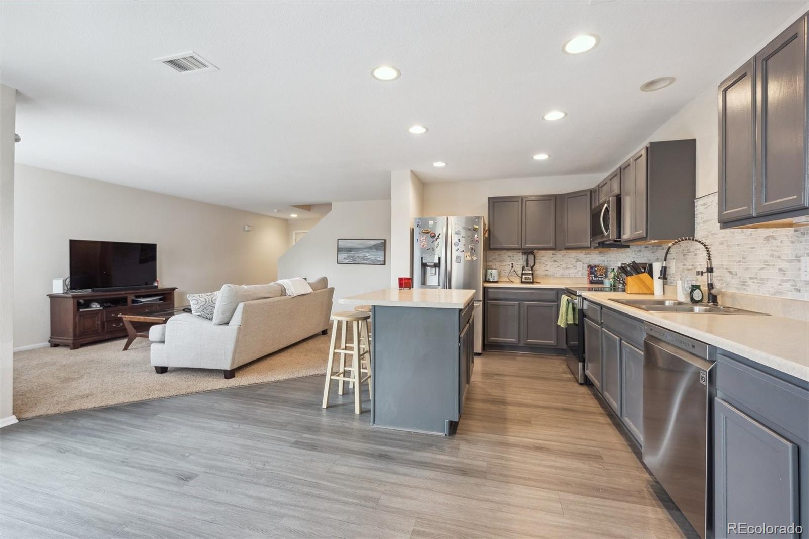 Seller is offering an upfront $5,000 closing cost concession towards interest rate buy down, closings costs and or pre-paids. Step into this beautifully updated home in Thornton, CO, where modern design meets everyday functionality. From the moment you enter, you'll notice the stylish upgrades throughout. The kitchen boasts brand-new appliances, refreshed cabinets in Behr’s elegant 'Graphic Charcoal,' and luxurious vinyl flooring that flows seamlessly across the main level, primary bathroom, and laundry room. The bathrooms have been thoughtfully renovated with contemporary vanities, countertops, and sinks, paired with updated lighting and plumbing fixtures that add a touch of sophistication throughout. Comfort and efficiency come standard thanks to a new Champion sliding patio door with screen and upgraded HVAC systems. Outside, the professionally landscaped backyard features a spacious deck—perfect for summer BBQs and entertaining. With so many modern touches, this move-in-ready home offers the perfect blend of style, comfort, and convenience. Don’t miss your chance to make it yours!