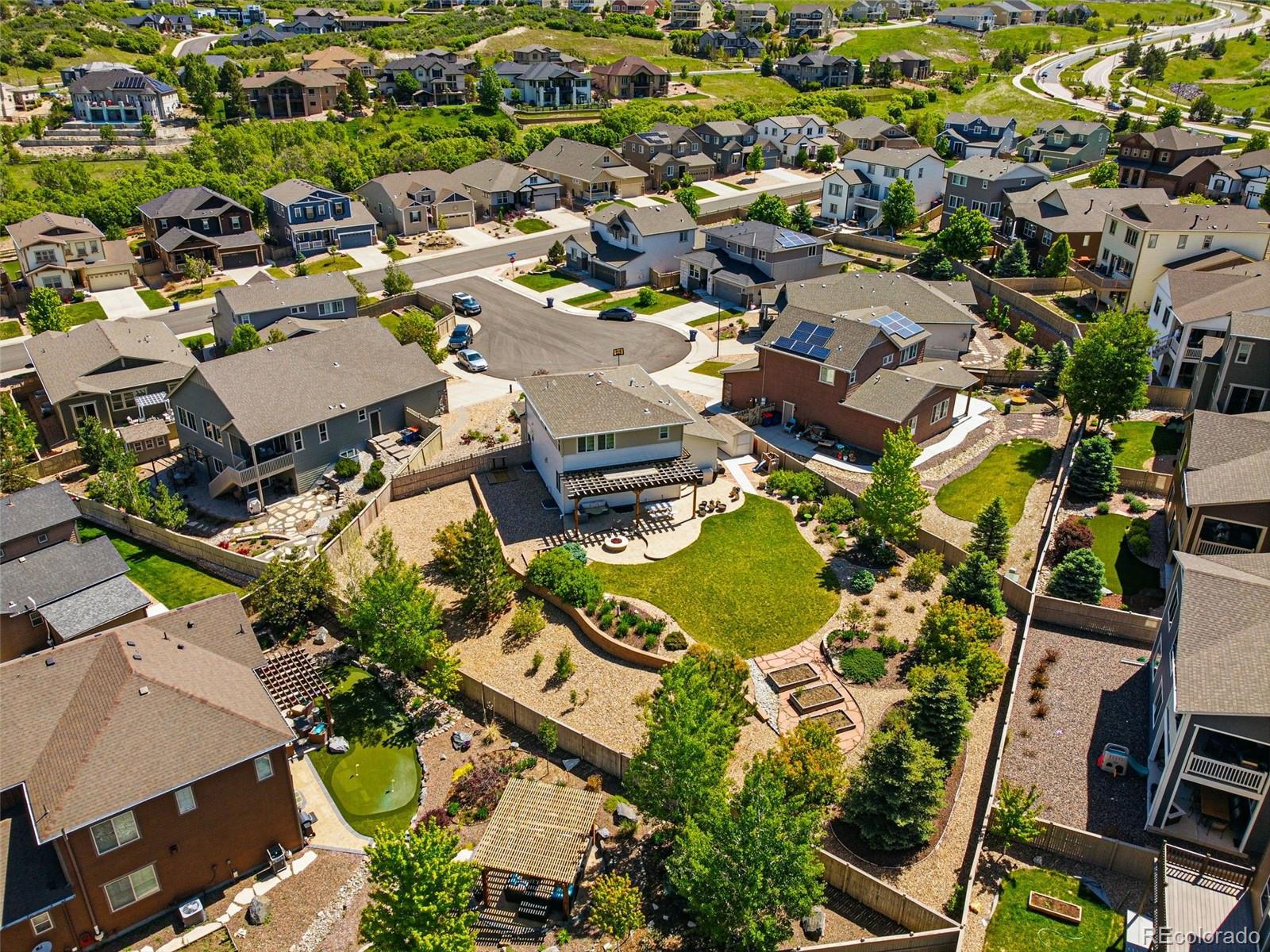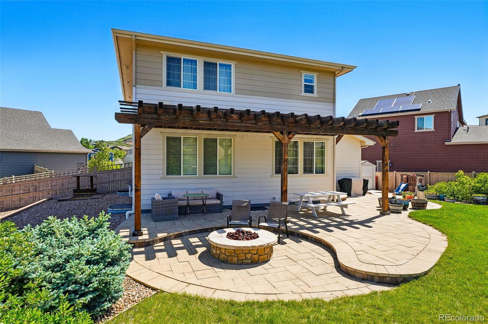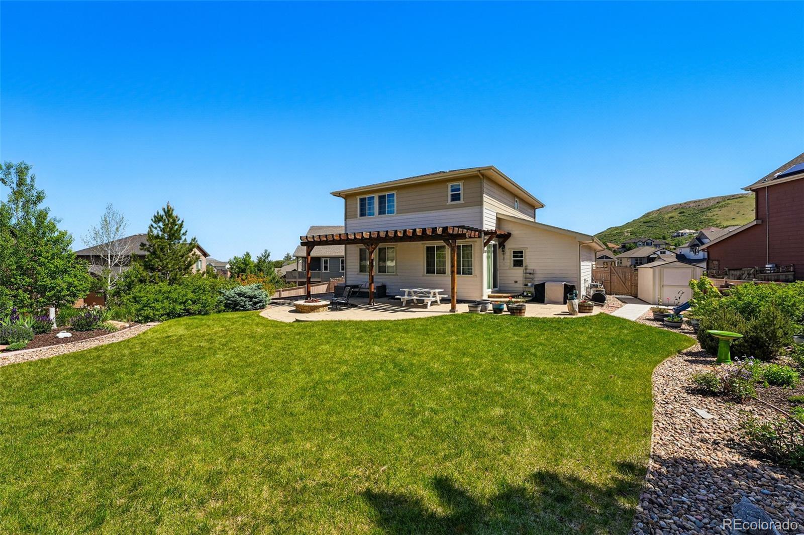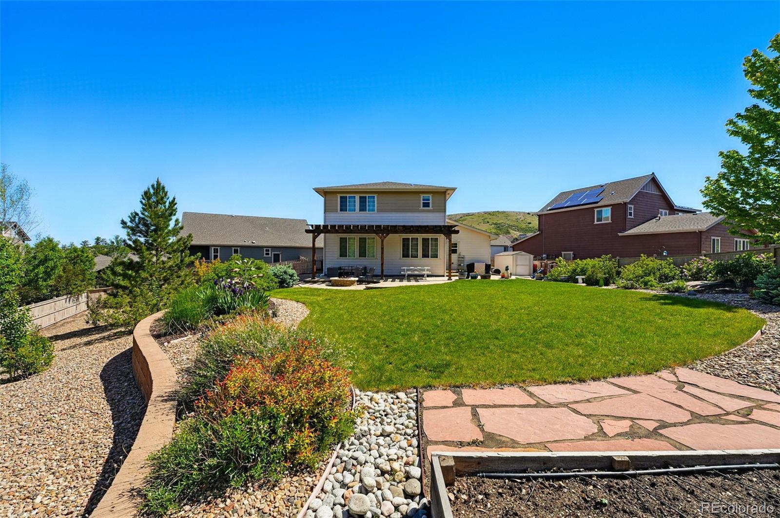 Donnington Way. Tucked at the end of a quiet cul-de-sac in Crystal Valley. Set on one of the largest lots in Kings Ridge, this home offers rare outdoor space and thoughtful interior flow. The main level centers around a kitchen with a large island that opens seamlessly to the primary living areas. Upstairs, the primary suite features a walk-in closet and en-suite bath, alongside a conveniently located laundry room and two additional bedrooms. The fully finished basement adds a fourth bathroom and versatile space ideal for a guest suite, gym, or media room. The oversized backyard is a true highlight. Fully fenced and professionally designed with a pergola, fire pit, raised planter beds, and plenty of room for pets, play, and entertaining. A storage shed and oversized two-car garage provide ample space for tools and gear. Kings Ridge residents enjoy access to community trails, parks, and the neighborhood pool, all just minutes from Downtown Castle Rock shopping and dining.*Preferred Lender Credit of up to 1% of loan amount. All loans are subject to approval. Terms and conditions apply. Lender is a licensed loan officer in the state of Colorado. Call listing agent for more info.*