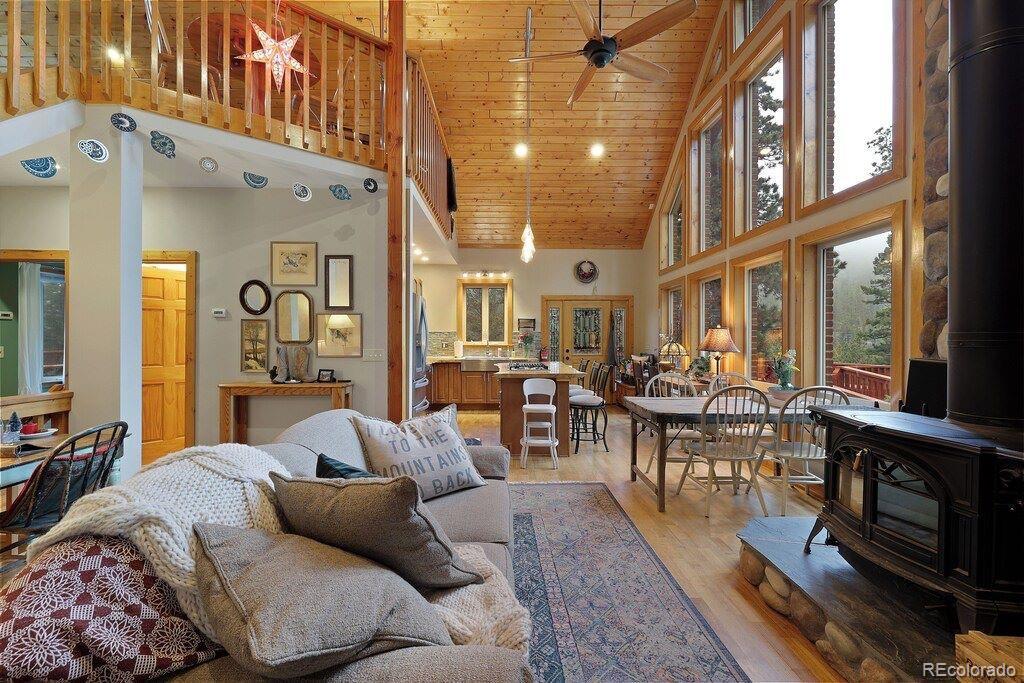 Discover a rare mountain retreat in Wetmore, Colorado, where privacy and natural beauty span 35 secluded acres. This two-story mountain-style home offers 2,338 square feet of thoughtfully designed living space, blending rustic charm with modern comfort. Built in 2002, the home features 3 bedrooms and 3.5 baths, ideal for everyday living or entertaining. The primary suite opens to an elevated wrap-around deck with sweeping views of the Wet Mountains. Inside, a wood-burning stove anchors the living room, creating a warm, inviting cabin feel perfect for quiet evenings or hosting guests. The partially fenced, forested acreage offers endless outdoor enjoyment, from relaxing on the covered patio to exploring your private shooting range and orchard. Nearby BLM land provides excellent hiking, hunting, and wildlife viewing amid dramatic canyons and rock outcroppings. Additional features include a detached heated entertainment building with electricity and plumbing, plus a renovated playhouse for storage, hobbies, or family fun. Designed for comfort and efficiency, the home includes an island kitchen with high-performance appliances, radiant in-floor heating, solar power, and a 17KW backup generator. Located just minutes from Westcliffe, you’ll enjoy convenient access to medical services, a regional airport, and year-round recreation, with the Great Sand Dunes and Arkansas River close by.
