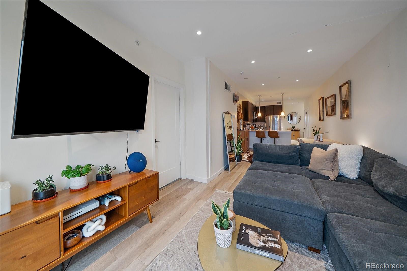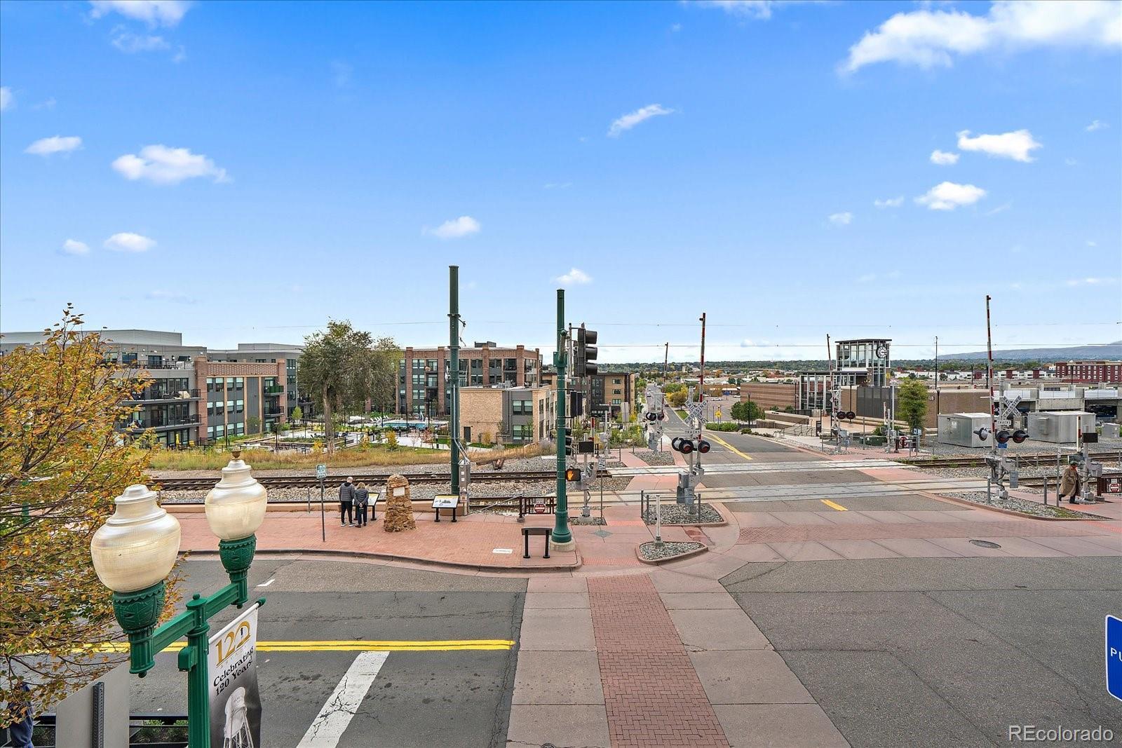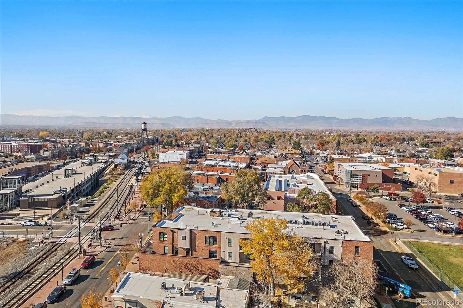 Live at the heart of Olde Town Arvada — where trendy meets timeless. This rare Grandview condo puts you steps from everything: coffee shops, brunch spots, breweries, yoga, boutiques, the G-Line, festivals, farmers markets, and those iconic brick-lined streets. Park in your secure garage, hop into the elevator, and you’re home in seconds. Inside, natural light pours through a wall of windows, opening to your oversized Grandview balcony with postcard views of the foothills, the water tower, and the Olde Town clock tower. It’s the backdrop everyone dreams of — sunrise coffee, sunset wine, and all the people-watching in between. The open layout features one of the largest living areas in the building—perfect for entertaining. The kitchen offers trendy selections & upgrades, while luxury vinyl plank flooring runs throughout. The primary bedroom has a spacious ensuite with double sinks, a walk-in shower, and a generous closet. A full guest suite rounds out the floor plan. If you want walkability, views, urban energy, and a lock-and-leave lifestyle in one of Colorado’s most charming downtown districts, this one checks every box
