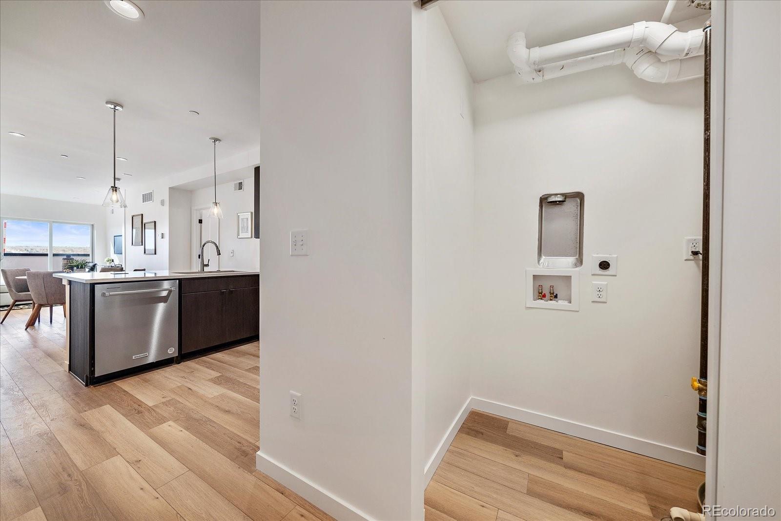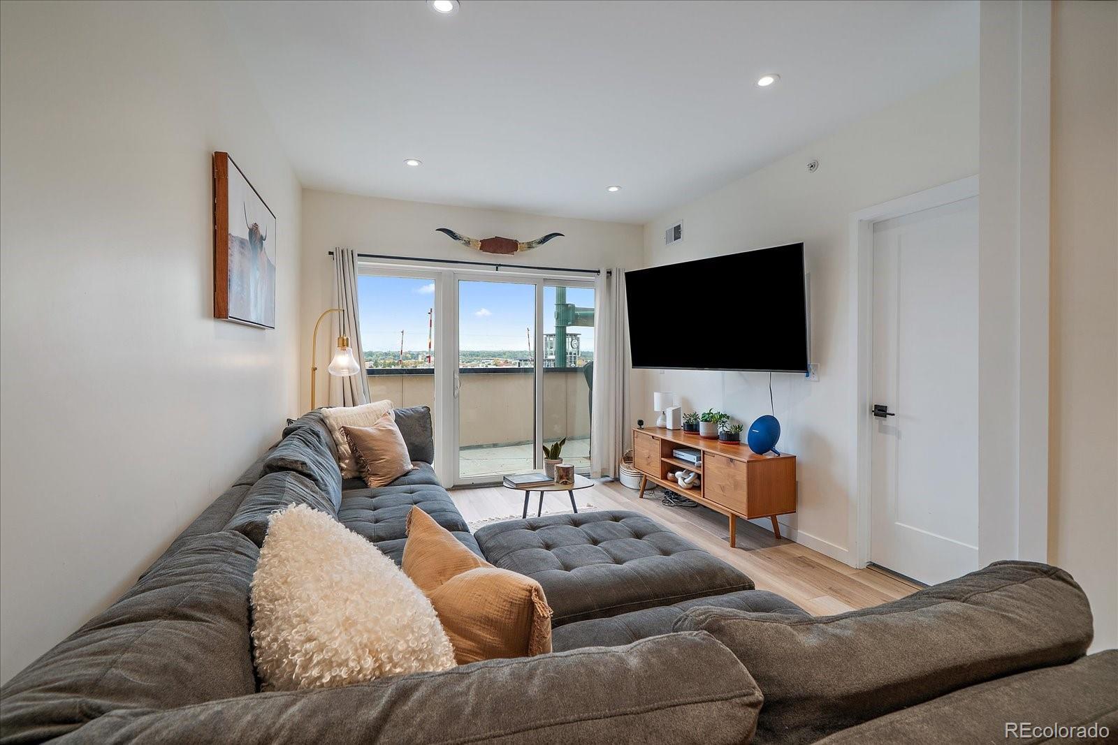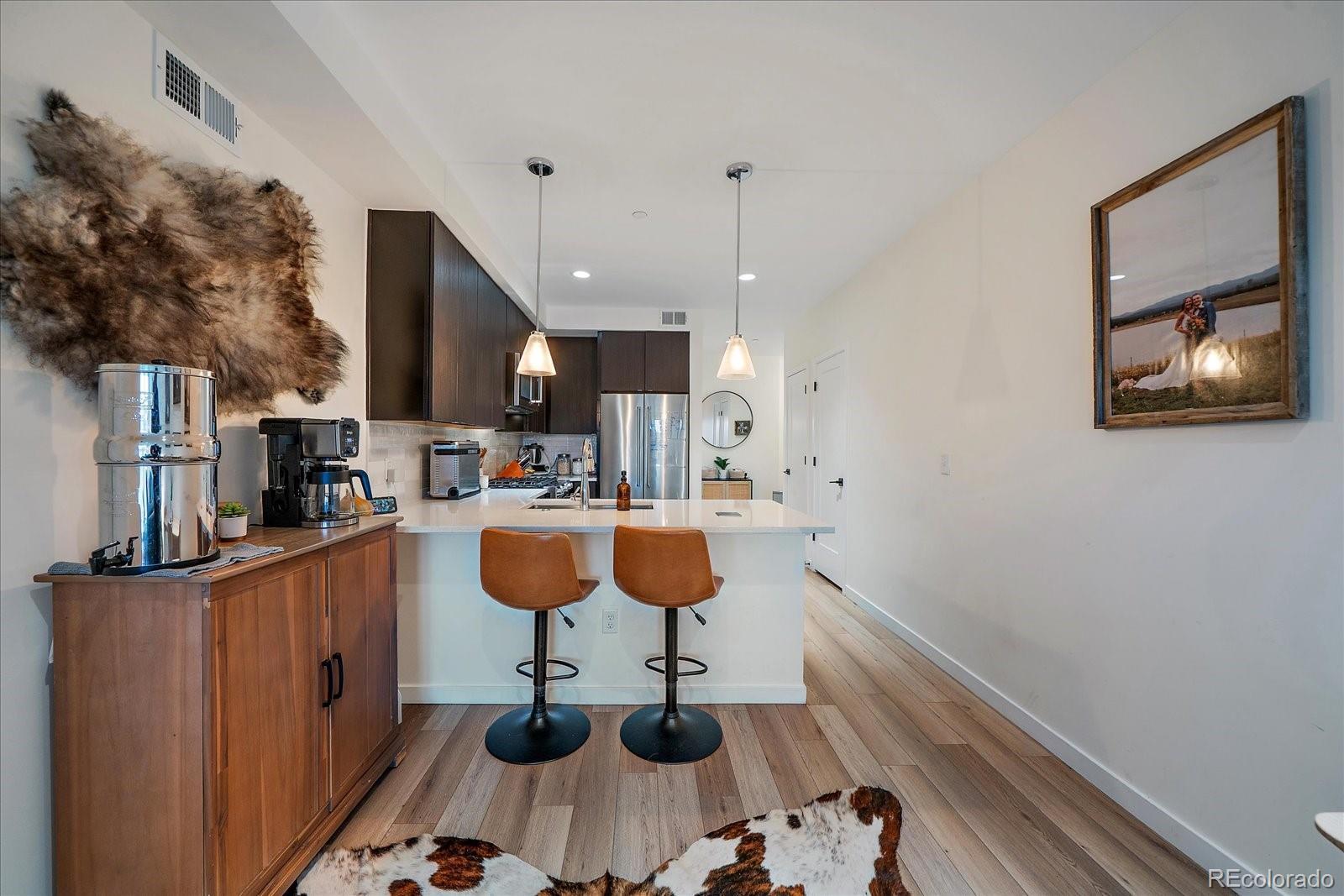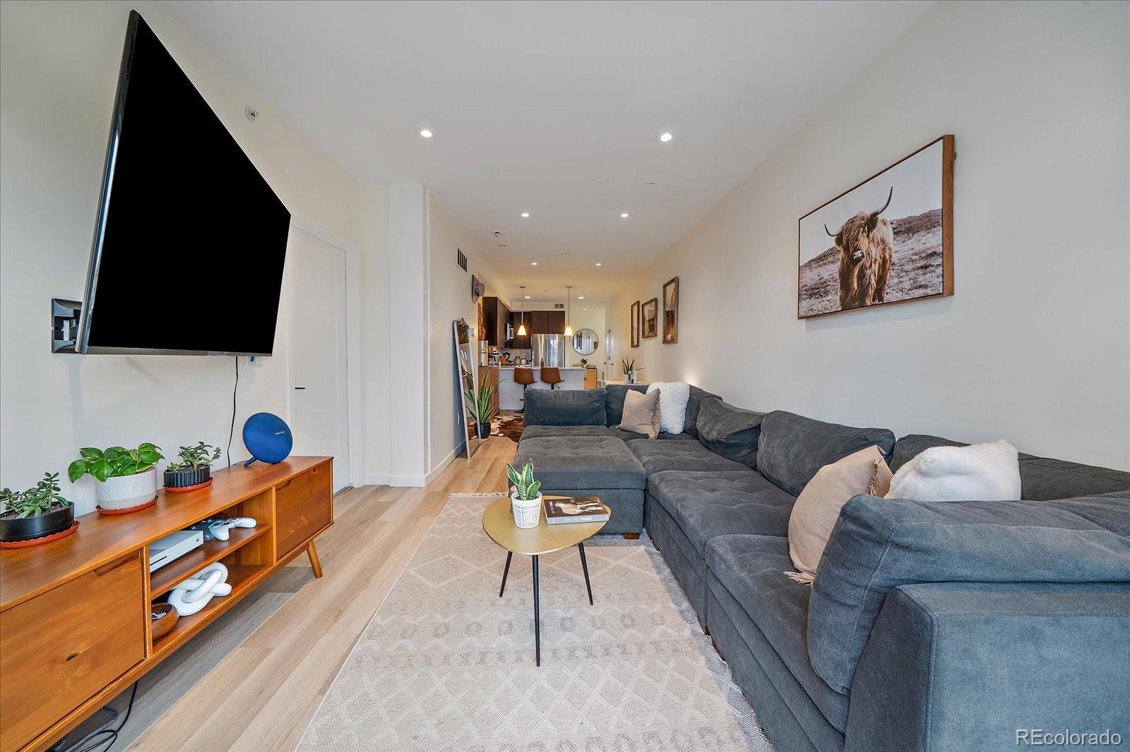 Live at the heart of Olde Town Arvada — where trendy meets timeless. This rare Grandview condo puts you steps from everything: coffee shops, brunch spots, breweries, yoga, boutiques, the G-Line, festivals, farmers markets, and those iconic brick-lined streets. Park in your secure garage, hop into the elevator, and you’re home in seconds. Inside, natural light pours through a wall of windows, opening to your oversized Grandview balcony with postcard views of the foothills, the water tower, and the Olde Town clock tower. It’s the backdrop everyone dreams of — sunrise coffee, sunset wine, and all the people-watching in between. The open layout features one of the largest living areas in the building—perfect for entertaining. The kitchen offers trendy selections & upgrades, while luxury vinyl plank flooring runs throughout. The primary bedroom has a spacious ensuite with double sinks, a walk-in shower, and a generous closet. A full guest suite rounds out the floor plan. If you want walkability, views, urban energy, and a lock-and-leave lifestyle in one of Colorado’s most charming downtown districts, this one checks every box