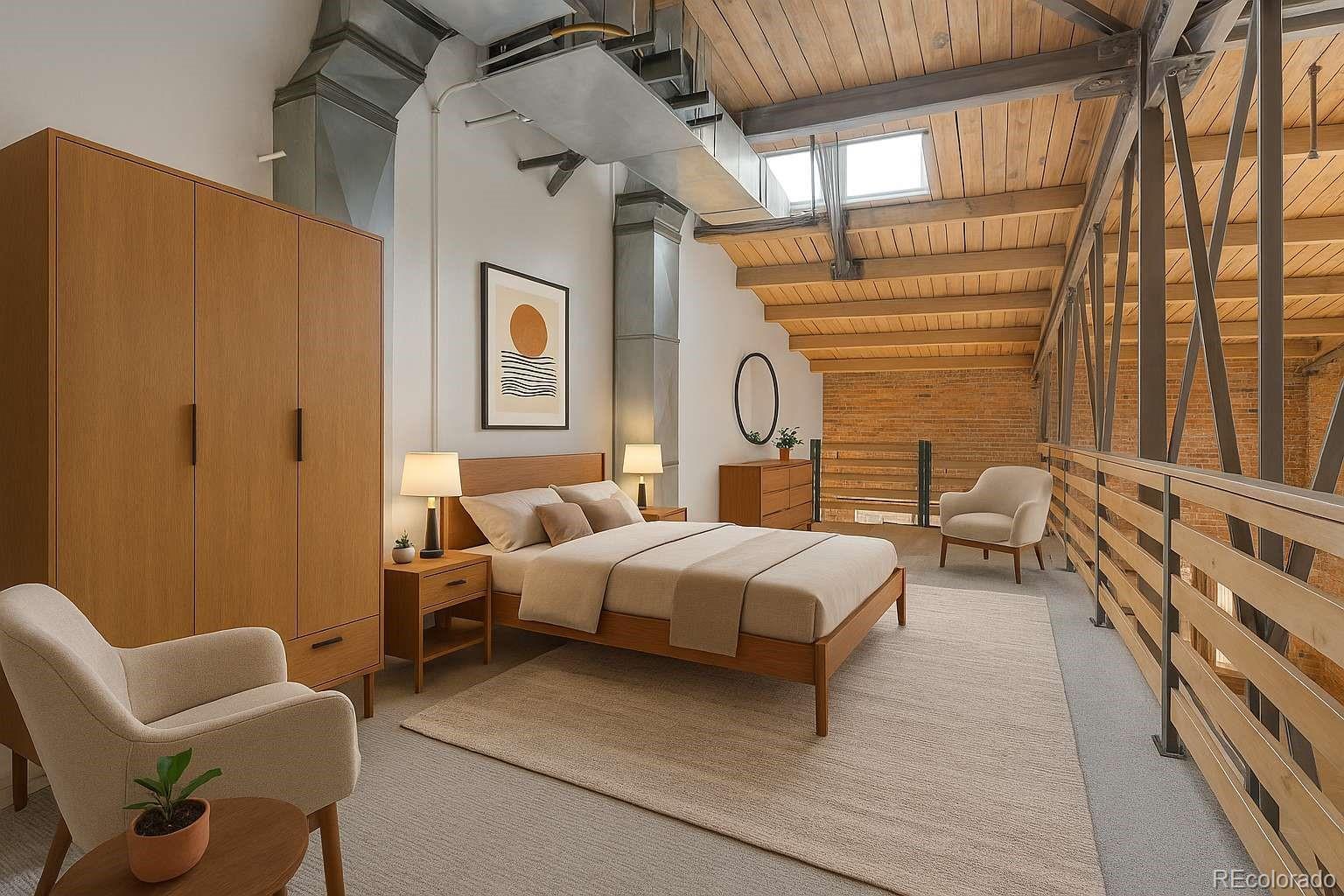 Introducing a rare opportunity to own a stunning two-level brick Live/Work Loft in the highly sought-after Rail Yard Lofts in Denver’s vibrant RiNo Arts District. This unique space features exposed brick walls, soaring vaulted timber ceilings, polished concrete floors, and new paint throughout that blend industrial charm with modern living. The flexible open-concept layout allows you to create the rooms that best suit your lifestyle, whether for living, working, or both. The efficient kitchen is equipped with stainless steel appliances that an include a French door refrigerator, dishwasher, range and microwave, and the upper-level loft serves as a spacious bedroom retreat with new carpet. Enjoy your own private patio for outdoor relaxation and take advantage of two covered & gated parking spaces. With a front door that opens directly to street this makes this an ideal Live/Workspace. Outside explore the vibrant neighborhood of RiNo—walk to local restaurants, art galleries, and breweries, and soak in the neighborhood's eclectic culture. With convenient access to the light rail and close by access to the A-Line train to Denver International Airport (DIA). If you're searching for an urban Loft that offers both energy and serenity, your perfect balance awaits right here. Some photos are virtually staged.
