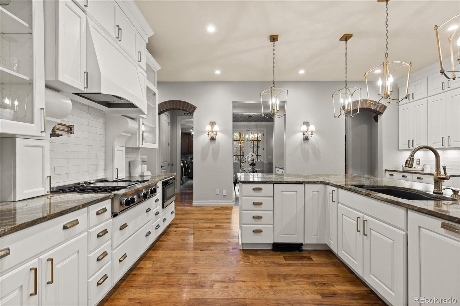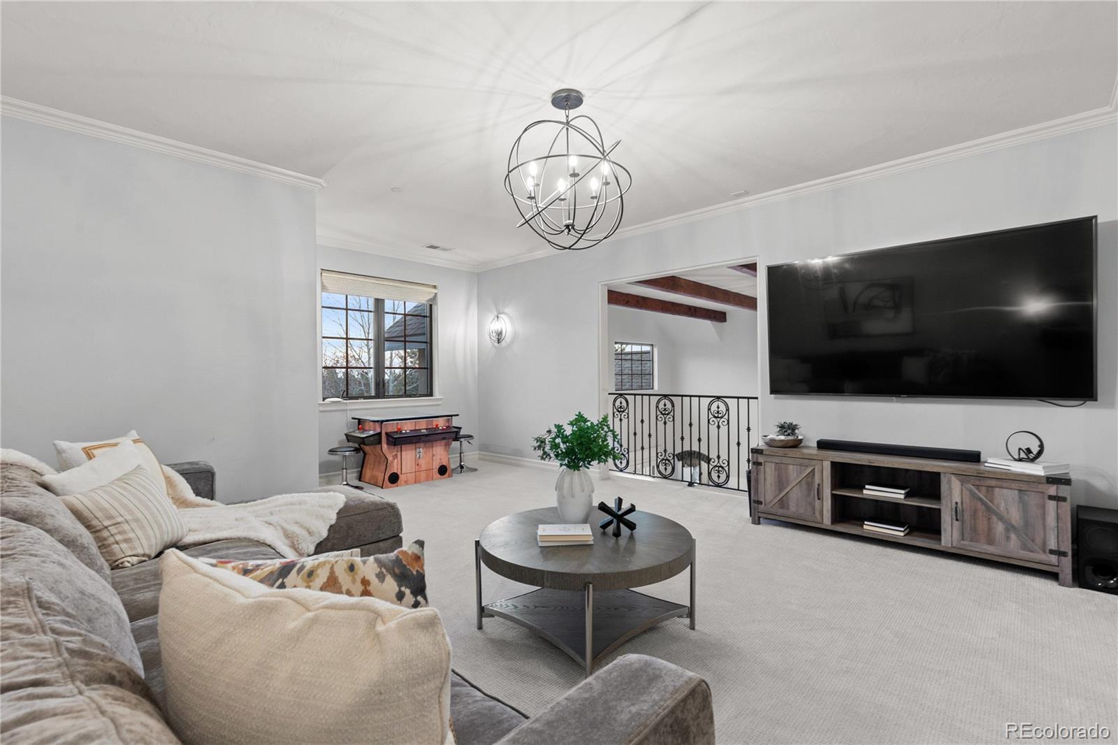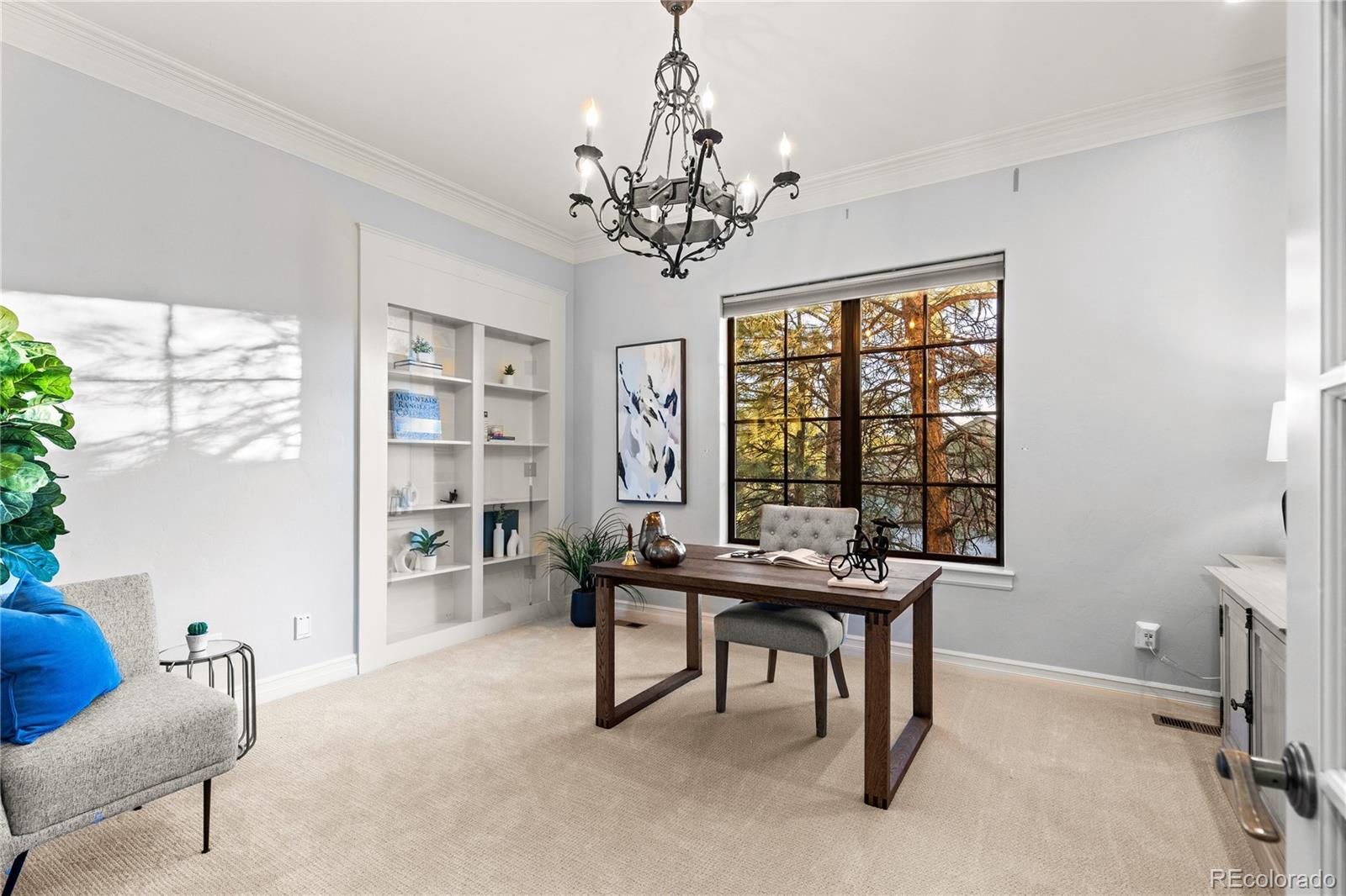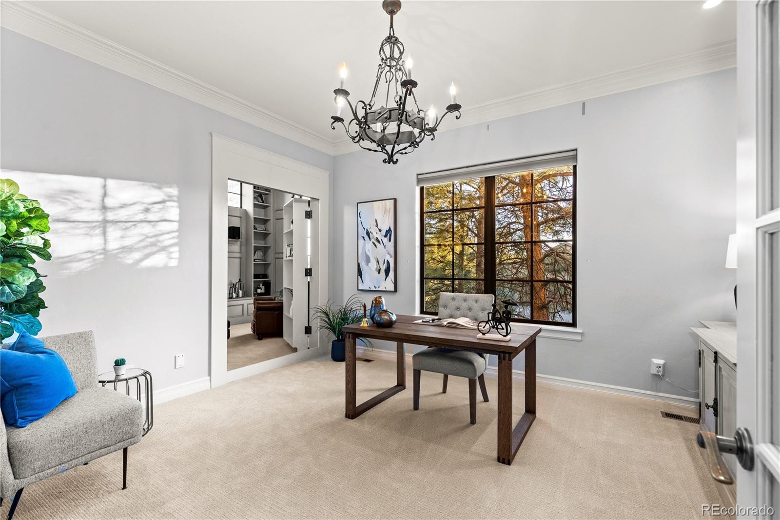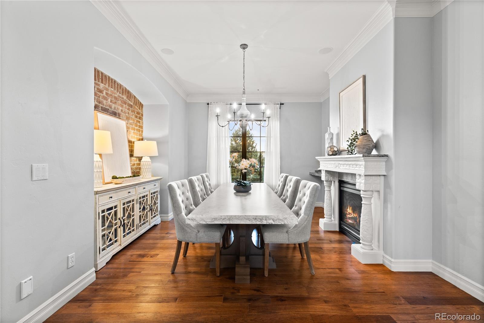 Tucked within the gated Estates at Buffalo Ridge and backing to open space, this 10,000+ square foot French country-inspired residence delivers the kind of everyday luxury that feels both grand and genuinely livable. Soaring ceilings, rich architectural detail, and multiple fireplaces set a warm tone throughout, while the heart of the home is designed for gathering with a newly renovated chef’s kitchen featuring professional-grade appliances and a wine room. A main level primary retreat and a private guest suite make daily living easy, and a hidden study tucked behind a built-in bookcase adds a memorable touch. Out back, the setting is a standout. This backyard was built for Colorado living, with a covered patio, outdoor fireplace, built-in grill, fire pit, spa, and a water feature that brings a calm, resort-like feel. Whether it’s quiet mornings with coffee, evenings under the stars with friends, or weekends that never need plans beyond home, the outdoor living here is special. With two attached garages accommodating three cars, a lower level with a professional Atmos theater, and access to community amenities including golf, pool, and clubhouse, this is a rare Castle Pines offering that blends privacy, lifestyle, and presence in one exceptional address.