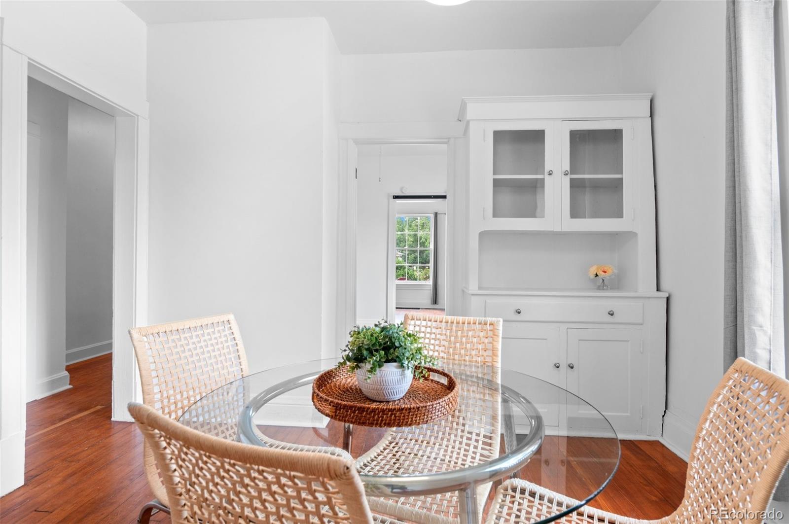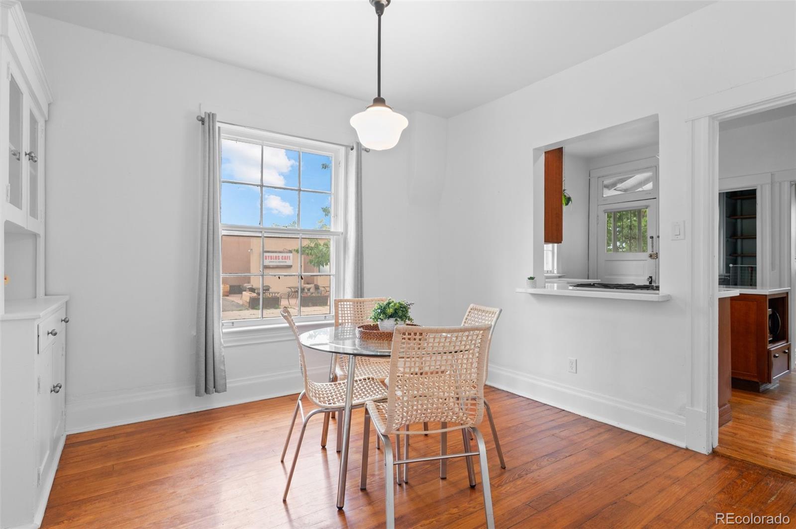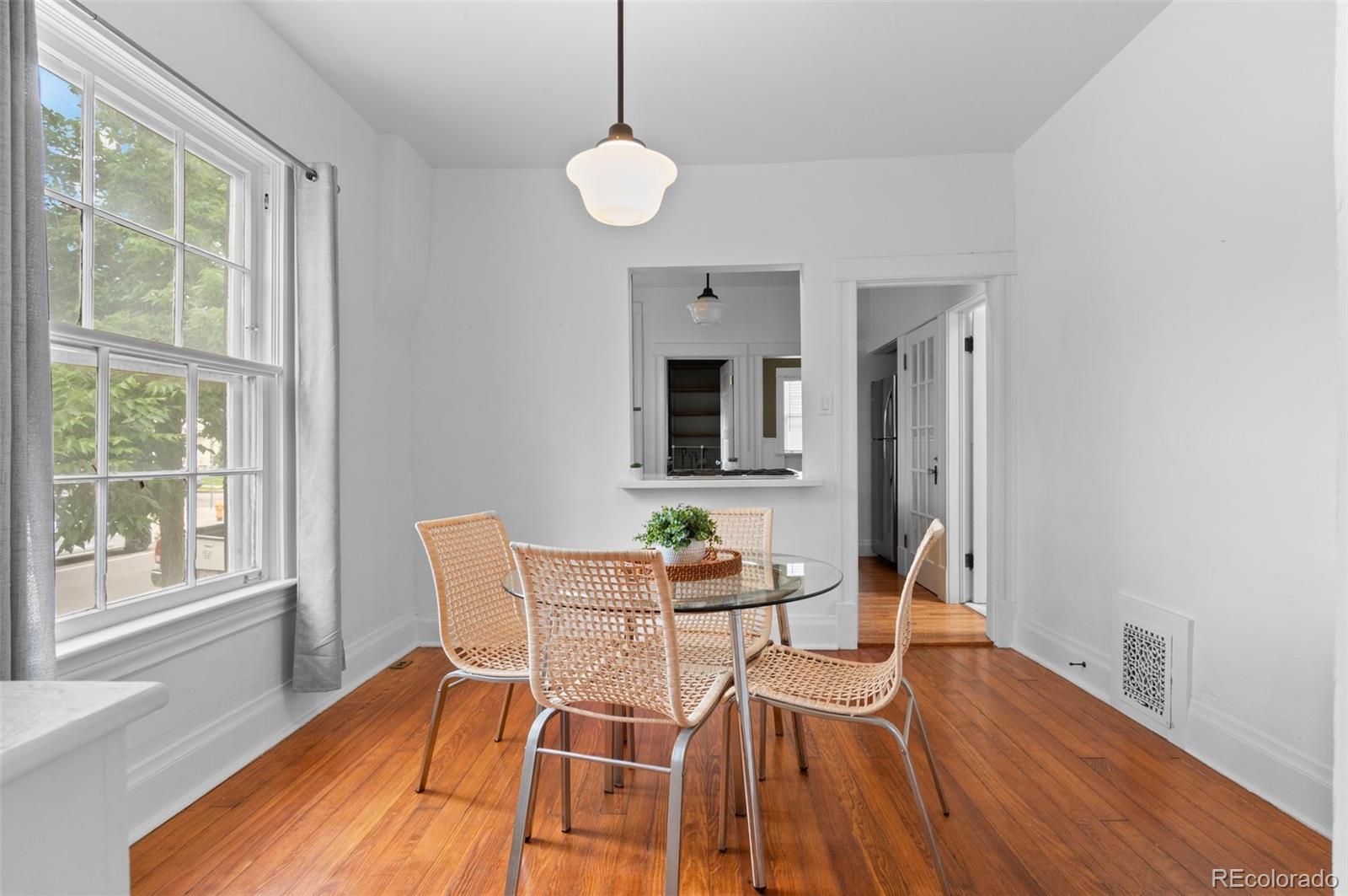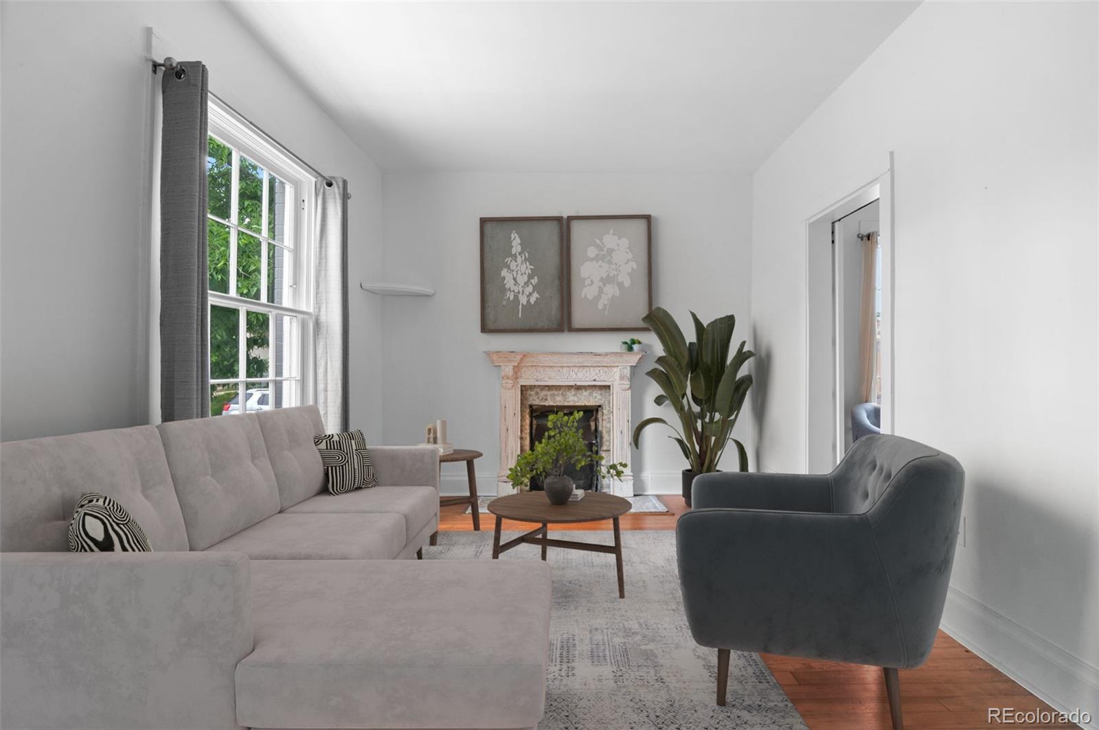 Nestled in the heart of Denver’s Alamo Placita neighborhood, this charming historic row home perfectly blends classic character with modern convenience. Featuring three bedrooms and one bathroom, the home boasts a bright and inviting main level with high ceilings and gleaming wood floors throughout. Historic details abound, from the decorative fireplace to built-in shelving, creating a warm and welcoming atmosphere. The thoughtfully designed pass-through from dining room to kitchen enhances the flow between spaces, leading to a beautifully updated kitchen with Quartz countertops, stainless steel appliances, natural gas range, spacious island, and walk-in pantry. The home offers two comfortable bedrooms on the main level, while the third bedroom or bonus space in the basement provides versatility to suit your needs. Step outside to the fenced, private patio, perfect for outdoor relaxation or entertaining. Enjoy the convenience of a truly walkable lifestyle. Find yourself just moments from dining, shopping, and amenities, all while embracing the timeless charm of this historic gem. Don't miss the opportunity to own a piece of Denver history in one of its most desirable neighborhoods!