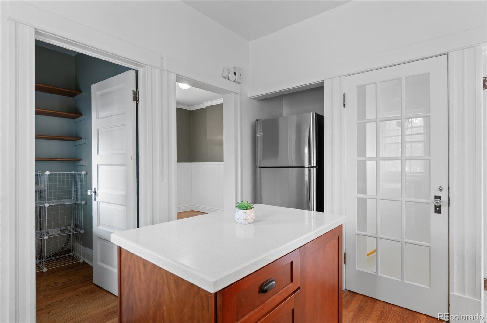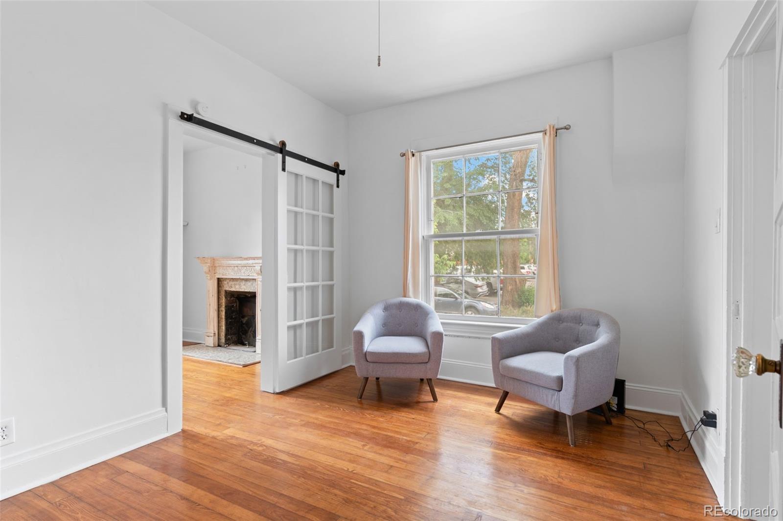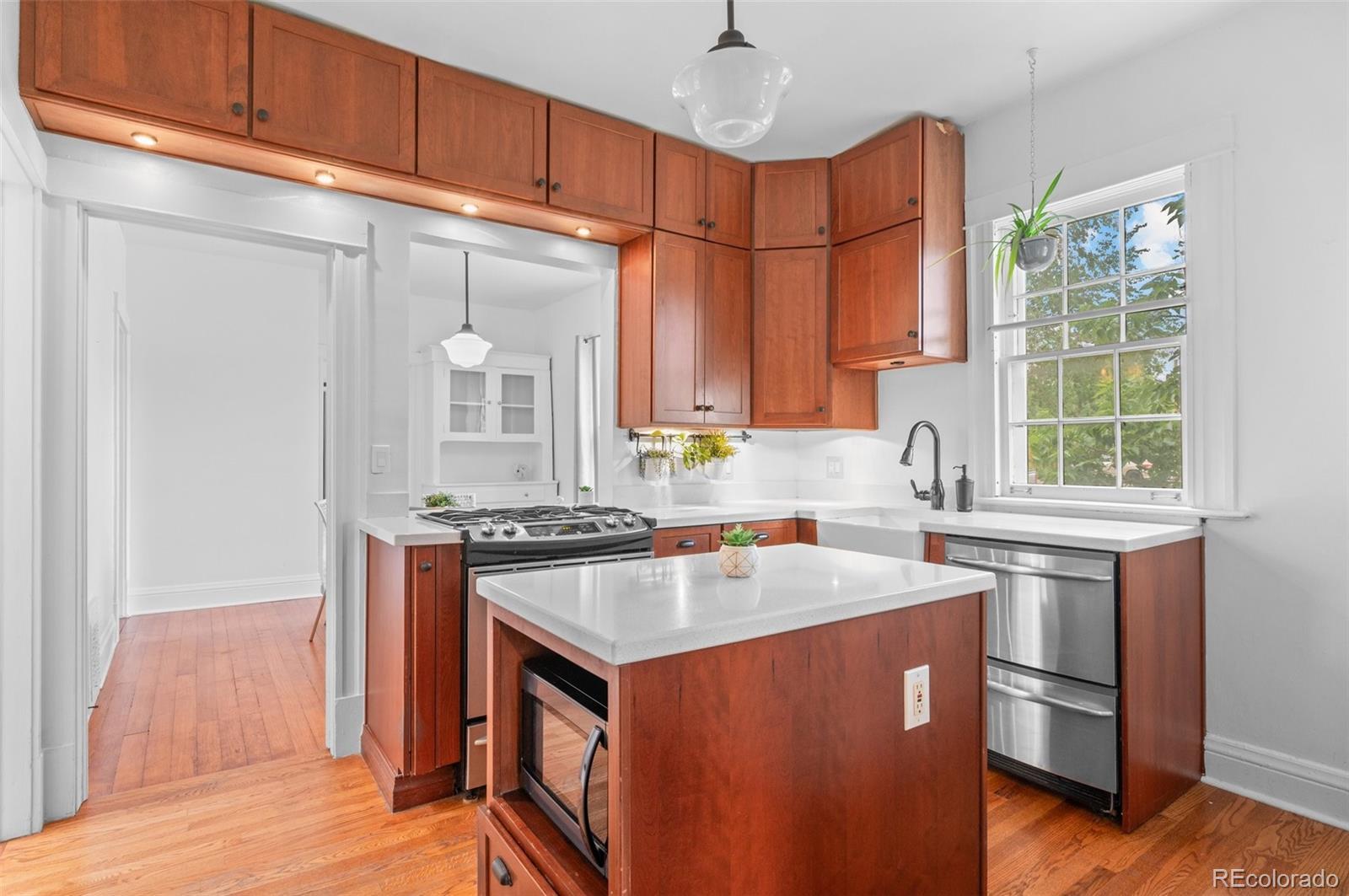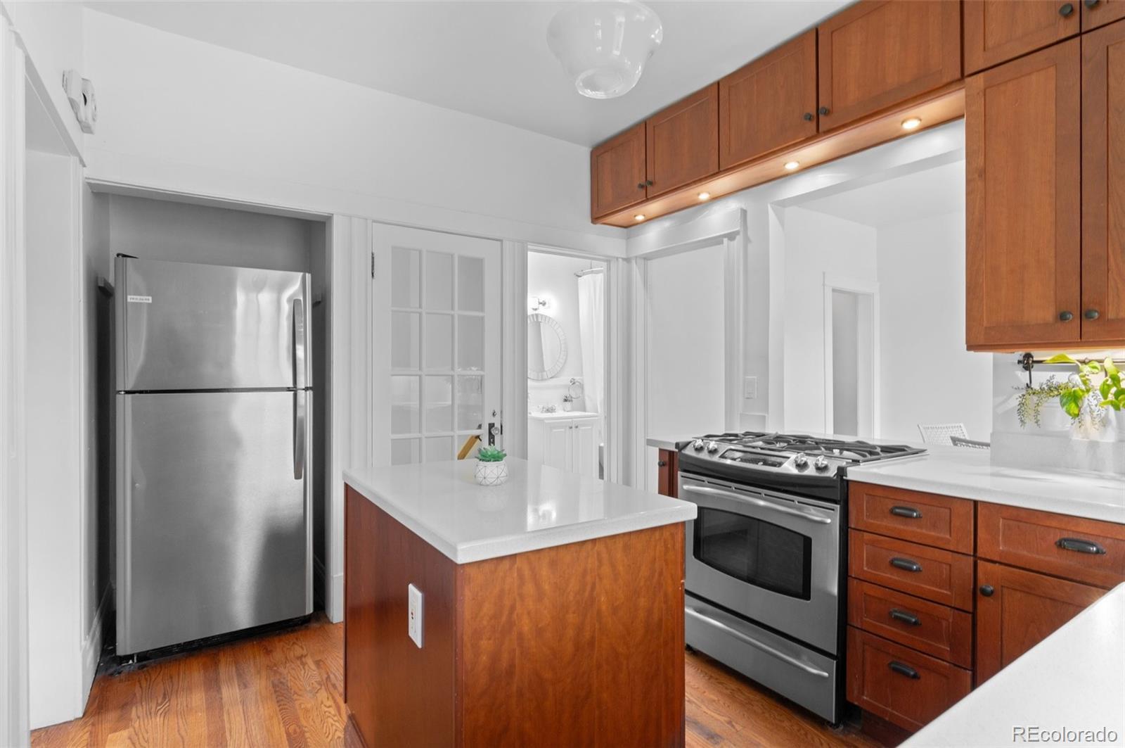 Nestled in the heart of Denver’s Alamo Placita neighborhood, this charming historic row home perfectly blends classic character with modern convenience. Featuring three bedrooms and one bathroom, the home boasts a bright and inviting main level with high ceilings and gleaming wood floors throughout. Historic details abound, from the decorative fireplace to built-in shelving, creating a warm and welcoming atmosphere. The thoughtfully designed pass-through from dining room to kitchen enhances the flow between spaces, leading to a beautifully updated kitchen with Quartz countertops, stainless steel appliances, natural gas range, spacious island, and walk-in pantry. The home offers two comfortable bedrooms on the main level, while the third bedroom or bonus space in the basement provides versatility to suit your needs. Step outside to the fenced, private patio, perfect for outdoor relaxation or entertaining. Enjoy the convenience of a truly walkable lifestyle. Find yourself just moments from dining, shopping, and amenities, all while embracing the timeless charm of this historic gem. Don't miss the opportunity to own a piece of Denver history in one of its most desirable neighborhoods!