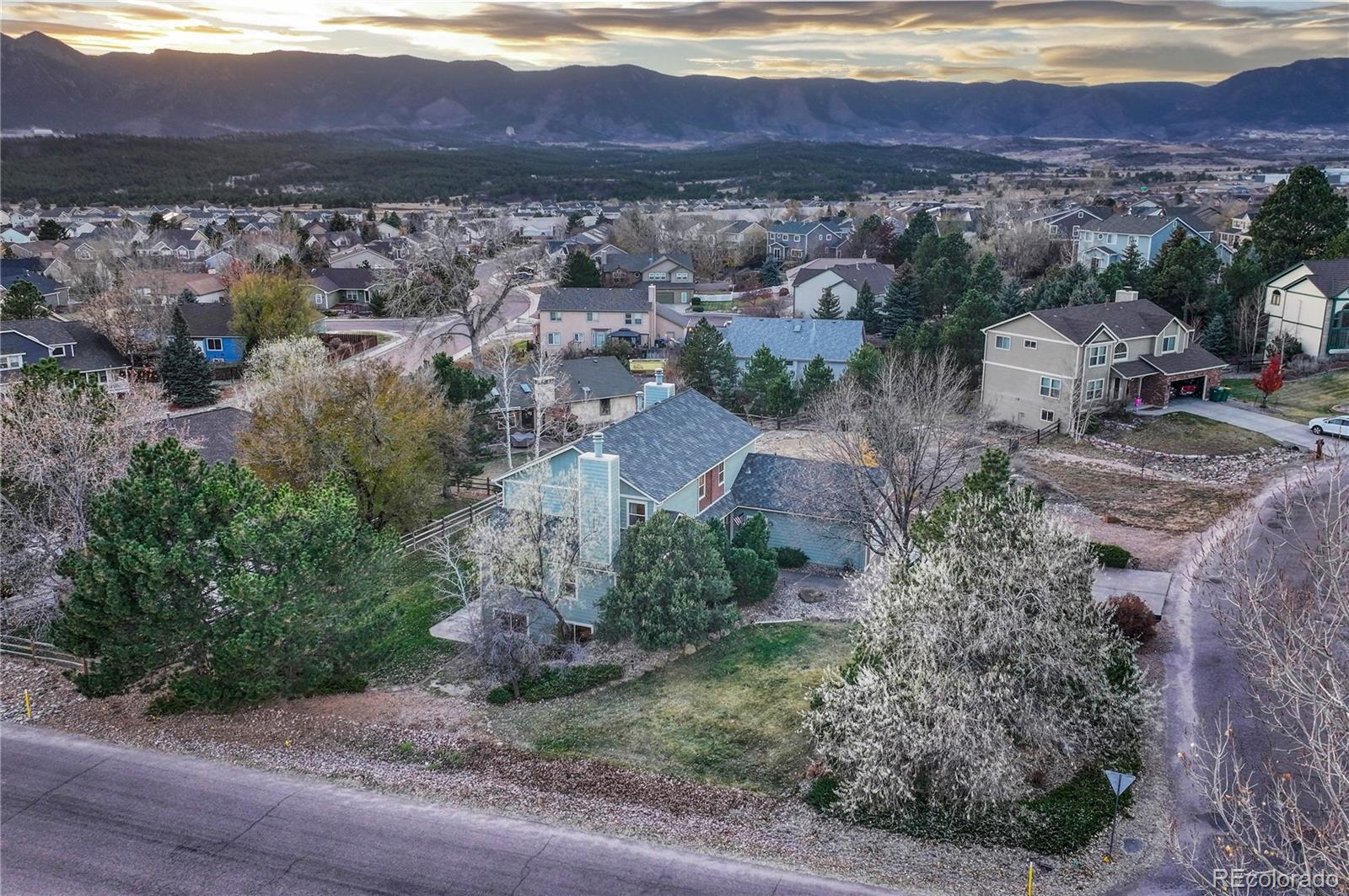 Wanting something that feels like home? Cozy? Inviting? Spacious? Look no further. 6 generously sized bedrooms and 4 bathrooms provide ample room for family living and entertaining. Located on .37 of an acre, this corner lot has many wonderful areas for play! South facing deck to enjoy coffee or sunset cocktails. On the main level, take advantage of one bedroom and two living areas that invoke comfort. This home boasts sleek new stone countertops, offering a stylish and functional kitchen and bathrooms. Upstairs enjoy a great jack and jill bathroom with bluetooth speakers within the lighting! The four bedrooms upstairs each have built in shelving too! Enjoy the elegance of newly refinished floors and tastefully painted walls throughout. Three beautiful gas fireplaces enhance the home's cozy, welcoming atmosphere. The downstairs walkout basement is where the fun begins! Large recreation area with LVP and an office and bedroom with ample storage. Step outside to find mature landscaping and an inviting outdoor space perfect for relaxation or entertaining. Close to the Air Force Academy, shopping, trails and I-25. This truly is one of those homes when you walk in, your heart is happy.