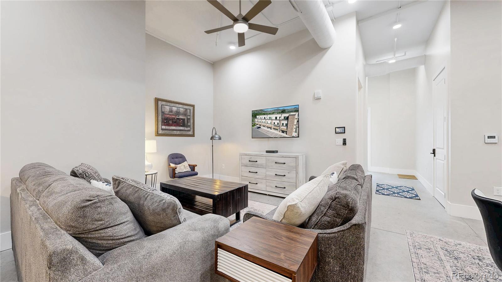 2 BED CONDO | STR ELIGIBLE | HEART OF GOLDEN Short Term Rental, 2 bedroom units in locations like this are a rare find - would you like to learn more? The Golden Fossil Point community is one of the newest projects in downtown Golden area offering high efficiency, low maintenance industrial contemporary condos. Unit 101 is one of only three 2 bedroom units in the complex and features 13' ceilings, carpeted and marbled concrete floors, Colorado cabinet and quartz finished kitchens, tiled bathrooms and showers, and more! This turnkey unit is being sold fully furnished with stainless steel appliances and a 14 month home warranty to make transition to use super convenient. This unit includes washer / dryer and large storage closets. There are two reserved parking spaces on adjacent lot and visitor parking for guests. Your HOA maintains the property including landscaping and community picnic area with foothill backdrops. This building is a few blocks from Washington St amenities, just steps from South TableTop and Lookout Mountain trail heads, 5 minutes to RTD light rail stop, and quick commutes to downtown Denver and Boulder. Inquire for investment prospectus and property management proposal; this unit can be used for residential or commercial purposes as allowed by city zoning. Please take a few minutes for a virtual tour and to learn more at: LGcondo.com