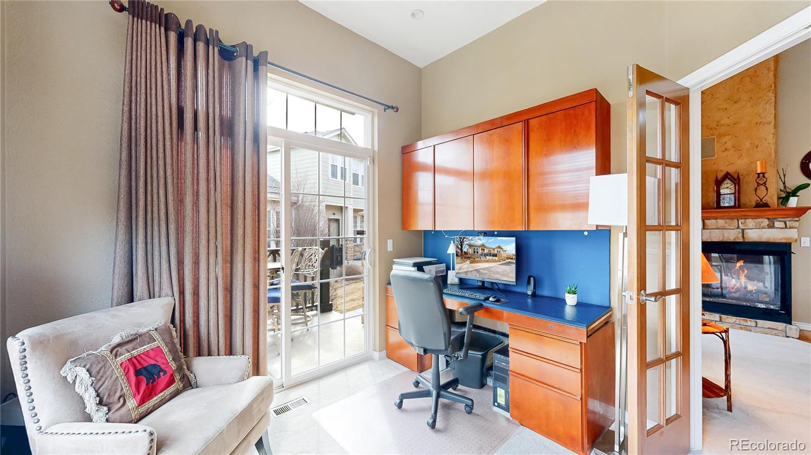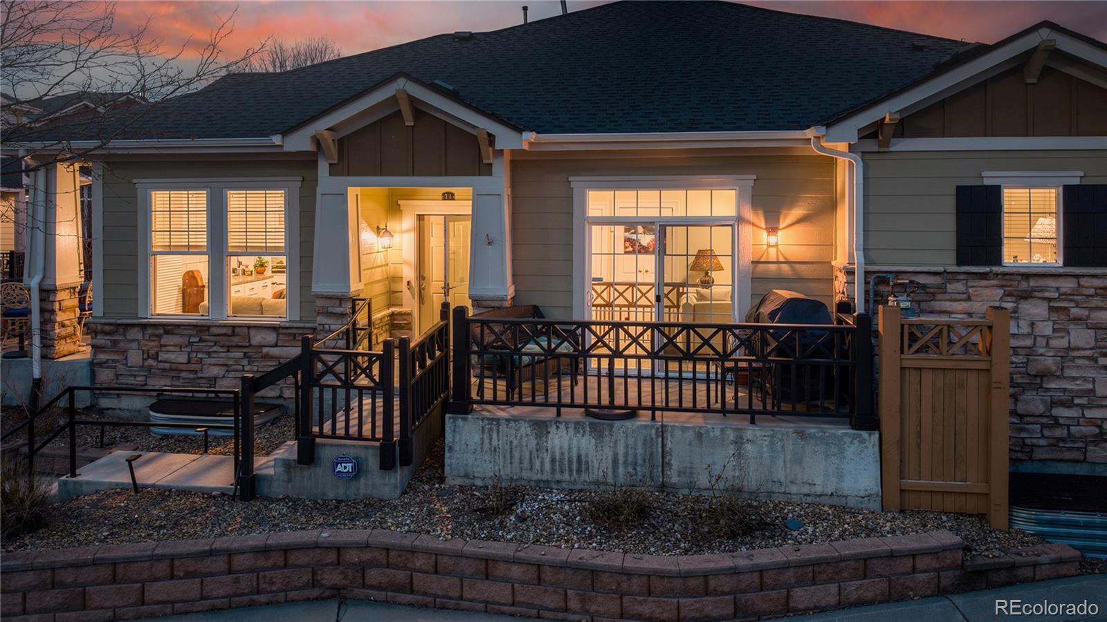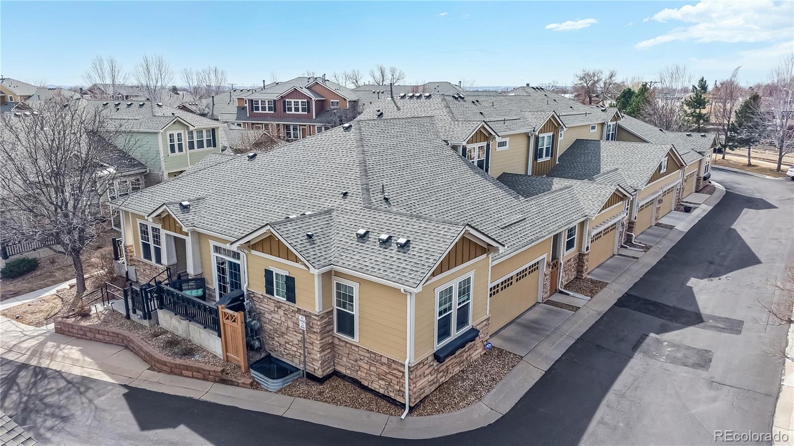 Impeccably maintained townhome nestled in the highly desirable Broadlands community of Broomfield. Thoughtfully designed for main-level living, this residence offers the perfect blend of comfort, style, and charm. Inside, an open and airy floorplan welcomes you with soaring 10-foot ceilings and gleaming hardwood floors throughout the main level. The beautifully appointed kitchen is both stylish and functional, featuring granite tile countertops, a center island, walk-in pantry, and Stainless Steel appliances including a gas range. It flows seamlessly into both the formal dining room accessing a relaxing patio as well as the light-filled family room, where a cozy gas fireplace with stone surround creates a warm and inviting focal point. A main-level study with custom built-ins and French doors provides a peaceful workspace or retreat and opens to a second charming patio—perfect for morning coffee or relaxing evenings outdoors. Two bedrooms are conveniently located on the main level, including a spacious primary suite complete with a spa-inspired five-piece bath and a spacious walk-in closet. A secondary bedroom and adjacent full bath offer comfort and privacy. The main-level laundry room adds everyday ease and practicality. The unfinished basement offers outstanding potential, featuring 9-foot ceilings, an electrical subpanel, a bathroom rough-in, and a separate storage area already completed—providing a fantastic opportunity to customize additional living space to fit your needs while maintaining ample storage. An attached two-car garage completes this exceptional home. Residents of this vibrant community enjoy resort-style amenities including a pool and clubhouse, parks and playgrounds, scenic walking and biking trails, and an acclaimed golf course—all just minutes from upscale shopping, dining, and daily conveniences. Elegant, move-in ready, and filled with opportunity—this is Colorado living at its finest. Don’t miss your chance to make it yours.