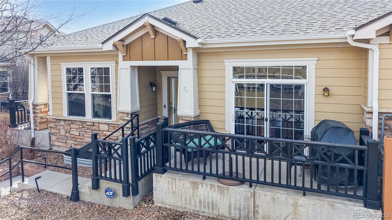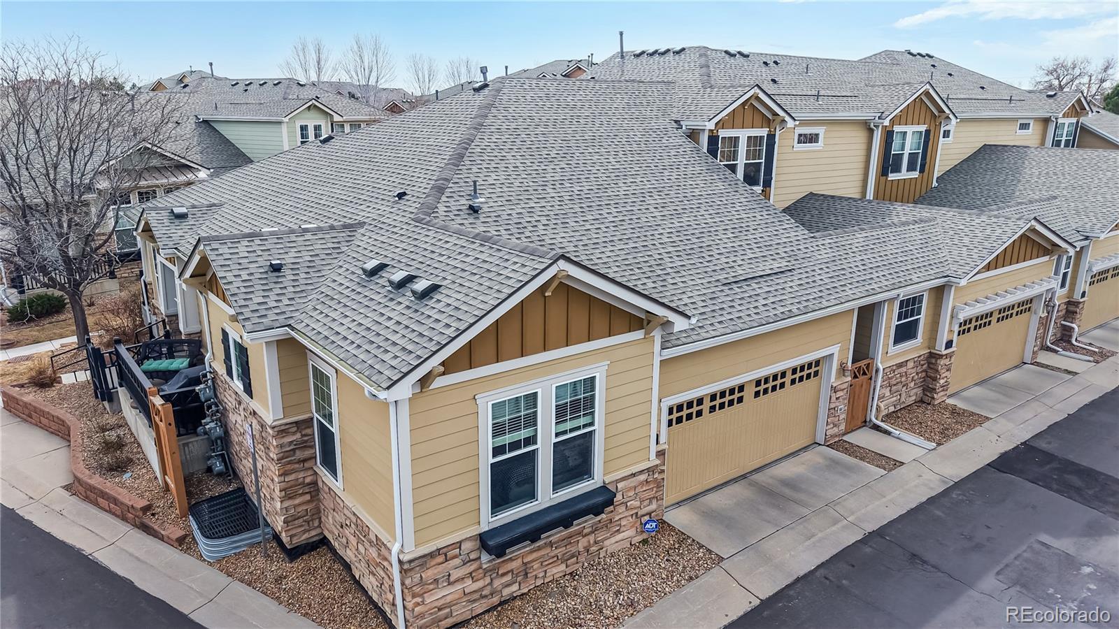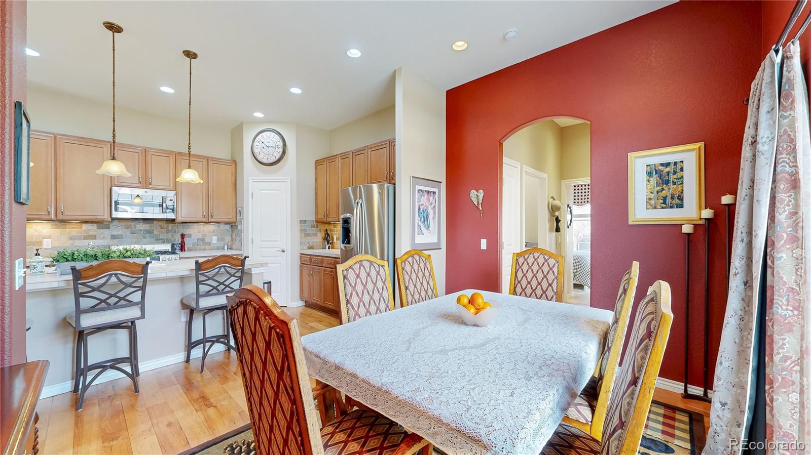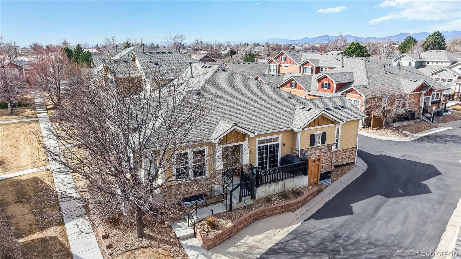 Impeccably maintained townhome nestled in the highly desirable Broadlands community of Broomfield. Thoughtfully designed for main-level living, this residence offers the perfect blend of comfort, style, and charm. Inside, an open and airy floorplan welcomes you with soaring 10-foot ceilings and gleaming hardwood floors throughout the main level. The beautifully appointed kitchen is both stylish and functional, featuring granite tile countertops, a center island, walk-in pantry, and Stainless Steel appliances including a gas range. It flows seamlessly into both the formal dining room accessing a relaxing patio as well as the light-filled family room, where a cozy gas fireplace with stone surround creates a warm and inviting focal point. A main-level study with custom built-ins and French doors provides a peaceful workspace or retreat and opens to a second charming patio—perfect for morning coffee or relaxing evenings outdoors. Two bedrooms are conveniently located on the main level, including a spacious primary suite complete with a spa-inspired five-piece bath and a spacious walk-in closet. A secondary bedroom and adjacent full bath offer comfort and privacy. The main-level laundry room adds everyday ease and practicality. The unfinished basement offers outstanding potential, featuring 9-foot ceilings, an electrical subpanel, a bathroom rough-in, and a separate storage area already completed—providing a fantastic opportunity to customize additional living space to fit your needs while maintaining ample storage. An attached two-car garage completes this exceptional home. Residents of this vibrant community enjoy resort-style amenities including a pool and clubhouse, parks and playgrounds, scenic walking and biking trails, and an acclaimed golf course—all just minutes from upscale shopping, dining, and daily conveniences. Elegant, move-in ready, and filled with opportunity—this is Colorado living at its finest. Don’t miss your chance to make it yours.