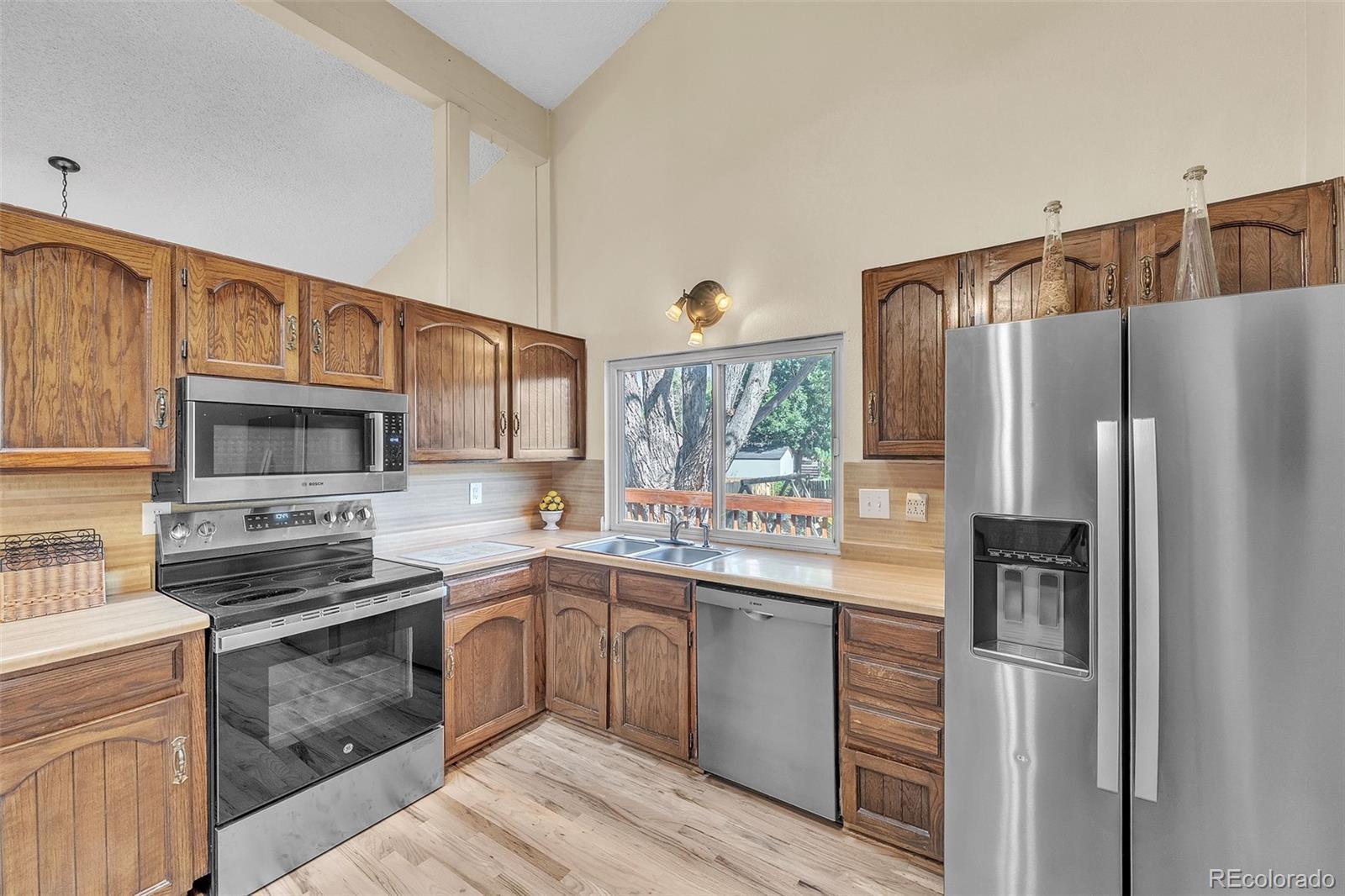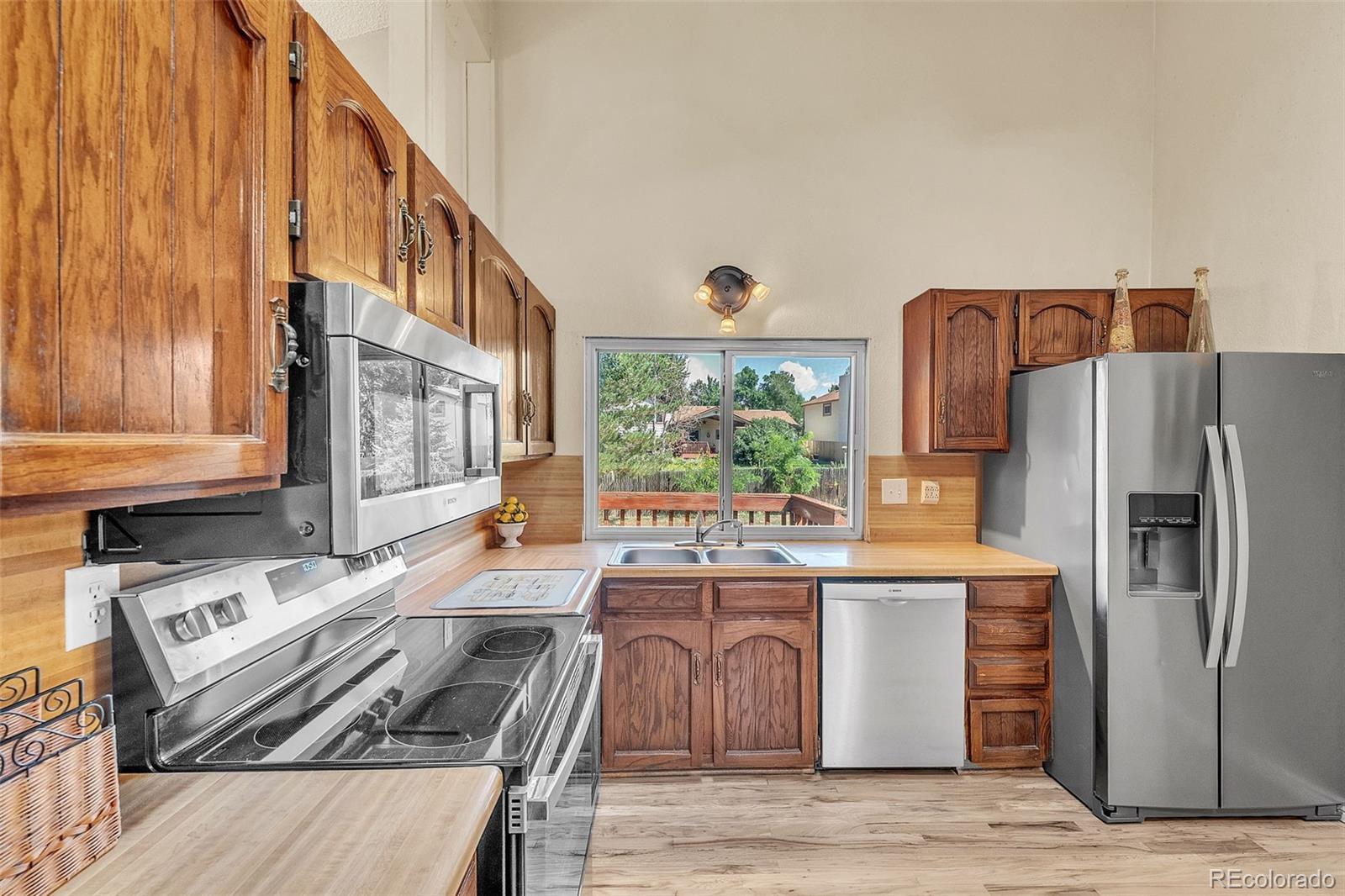 Welcome to this beautiful home, featuring many recent updates, in a prime Colorado Springs cul-de-sac location just minutes from Otero Park! Featuring a bright open floorplan with vaulted ceilings in the great room, kitchen, and dining area, this home blends comfort and style. The large eat-in kitchen offers abundant space for casual meals, new high end stainless steel appliances, and easy access to the formal dining room and great room area. From the dining room, a walkout to the expansive, shaded deck creates a perfect flow for entertaining or relaxing. All bathrooms have been recently renovated with custom tilework, modern vanities, and upgraded counters. The popular Jack & Jill bath layout provides functionality and privacy between bedrooms. Gorgeous hardwood floors have just been refinished, complemented by brand-new carpet and fresh paint in select areas. The main-level living room features a cozy wood-burning stove, while the lower-level family room boasts a charming brick-surround fireplace—perfect for Colorado winters. Skylights, custom blinds, and upgraded doors and trim add a touch of sophistication throughout. Enjoy the outdoors with a private backyard and new front landscaping. The oversized 2-car garage offers built-in shelving and a workbench, plus recently replaced garage doors and openers. Additional highlights include a storage shed and a location close to parks, schools, and conveniences. Move-in ready with stylish updates and an unbeatable setting, this home is ready to welcome its next owners!