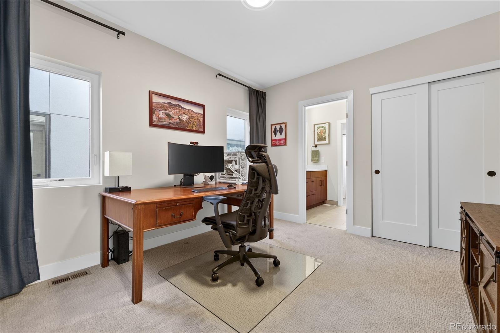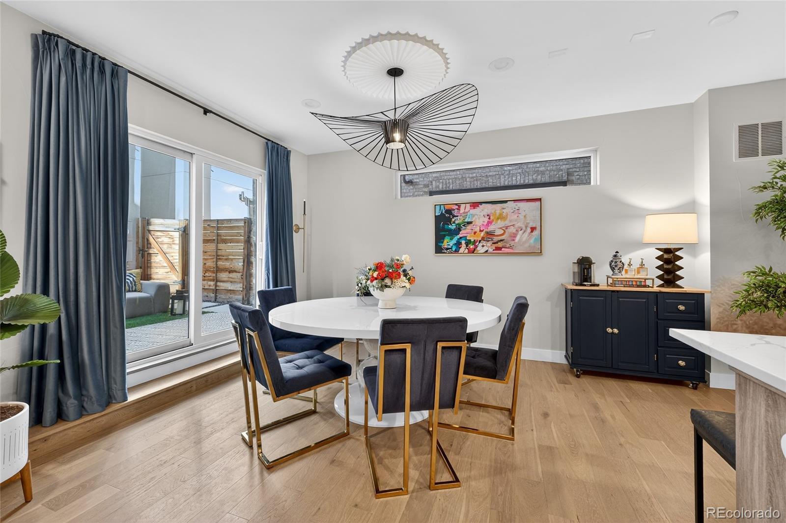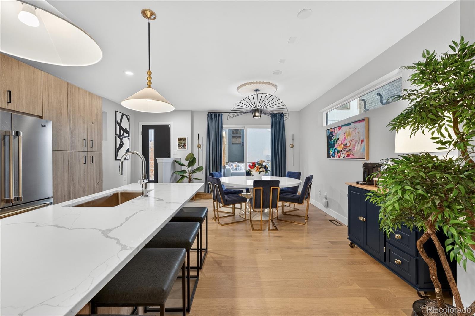 Like-new paired home offering stylish 3-level living in the heart of Sloan’s Lake. Just 3 blocks from Sloan’s Lake, 1 block from Hallack Park, and within walking distance to Broncos Stadium, this incredible location provides easy access to downtown Denver, the mountains, and one of the city’s most vibrant neighborhoods. Inside, enjoy a highly functional layout with high-quality finishes and craftsmanship throughout. The open kitchen and dining area features sleek cabinetry, high-end appliances, added pantry space, and pull-out shelving, with direct access to the private backyard—perfect for outdoor dining and entertaining. The dining area can also flex as a living space to suit your lifestyle. The lower level offers a spacious family room with a built-in wet bar and nearby full bath. With a lock-off option, this level is ideal for a roommate setup, guest suite, or Airbnb opportunity. The luxurious primary suite occupies its own private level, complete with a balcony for unwinding, a beautiful en-suite bath with dual vanities, and a large walk-in closet with a custom organizer. Two additional bedrooms on the third level share a Jack-and-Jill full bath. Additional features include custom window coverings, upgraded fixtures throughout, private yard space, and a 1-car detached garage with extra-high ceilings for additional storage. A truly move-in-ready gem in an unbeatable Sloan’s Lake location with welcoming neighbors and exceptional walkability. Welcome home!