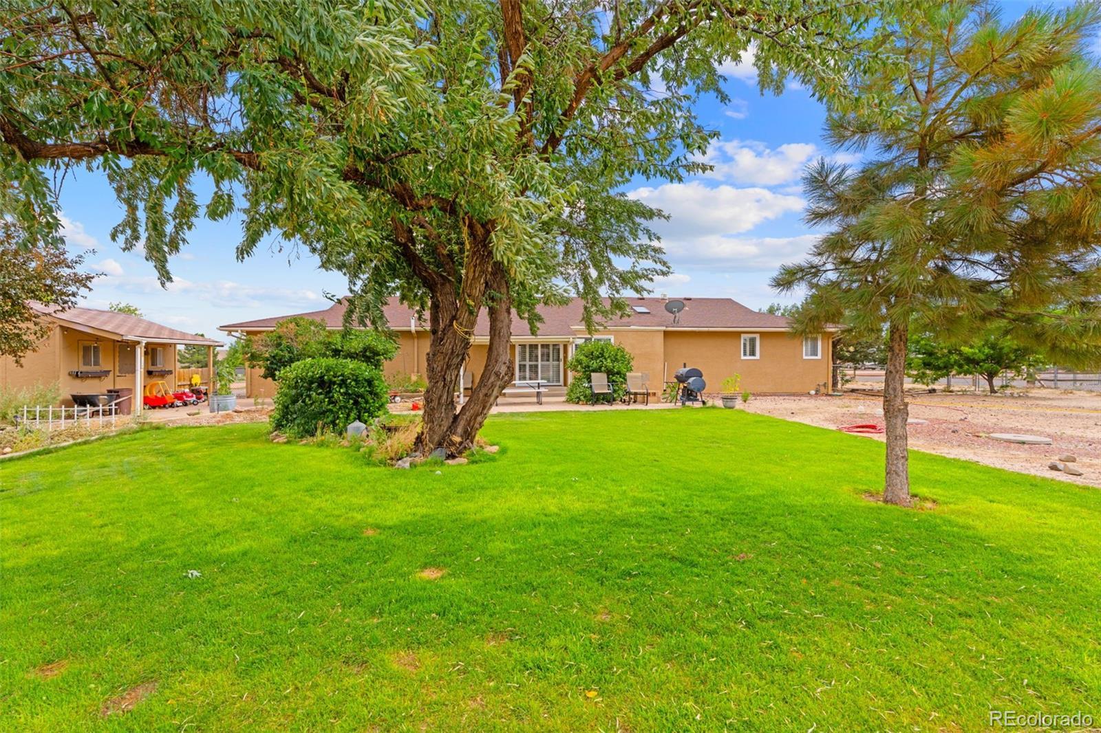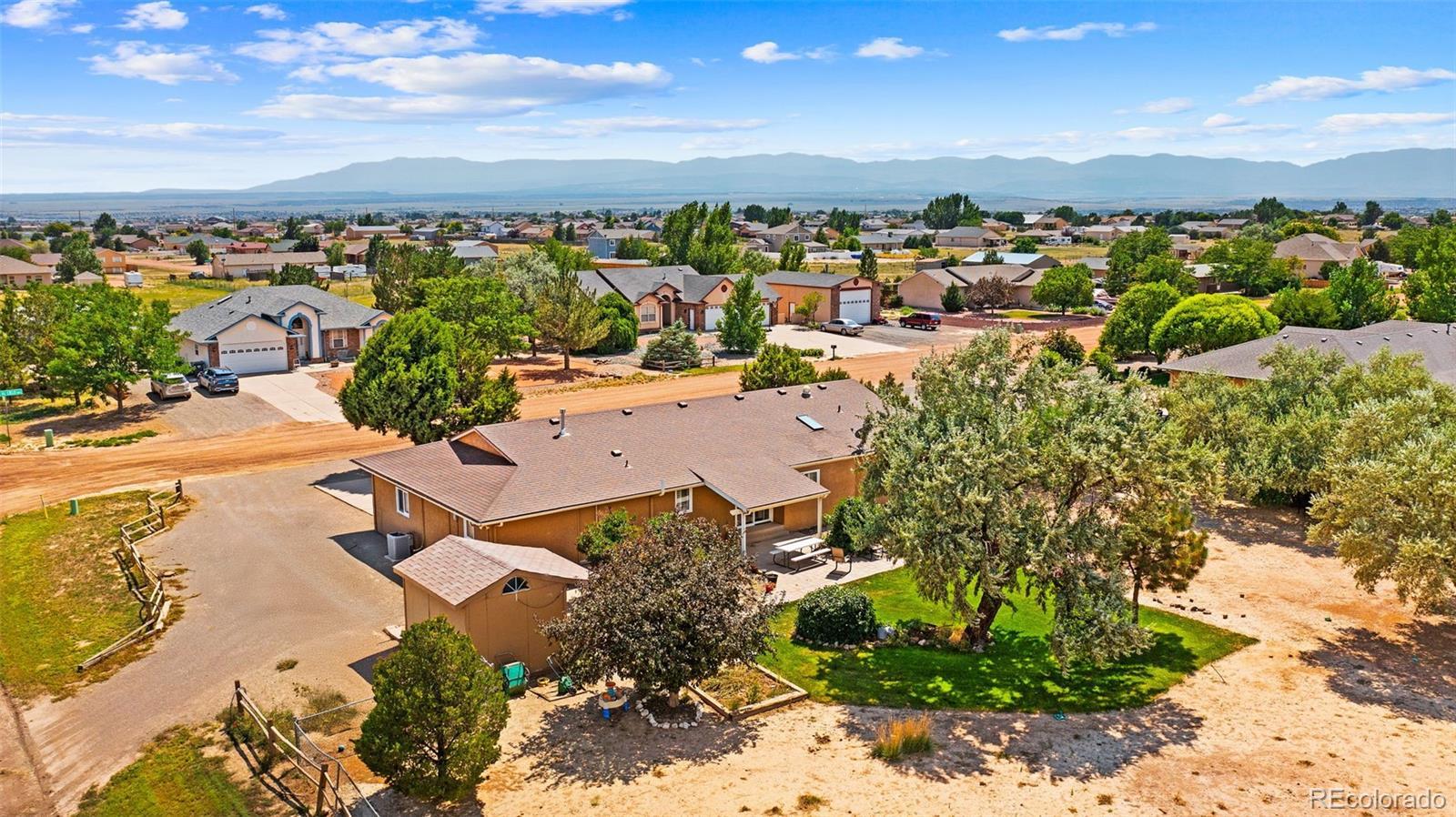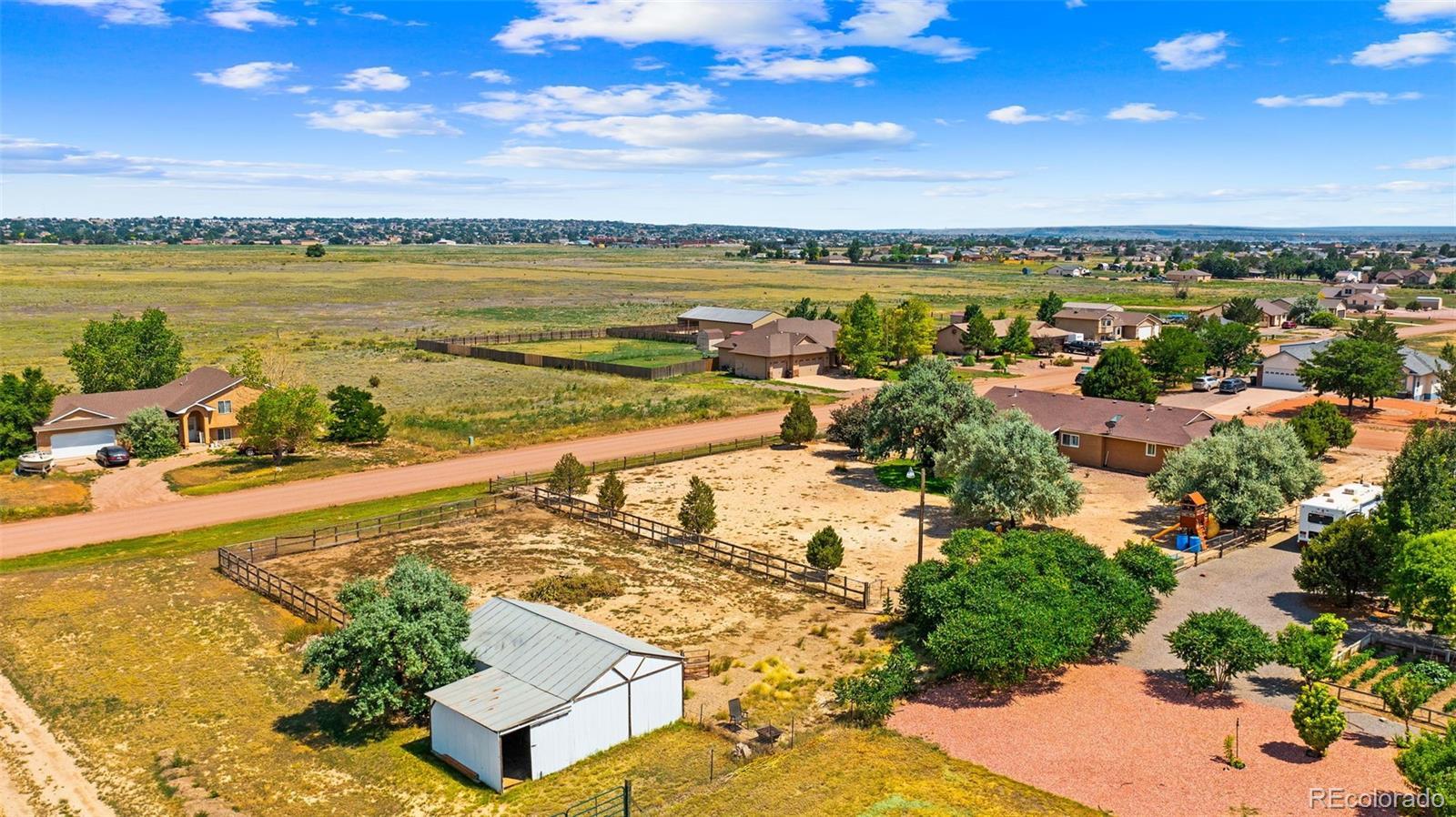 BUYERS YOUR FIRST MORTGAGE PAYMENT WON'T BE DUE UNTIL JANUARAY 2026!! Country Living at Its Best in Pueblo West! This beautifully maintained 3 bed, 3 bath, 2-car garage home sits on over an acre of peaceful land and includes a barn with attached chicken coop, raised garden beds, a built-in playset, and storage shed—perfect for those dreaming of space and freedom. The bright, open kitchen features newer white cabinets, a granite island with breakfast bar, gas range/oven, stainless appliances, and included washer & dryer. The spacious primary suite offers double vanities, a walk-in shower, and a walk-in closet, while the second bath showcases beautiful custom tile. Enjoy central A/C in summer, a cozy fireplace in winter, and over 4,000 total sq ft, including a massive unfinished basement with a dedicated office area and room to grow. The front yard is manicured, and the backyard is a gardener’s paradise. Perfect for homesteading or peaceful living just 1 hour from Colorado Springs and 50 mins to Ft Carson. Don’t miss this rare Pueblo West acreage opportunity—schedule your showing today!