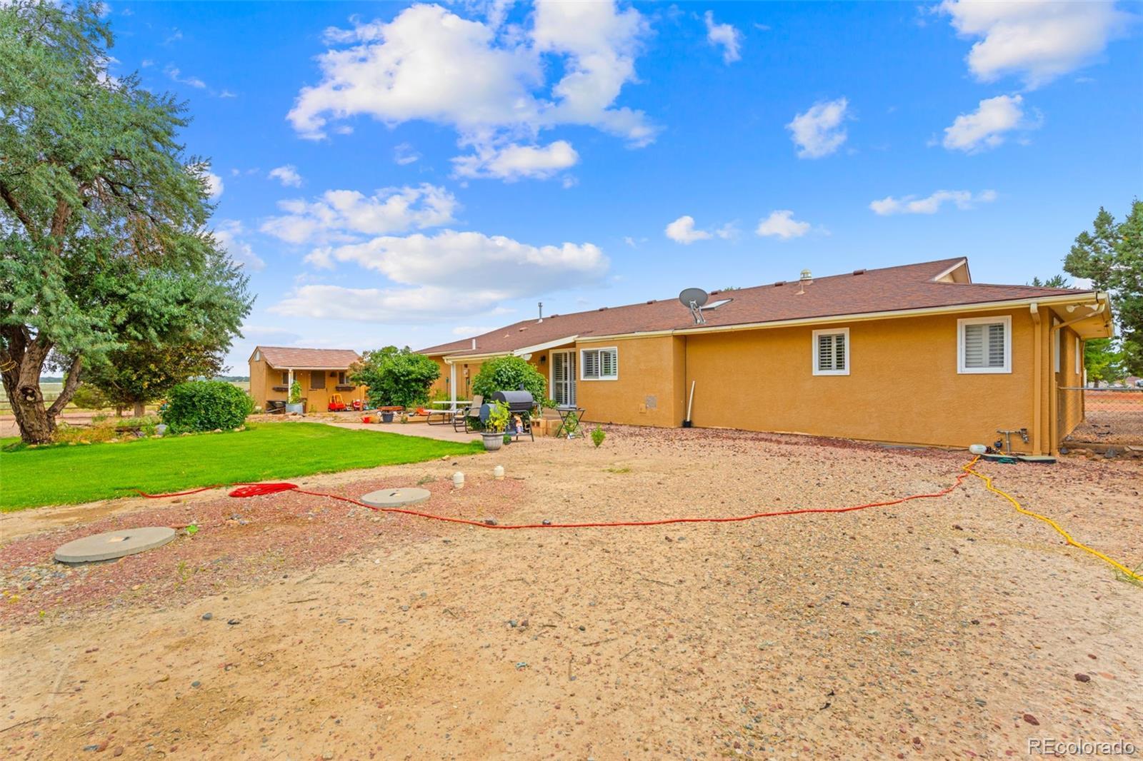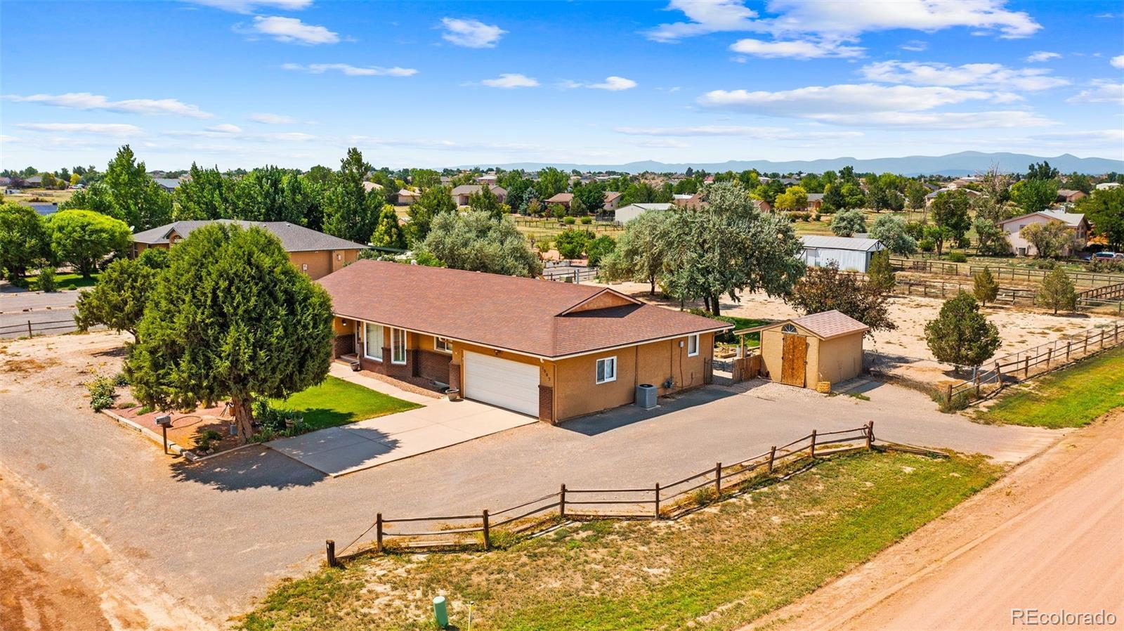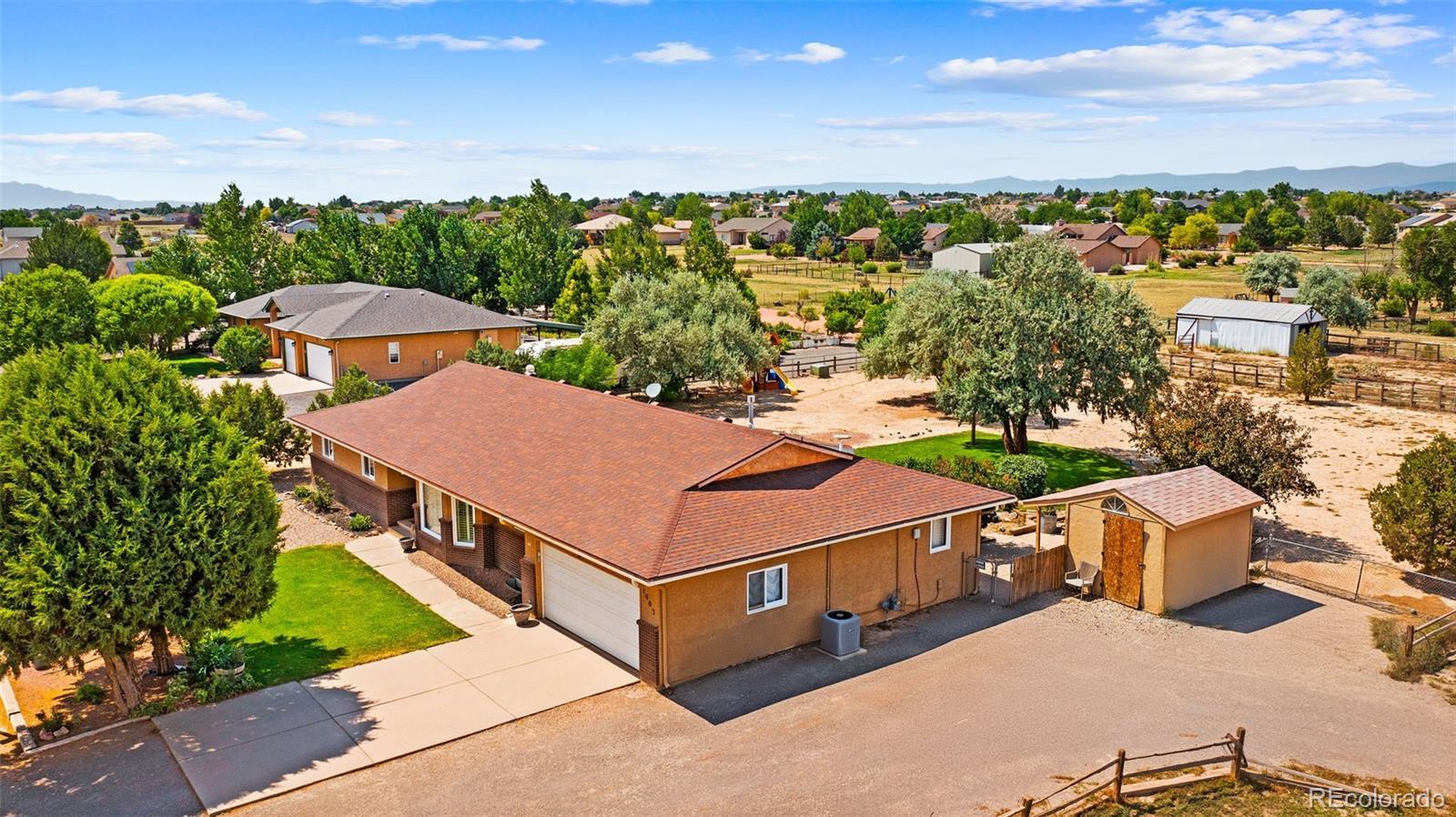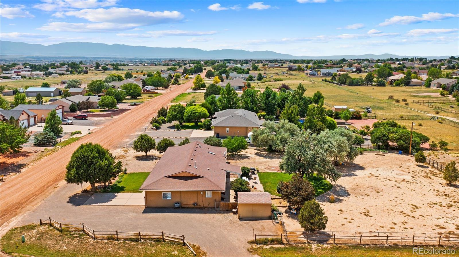BUYERS YOUR FIRST MORTGAGE PAYMENT WON'T BE DUE UNTIL JANUARAY 2026!! Country Living at Its Best in Pueblo West! This beautifully maintained 3 bed, 3 bath, 2-car garage home sits on over an acre of peaceful land and includes a barn with attached chicken coop, raised garden beds, a built-in playset, and storage shed—perfect for those dreaming of space and freedom. The bright, open kitchen features newer white cabinets, a granite island with breakfast bar, gas range/oven, stainless appliances, and included washer & dryer. The spacious primary suite offers double vanities, a walk-in shower, and a walk-in closet, while the second bath showcases beautiful custom tile. Enjoy central A/C in summer, a cozy fireplace in winter, and over 4,000 total sq ft, including a massive unfinished basement with a dedicated office area and room to grow. The front yard is manicured, and the backyard is a gardener’s paradise. Perfect for homesteading or peaceful living just 1 hour from Colorado Springs and 50 mins to Ft Carson. Don’t miss this rare Pueblo West acreage opportunity—schedule your showing today!
