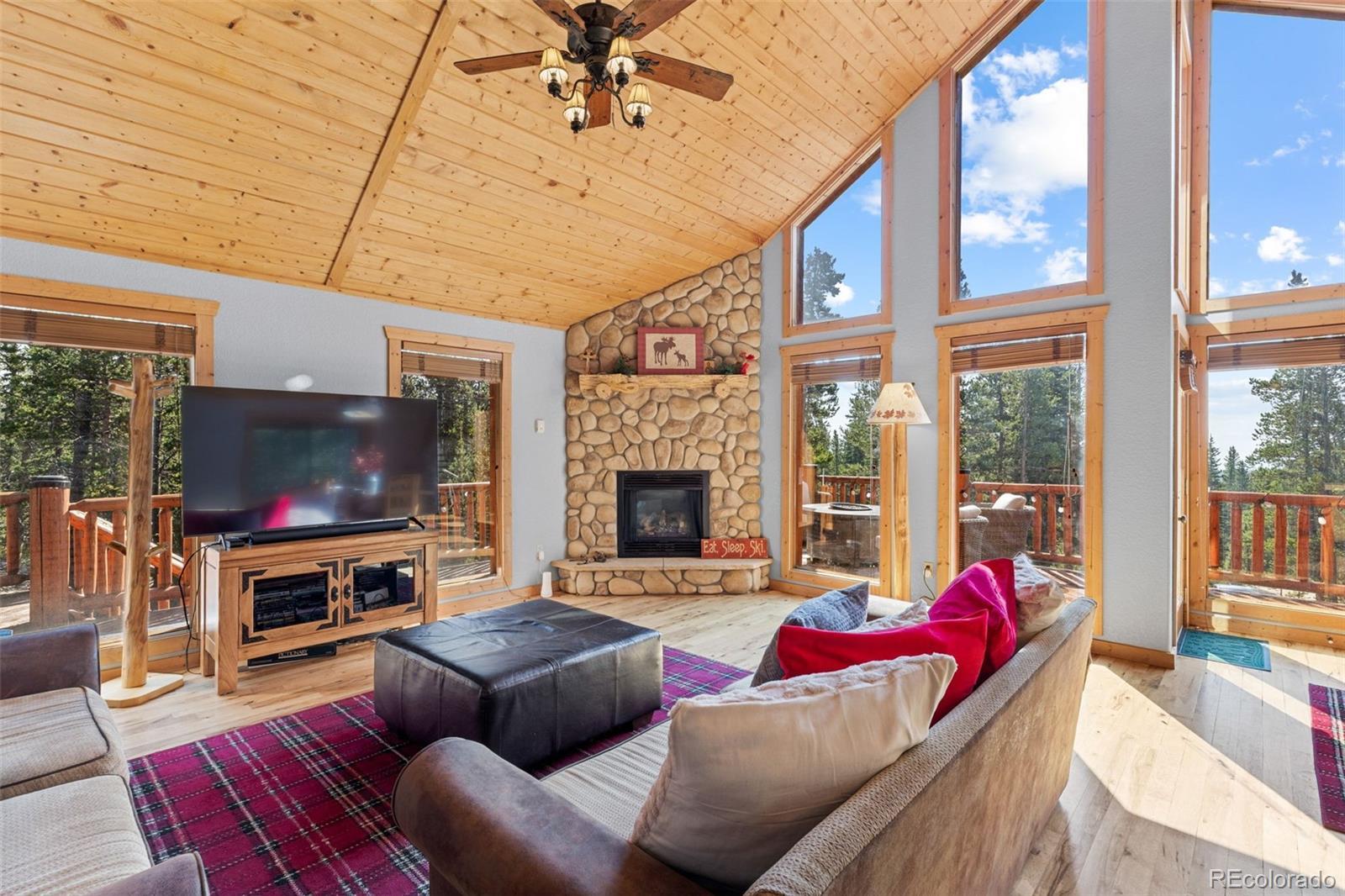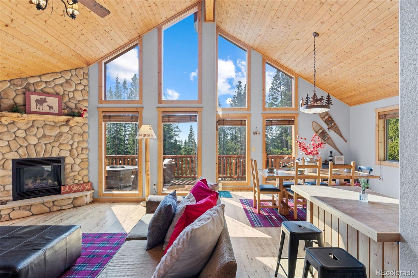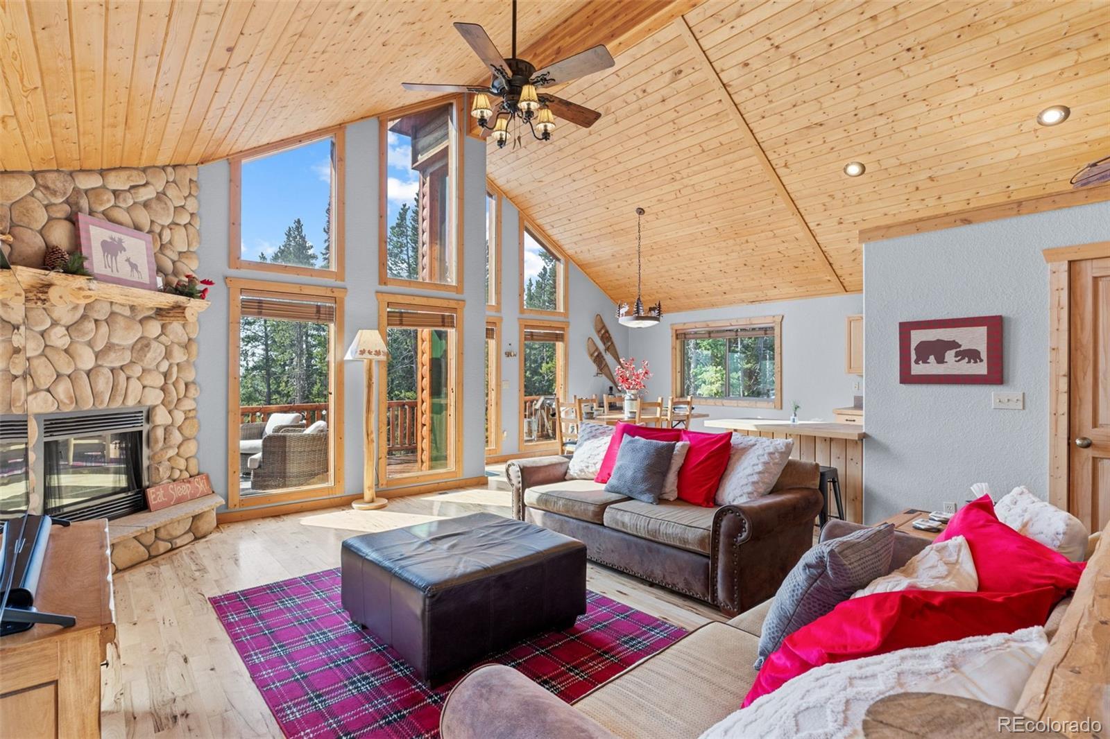 Discover your Colorado mountain retreat! This turnkey, meticulously cared-for log-sided home on 1.04 acres offers the perfect balance of comfort, privacy, and convenience—ideal as a full-time residence, weekend getaway, or investment property. With rental projections of $42,000+ annually, it’s fully furnished and move-in ready today. Enjoy an open floor plan with soaring tongue-and-groove ceilings, a wall of windows, and a stunning floor-to-ceiling stone fireplace. The kitchen features Hickory cabinets, tile counters, and stainless-steel appliances. The spacious primary suite includes dual vanities and a walk-in closet, plus a main-level guest room for convenience. The finished lower level offers a third bedroom, ¾ bath, and a flexible living area perfect for guests, games, or a home gym. Recent upgrades include a new furnace, radon mitigation, water purification system, Starlink internet, Nest thermostat, and a freshly resealed deck. Located just minutes from Breckenridge, Fairplay, and Alma, this modern mountain home is a rare opportunity—turnkey, fully updated, and ready for your next adventure or income-producing investment.