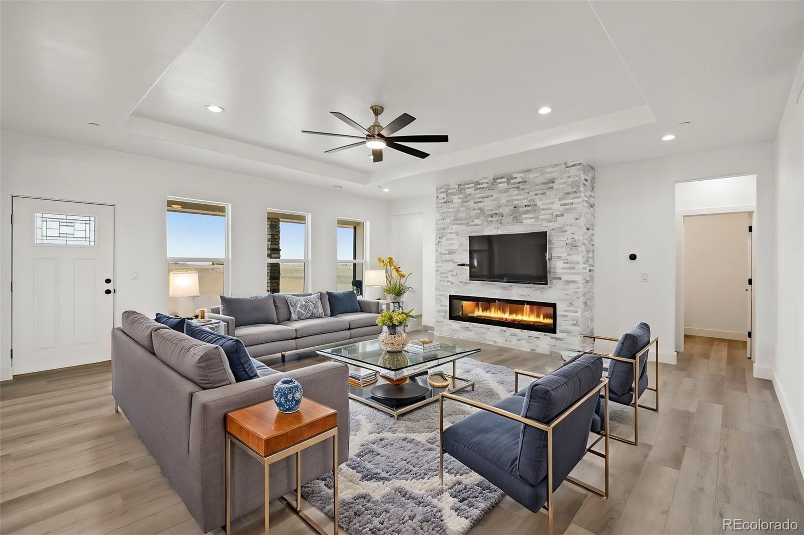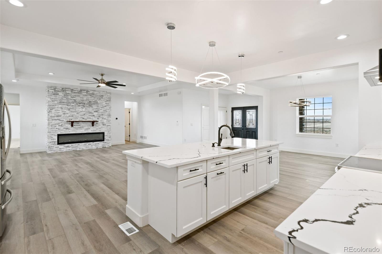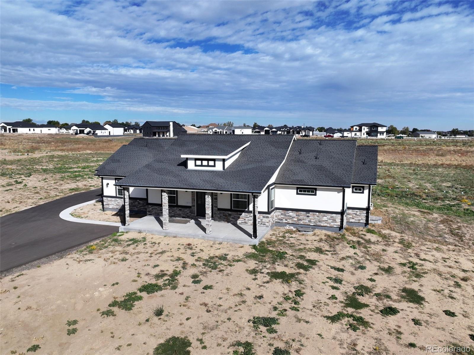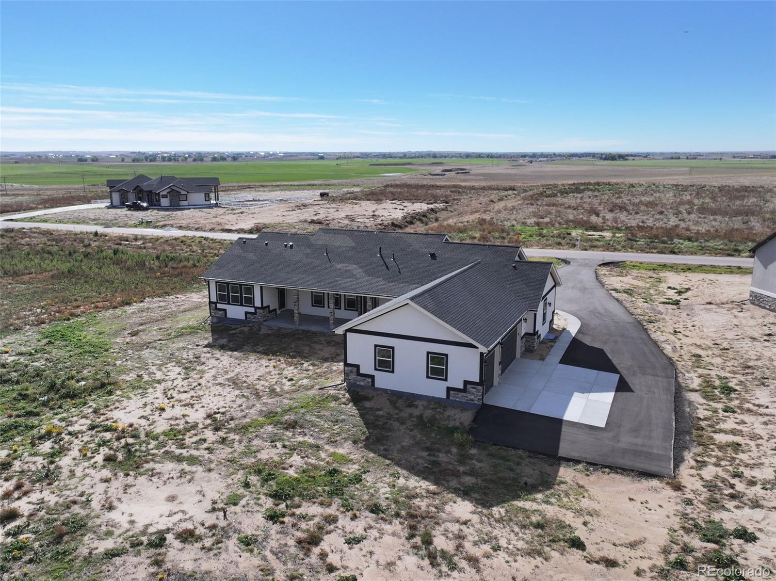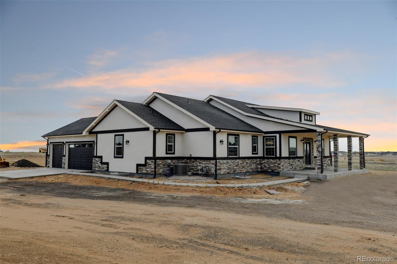 Price improvement! $10K concessions! Brand new home on 1.7 acres! This beautiful brand new ranch home is waiting for you! The new Country Club Ranchettes subdivision is a high end acreage community located just a few miles east of Brighton. This home features an open floor plan, with spacious Great room, kitchen, and dining area. The gourmet kitchen features quartz countertops & backsplash, and a beautiful oversized island. Stainless appliances, vent hood, double sinks and a huge walk-in pantry. The adjoining Great room offers a cozy electric fireplace featuring a full stone fireplace surround. The primary suite offers an exterior door to the back covered patio, and is connected to a large primary bathroom, featuring an oversized vanity, oversized shower, and a finished walk-in closet. The bedrooms are split to enhance privacy, with the primary bedroom separate from the two secondary bedrooms on opposite sides of the home. The office is located at the front of the house and doubles as a 4th bedroom. Country Club Ranchettes does not have an HOA, but does have reasonable covenants and design guidelines to enhance the beauty of the community. Bring your animals! 2 horses, 2 goats and chickens are allowed. RV parking and commercial work truck parking is allowed. Outbuildings are allowed, refer to the covenants for allowable size etc. Water is provided by Great Rock Water tap. Natural gas supplier is Xcel (no propane), and wired internet is available with Comcast. Need to sell your house first? Seller may be interested in doing a trade! Seller is offering $10,000 concessions with an approved offer.