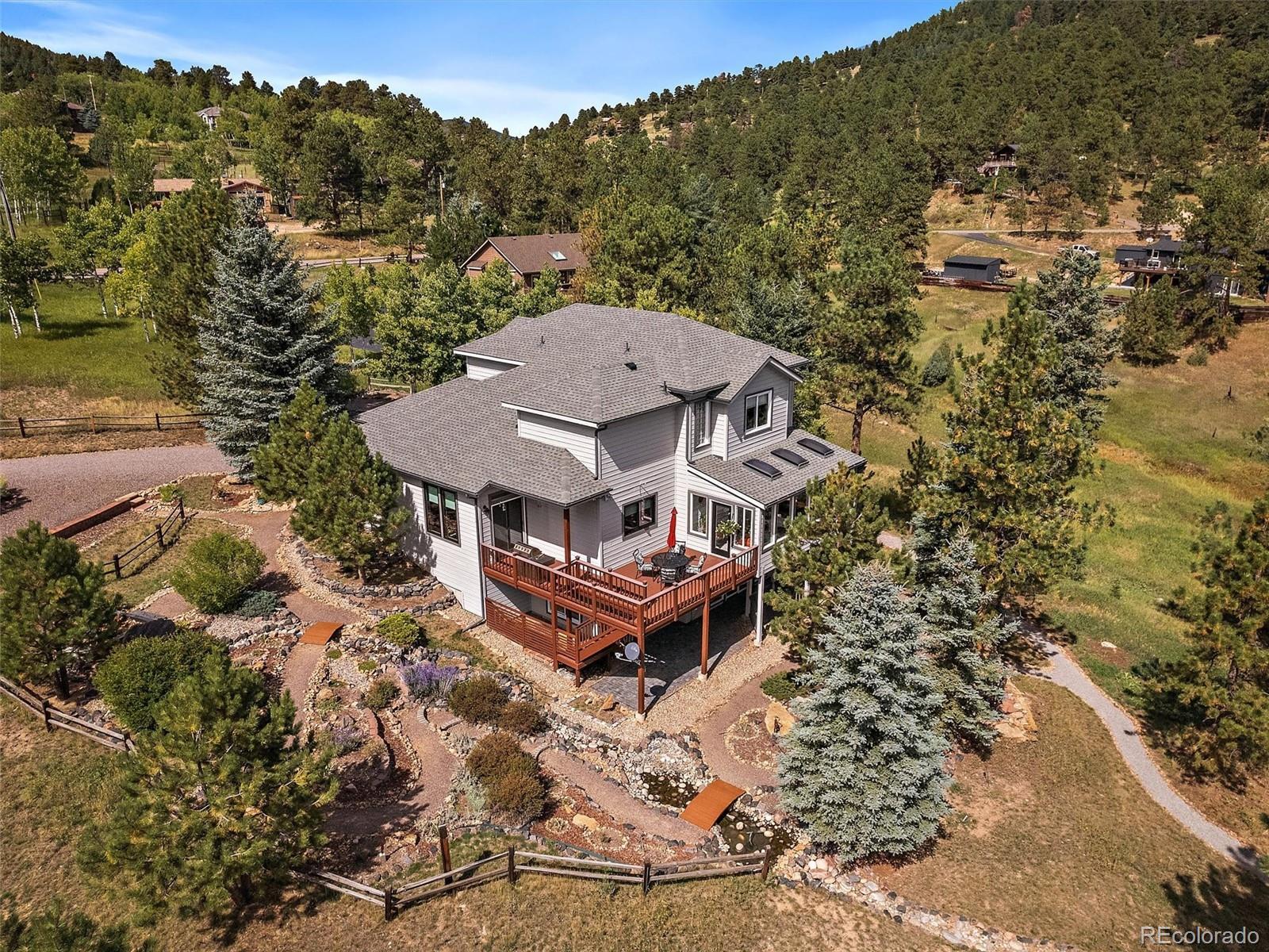The home has been transformed! If you've toured this home before, please be sure to tour again. If you haven't toured this home, don't miss this opportunity! New interior paint in the kitchen, family room, main floor half bath, hall, laundry room and upper bedrooms, new quartz kitchen counters and cabinet doors, new decking, new flooring, tub and tile in the upper level hallway bathroom, plus newly refinished wood floors throughout the main level. The front door with sidelights will welcome you into a sun-filled great room featuring cathedral ceilings and new windows. The open-concept layout flows seamlessly from the entry to the great room and dining area to a spacious, sunny deck, perfect for entertaining. The updated kitchen boasts granite counters, custom cabinetry and stainless-steel appliances. For easy entertaining, the kitchen is open to a cozy family room with hardwood floors, a gas fireplace, and year-round access to a bright sunroom with a wall of windows. A fully updated laundry room offers ample storage, and the washer/dryer are included. The heated, newly painted garage features custom cabinetry, a workbench, and carport access for extra covered parking. Upstairs, enjoy scenic views from the primary suite with a luxurious spa-like bath and large walk-in closet. Two more bedrooms and a full bath complete the upper level. The lower level is ideal for multi-generational living or studio living with a kitchenette, a living area, two closets, and a full bath. The land has been mitigated and thoughtfully landscaped with gardens, walkways and beautiful trees. Location allows access from Buffalo Park Road or from Brook Forest Road. This home provides privacy and a mountain setting but is only minutes from schools, restaurants and shopping. Be sure to review the improvement and special features list. Bonus - RV parking and No HOA.