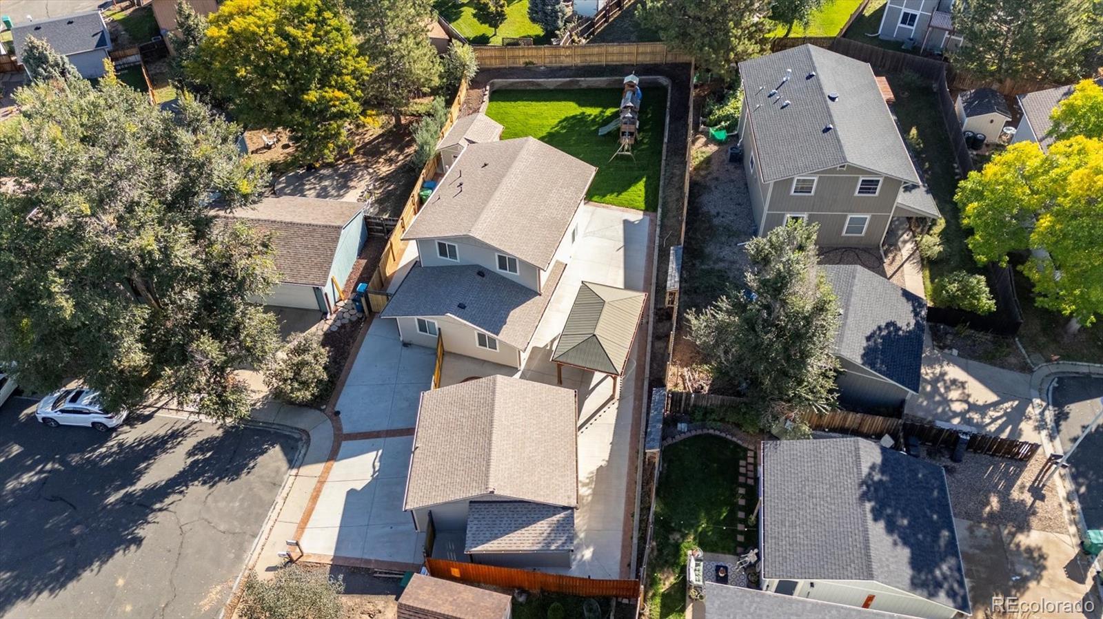 Your private oasis! Welcome to this better-than-new, fully renovated home with NO HOA – a rare find that combines thoughtful upgrades, high-quality craftsmanship, and true pride of ownership. Purchased in 2019, this is not a flip, but a lovingly improved home where every detail has been carefully considered. From the moment you arrive, you’ll notice the private cul-de-sac location, extensive wrap-around covered patio, newly sodded backyard, and a newly installed retaining wall that levels the lot for maximum outdoor enjoyment. The entire property is enclosed by tall, high-quality privacy fencing, complete with a brand-new fire pit, creating a private and welcoming outdoor retreat. Additional exterior updates include epoxy-coated garage floor, a new shed attached to the garage, and a separate garden shed in the backyard. New windows & siding in 2019! A newer play structure and outdoor dining pavilion are also included, ready for year-round fun. Inside, the home has been completely reimagined. The main floor has been opened up to create a more functional flow, featuring a new office with elegant French doors, and a warm, inviting great room that blends the living, dining, and kitchen spaces seamlessly. The kitchen and main floor bath have been fully remodeled, while the family room has been redesigned to better accommodate cozy gatherings. Upstairs, the hall bath has also been updated, and the primary bedroom now includes a newly added ensuite bathroom – a rare and valuable upgrade for this floor plan, giving the home a total of three bathrooms. Newer furnace, central A/C, and tankless water heater will keep your home running efficiently for years to come! This home offers the perfect blend of indoor comfort and outdoor living, with plenty of space to garden, play, and entertain. With so many thoughtful updates and features, this one-of-a-kind home must be seen to be fully appreciated. Don’t miss your chance – see today or visit during our Open House before it’s gone!