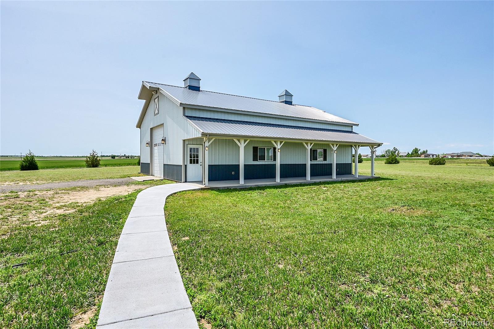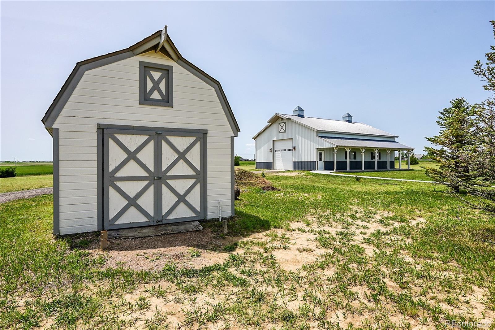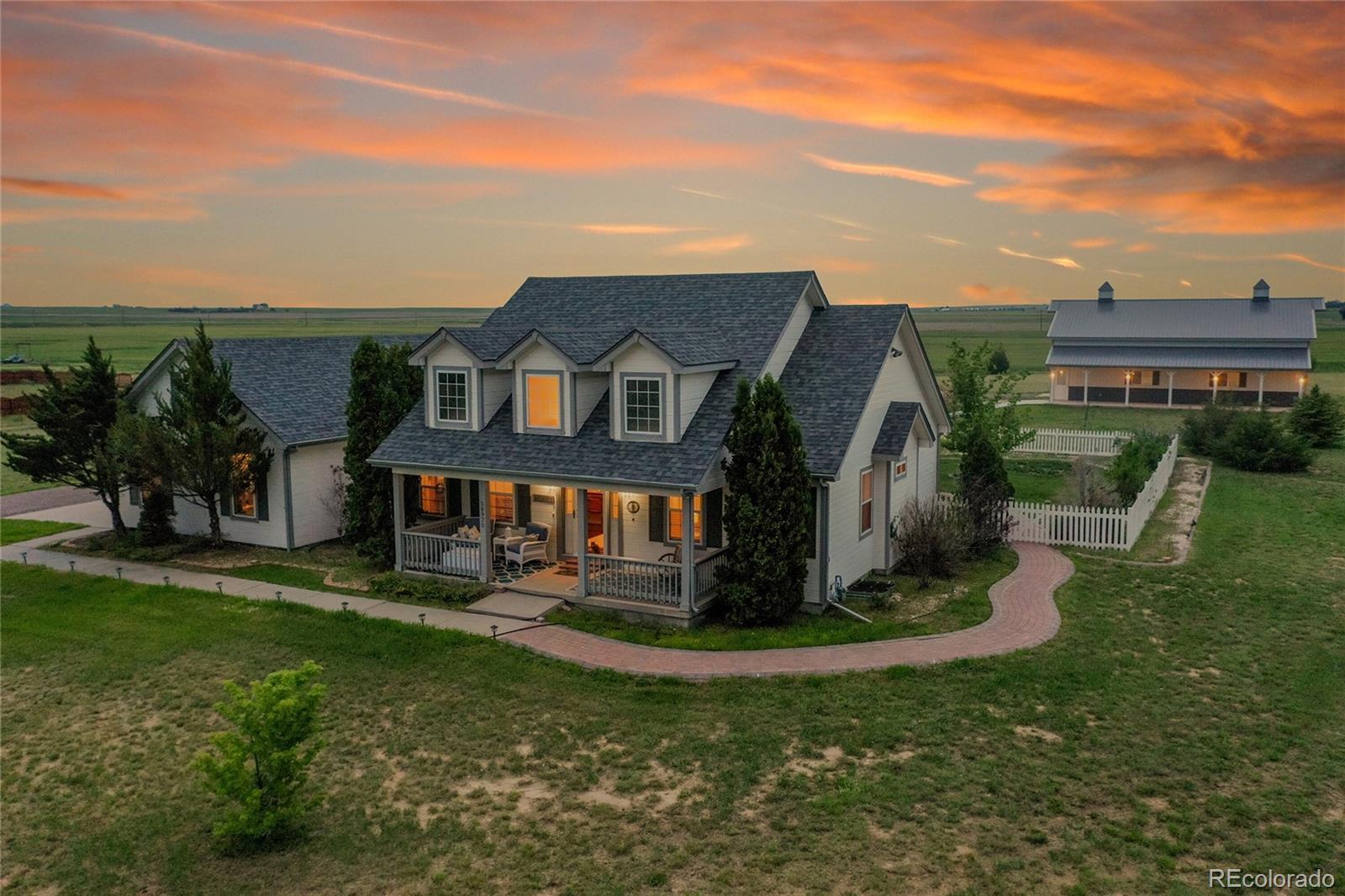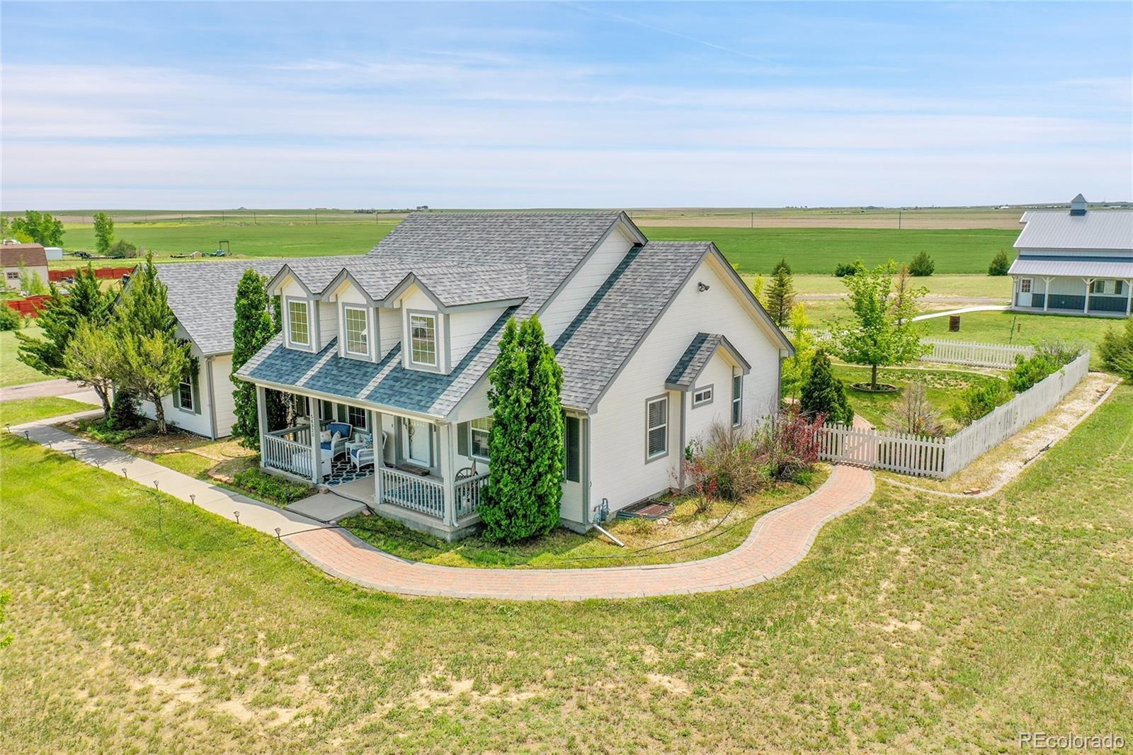 ** New Updates in-process, call for details! ** Enjoy the best of country living and convenience in this ranch-style home on a tree-lined 4.6-acre lot. Complete with a full basement, three-car garage, and a stunning outbuilding, this property offers space, comfort, and a great lifestyle. Step inside to an inviting foyer with lofty ceilings and natural light. The living room features vaulted ceilings, a cozy gas fireplace, and a pass-through to the kitchen. The chef’s kitchen is equipped with stainless steel appliances, a gas range, stacked stone backsplash, soaring ceilings, and a breakfast nook opening to a covered patio and aspen trees. A tray-ceiling dining room provides a great space for holiday dinners and conversations with guests. The primary suite is a peaceful retreat with a walk-in closet and five-piece bath, including dual sinks and a soaking tub. Everything you need is on the main-level with a full unfinished basement below offering a great flex space with four egress windows, tall ceilings, and a half bath. Outdoor living shines here: relax on the covered front porch, unwind under the custom pergola with bistro lighting, enjoy the patio swing surrounded by aspens, or meander the paver walkways framed by poured concrete edging, established trees, and a white picket fence. The property is well-equipped for hobbies, projects, and storage with an attached three-car garage, a 20’x12’ powered garden shed with loft and concrete floor, and a distinguished 48’x44’ outbuilding, including the 48’x8’ covered patio: perfect for hosting large gatherings or a shaded summer BBQ. The outbuilding is equipped with power, concrete, 10,000lb BendPak car lift, 14-foot walls, and pull-through 12’x12’ overhead doors, ideal for RV parking. No HOA. Convenient location with paved road access and an easy commute to Buckley SFB, Anschutz, Southlands, and DIA. Welcome Home! **New carpet, exterior paint, & Class 4 shingles 2025**