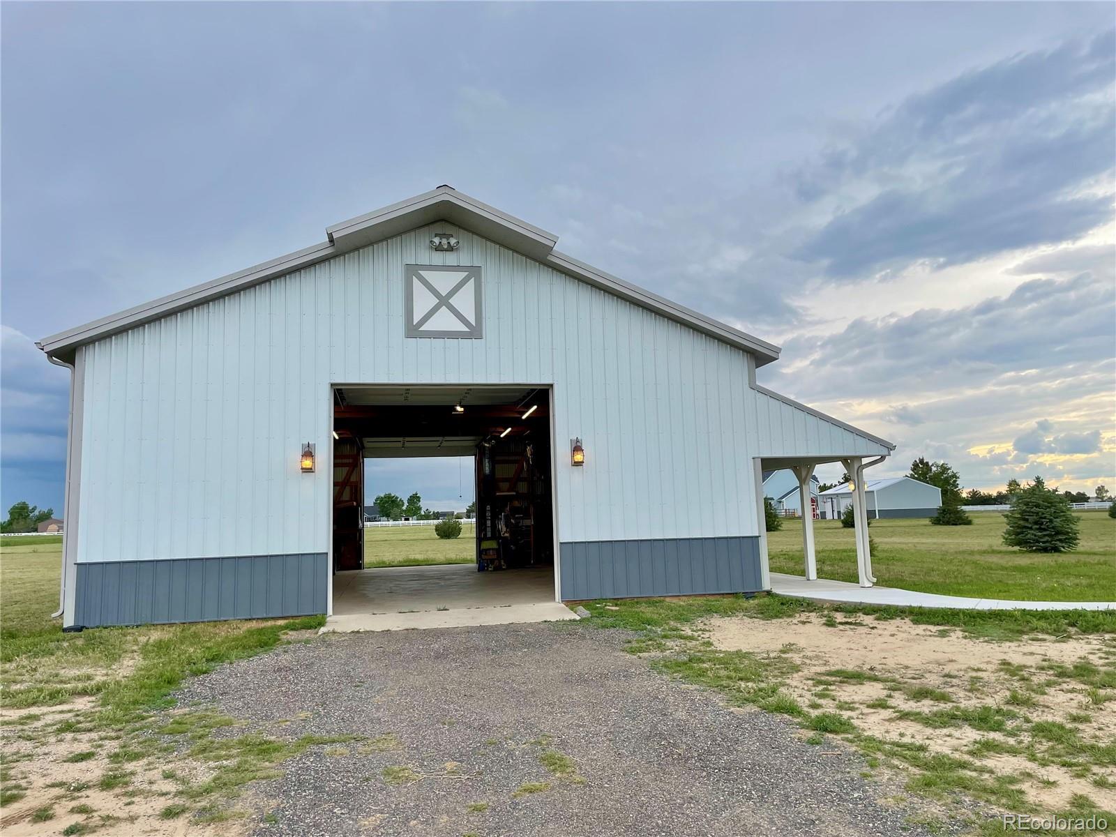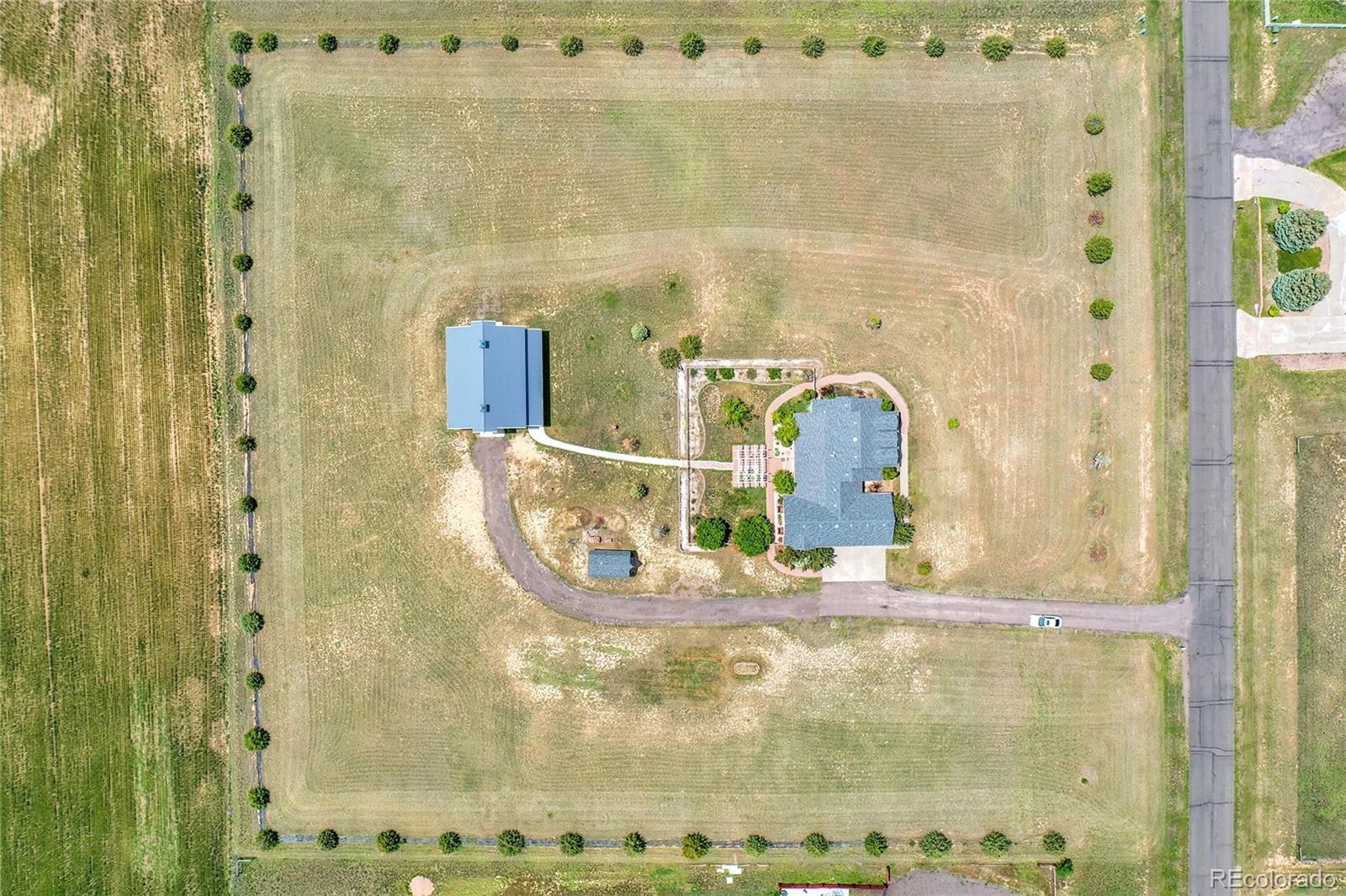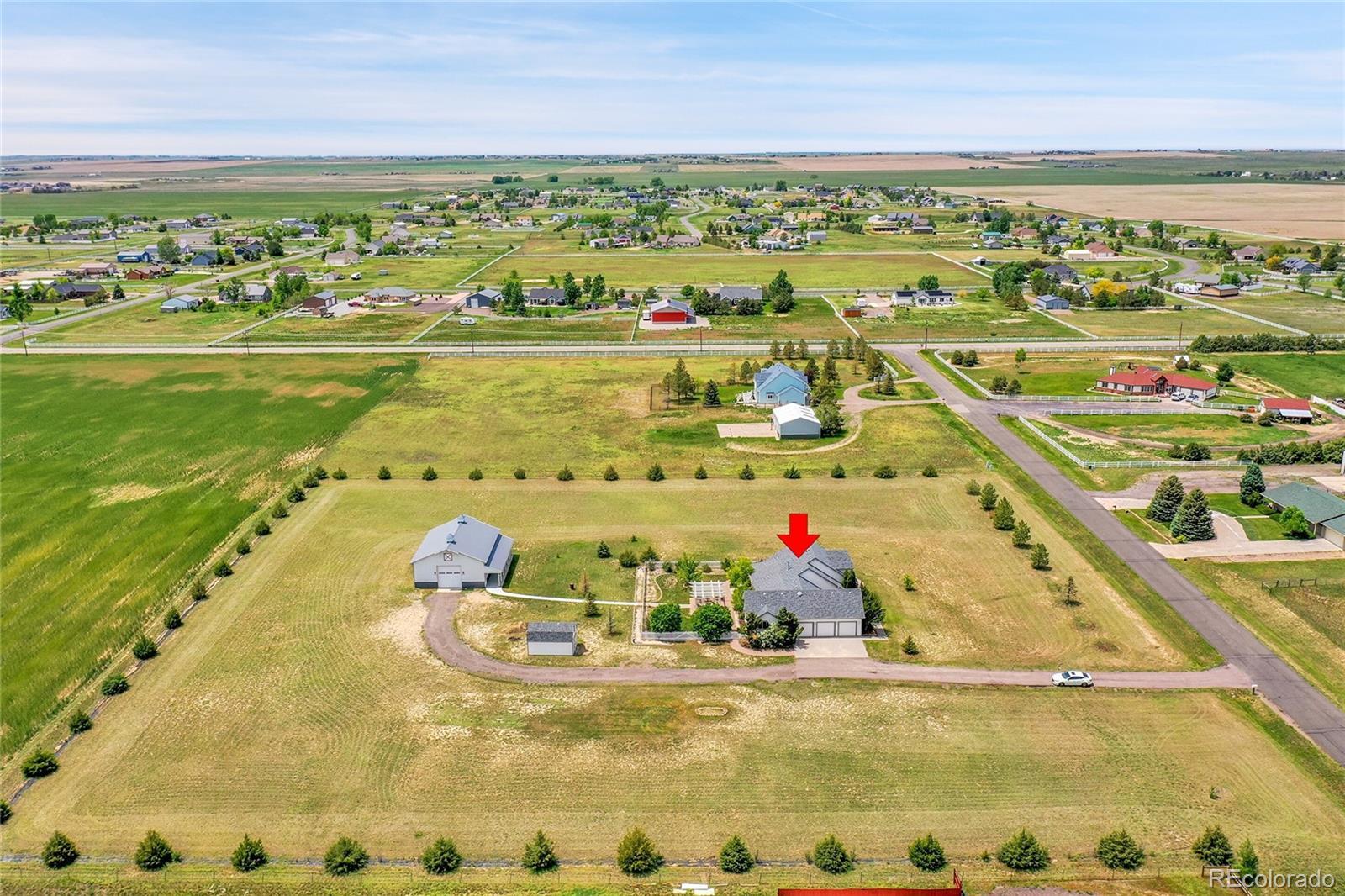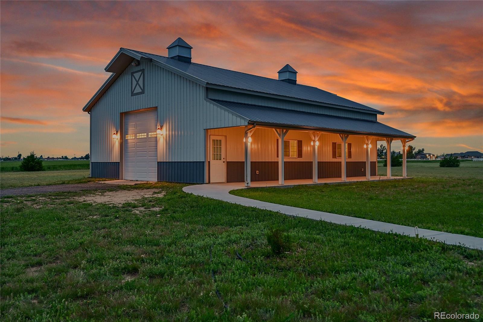 ** New Updates in-process, call for details! ** Enjoy the best of country living and convenience in this ranch-style home on a tree-lined 4.6-acre lot. Complete with a full basement, three-car garage, and a stunning outbuilding, this property offers space, comfort, and a great lifestyle. Step inside to an inviting foyer with lofty ceilings and natural light. The living room features vaulted ceilings, a cozy gas fireplace, and a pass-through to the kitchen. The chef’s kitchen is equipped with stainless steel appliances, a gas range, stacked stone backsplash, soaring ceilings, and a breakfast nook opening to a covered patio and aspen trees. A tray-ceiling dining room provides a great space for holiday dinners and conversations with guests. The primary suite is a peaceful retreat with a walk-in closet and five-piece bath, including dual sinks and a soaking tub. Everything you need is on the main-level with a full unfinished basement below offering a great flex space with four egress windows, tall ceilings, and a half bath. Outdoor living shines here: relax on the covered front porch, unwind under the custom pergola with bistro lighting, enjoy the patio swing surrounded by aspens, or meander the paver walkways framed by poured concrete edging, established trees, and a white picket fence. The property is well-equipped for hobbies, projects, and storage with an attached three-car garage, a 20’x12’ powered garden shed with loft and concrete floor, and a distinguished 48’x44’ outbuilding, including the 48’x8’ covered patio: perfect for hosting large gatherings or a shaded summer BBQ. The outbuilding is equipped with power, concrete, 10,000lb BendPak car lift, 14-foot walls, and pull-through 12’x12’ overhead doors, ideal for RV parking. No HOA. Convenient location with paved road access and an easy commute to Buckley SFB, Anschutz, Southlands, and DIA. Welcome Home! **New carpet, exterior paint, & Class 4 shingles 2025**