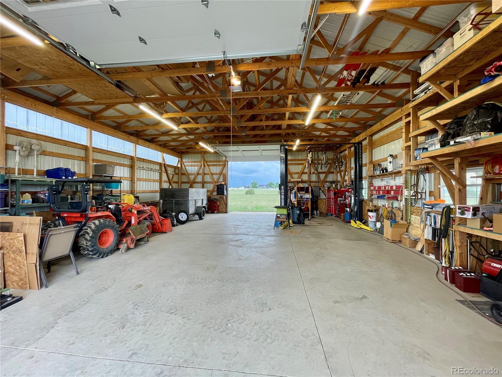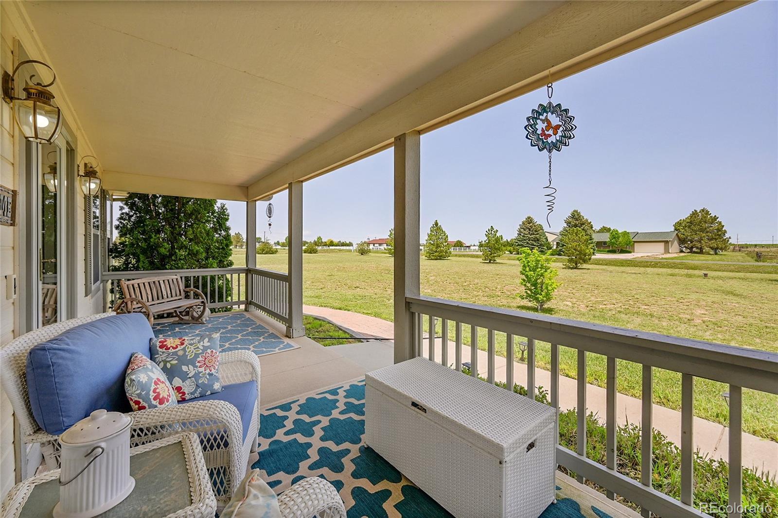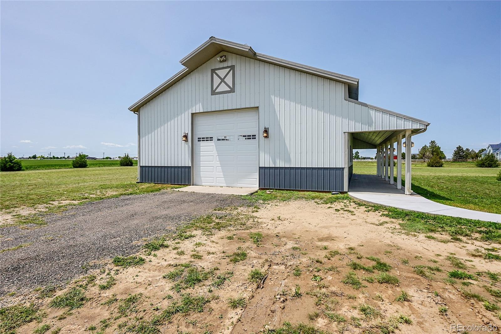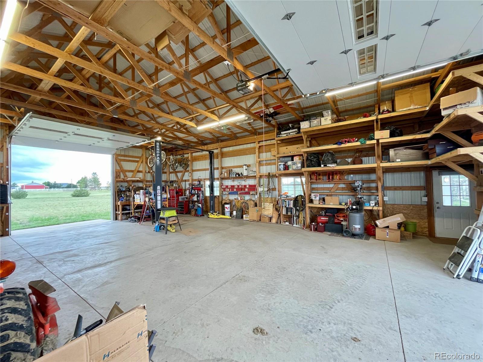 ** New Updates in-process, call for details! ** Enjoy the best of country living and convenience in this ranch-style home on a tree-lined 4.6-acre lot. Complete with a full basement, three-car garage, and a stunning outbuilding, this property offers space, comfort, and a great lifestyle. Step inside to an inviting foyer with lofty ceilings and natural light. The living room features vaulted ceilings, a cozy gas fireplace, and a pass-through to the kitchen. The chef’s kitchen is equipped with stainless steel appliances, a gas range, stacked stone backsplash, soaring ceilings, and a breakfast nook opening to a covered patio and aspen trees. A tray-ceiling dining room provides a great space for holiday dinners and conversations with guests. The primary suite is a peaceful retreat with a walk-in closet and five-piece bath, including dual sinks and a soaking tub. Everything you need is on the main-level with a full unfinished basement below offering a great flex space with four egress windows, tall ceilings, and a half bath. Outdoor living shines here: relax on the covered front porch, unwind under the custom pergola with bistro lighting, enjoy the patio swing surrounded by aspens, or meander the paver walkways framed by poured concrete edging, established trees, and a white picket fence. The property is well-equipped for hobbies, projects, and storage with an attached three-car garage, a 20’x12’ powered garden shed with loft and concrete floor, and a distinguished 48’x44’ outbuilding, including the 48’x8’ covered patio: perfect for hosting large gatherings or a shaded summer BBQ. The outbuilding is equipped with power, concrete, 10,000lb BendPak car lift, 14-foot walls, and pull-through 12’x12’ overhead doors, ideal for RV parking. No HOA. Convenient location with paved road access and an easy commute to Buckley SFB, Anschutz, Southlands, and DIA. Welcome Home! **New carpet, exterior paint, & Class 4 shingles 2025**