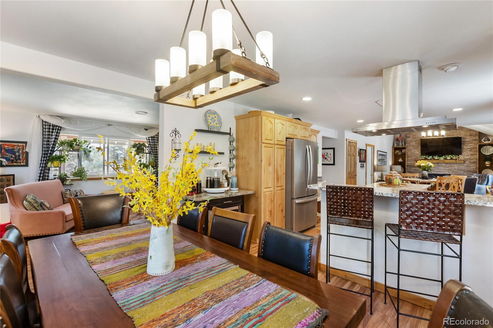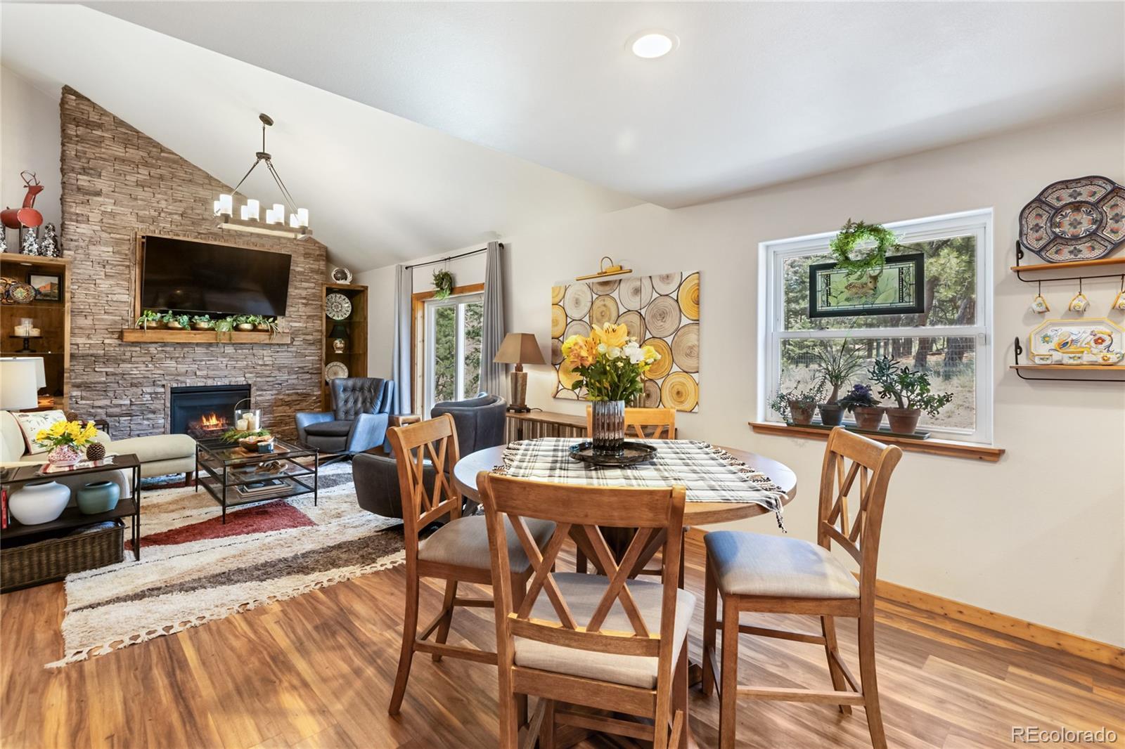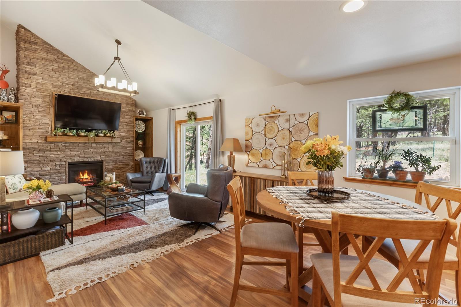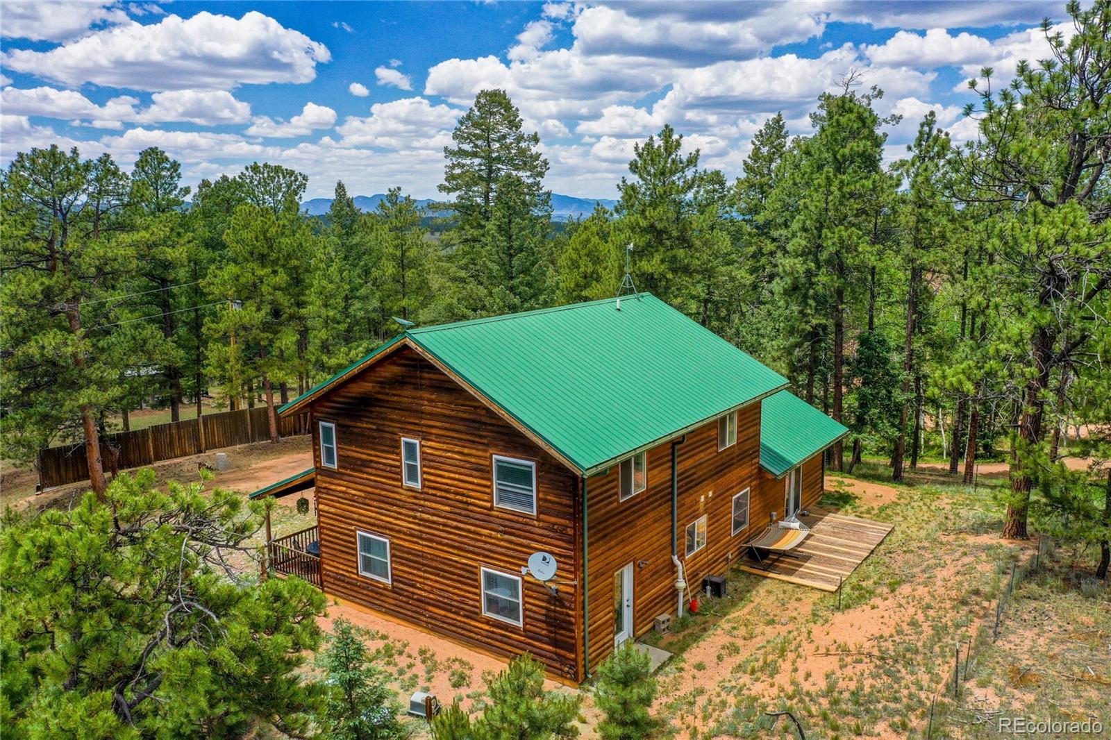 Charming Renovated Mountain Home with Suburban Comfort in Florissant Experience the best of both worlds in this thoughtfully updated 3-bedroom, 2.5-bath mountain retreat in scenic Florissant, Colorado. This log-sided home offers rustic curb appeal with a classic full-length front porch, while the interior delivers all the comfort and layout of a spacious suburban two-story. Inside, you'll find a welcoming blend of mountain-inspired finishes and modern convenience. Solid pine doors and trim, alder kitchen cabinetry, granite countertops, and new laminate flooring designed to pair perfectly with the radiant in-floor heating system create a warm and functional space. The kitchen is equipped with stainless steel appliances and opens into both a formal dining room and a casual breakfast area—perfect for entertaining. Enjoy two distinct living areas: a cozy living room ideal for quiet evenings or music space, and a separate family room anchored by a charming gas log fireplace with custom bookcases. The oversized attached garage includes an exterior side door and additional storage above, making organization a breeze. Additional highlights include: Newer furnace/boiler and water heater Professionally installed radon mitigation system Private, fenced backyard with a rear ground-level deck Primary suite with en-suite bath Western mountain views Starlink internet equipment included for high-speed, remote-friendly connectivity Whether you’re searching for a full-time residence, second home, or mountain investment, this property offers a rare combination of location, comfort, and versatility—ready for your next chapter. Don’t miss your opportunity to own a slice of Colorado’s mountain charm—schedule your showing today! Note: Size of the septic is unknown