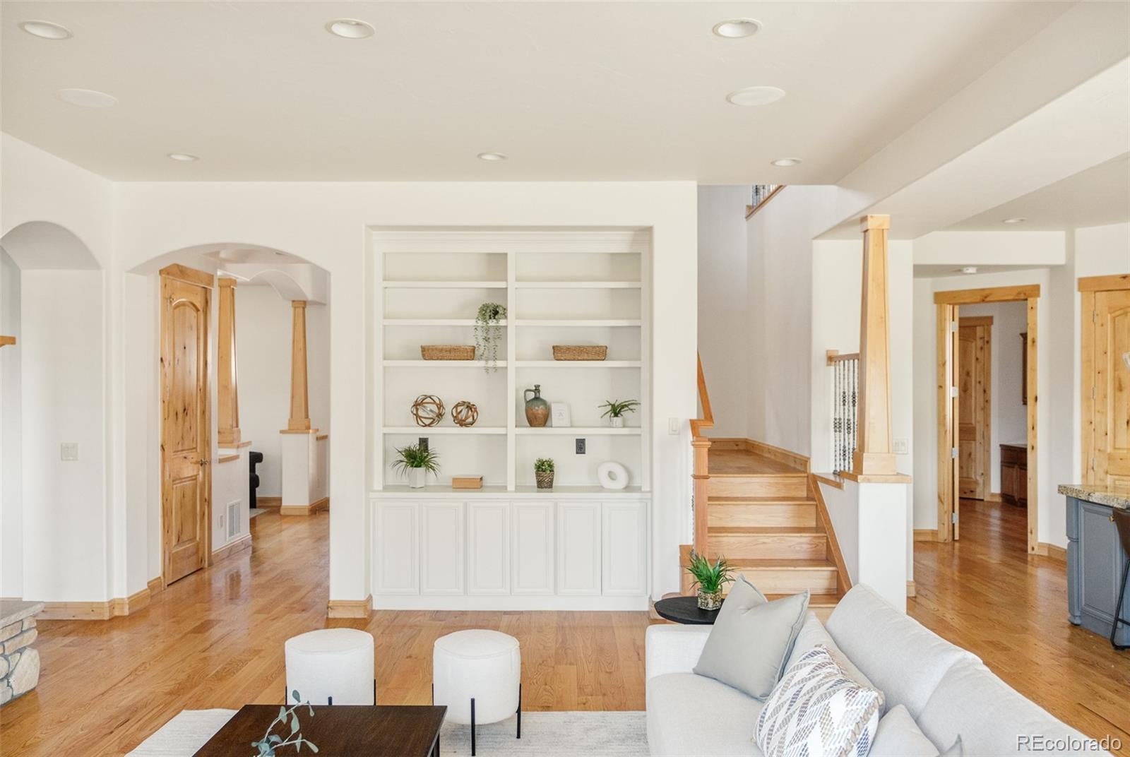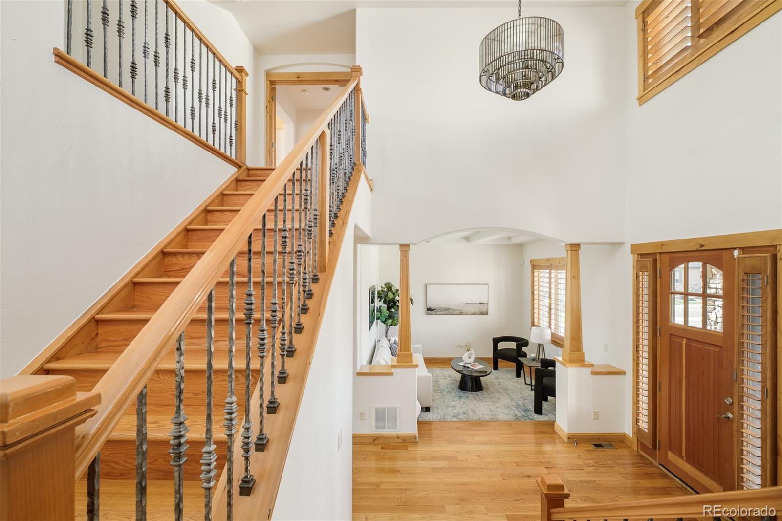Situated at the end of a quiet cul-de-sac and backing to open space, this refined residence offers a rare sense of seclusion with effortless access—just 20 minutes to Boulder, 25 minutes to downtown Denver, and 30 minutes to DIA. A timeless stucco-and-stone exterior with a concrete tile roof opens to a tree-lined backyard that lives like a private retreat, ideal for outdoor entertaining or peaceful relaxation. Inside, sophisticated design and exceptional craftsmanship define the main level, featuring formal living and dining areas, an open-concept great room and kitchen, and a dual executive office with a two-sided fireplace and custom built-ins. The kitchen showcases a custom wood hood, upgraded appliances, solid knotty alder doors, and updated lighting. Recent mechanical enhancements include two new Bosch HVAC/heat pump systems, a tankless water heater, and a three-zone smart thermostat system—totaling over $42K in upgrades. Upstairs, a versatile loft, beautifully upgraded baths, and a convenient laundry space enhance livability. The finished lower level extends the luxury experience with a spacious entertainment area, custom wet bar, temperature-controlled wine cellar, full gym with professional rubber flooring, and a flexible bonus area currently used as a dance and hockey room. Additional highlights include solid wood plantation shutters throughout, upgraded Toto fixtures, designer lighting, and an oversized three-car garage with epoxy flooring. Premium Pella Lifestyle Series doors, a smart irrigation system, and landscape lighting elevate both comfort and efficiency. Thoughtfully upgraded and impeccably maintained, this residence offers a rare combination of privacy, quality, and convenience in one of the area’s most desirable locations.