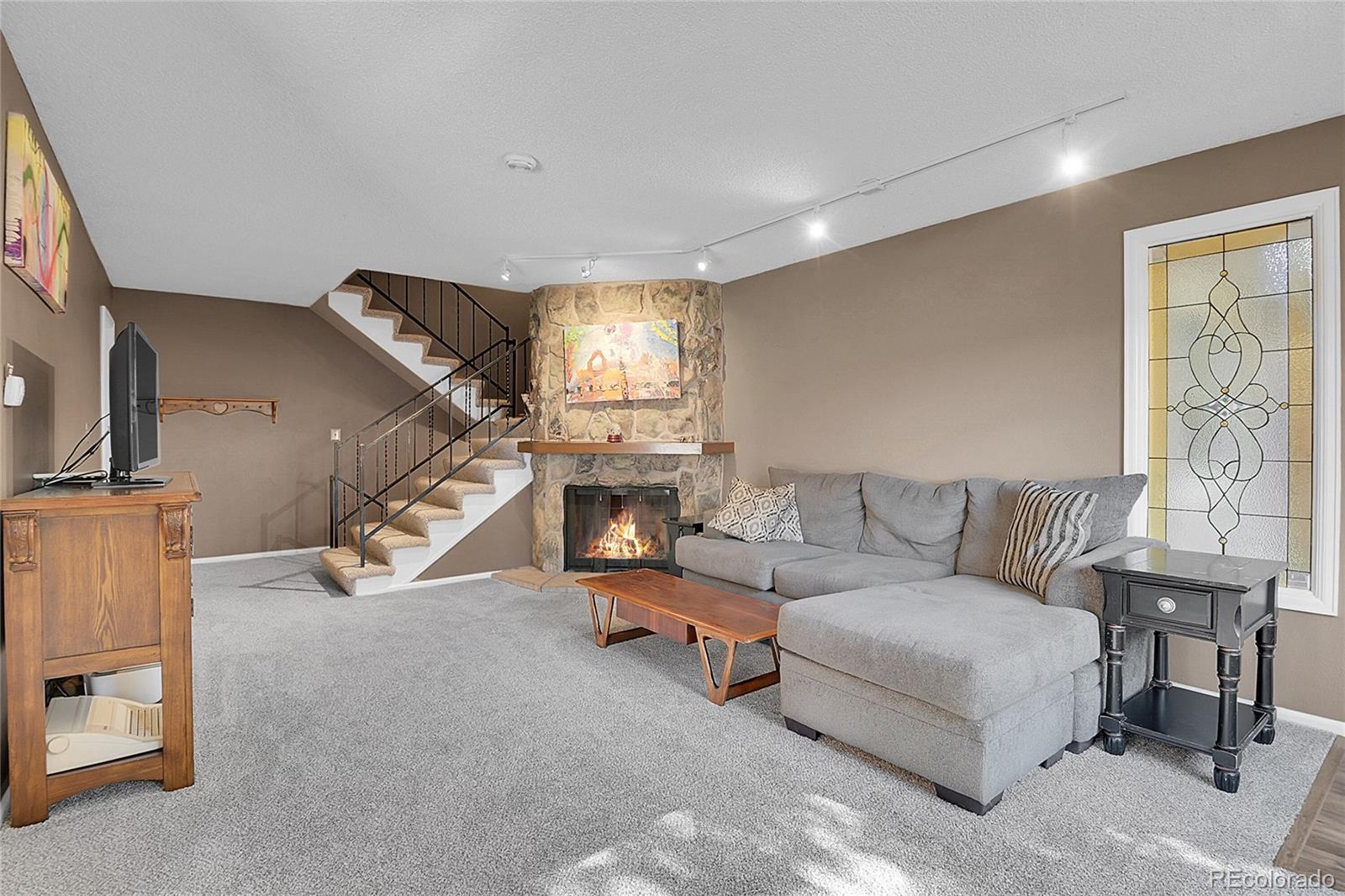 BIG SPACE. GREAT LOCATION. UNBEATABLE VALUE. This delightful townhouse features 3 bedrooms and 2 bathrooms upstairs and one half bath and laundry on the main level all wrapped up in a generous 1,905 square feet of living space, with some additional unfinished space for storage. With a two-car detached garage and lovely outdoor areas, there’s plenty of room for entertaining and enjoying our wonderful Colorado Lifestyle. Step inside and let the inviting living room welcome you with its new carpet and a stone fireplace, perfect for those chilly Colorado nights. The kitchen is updated and open with new laminate floors and room for dining table that opens out to big private patio/yard space. But wait, there’s more! The basement sports a rec room and unfinished storage area plus bonus space under the stairs. Picture yourself enjoying sunny afternoons on your deck upstairs off the primary bedroom or on your patio on main level, grilling up some delicious meals and soaking in the fresh air. This townhome building sides to the greenbelt and is walking distance to Dutch Creek elementary. The Columbine community is filled with trees and open areas, parks, grocery stores and minutes from Southwest Plaza, Clement Park and our amazing Foothills.
