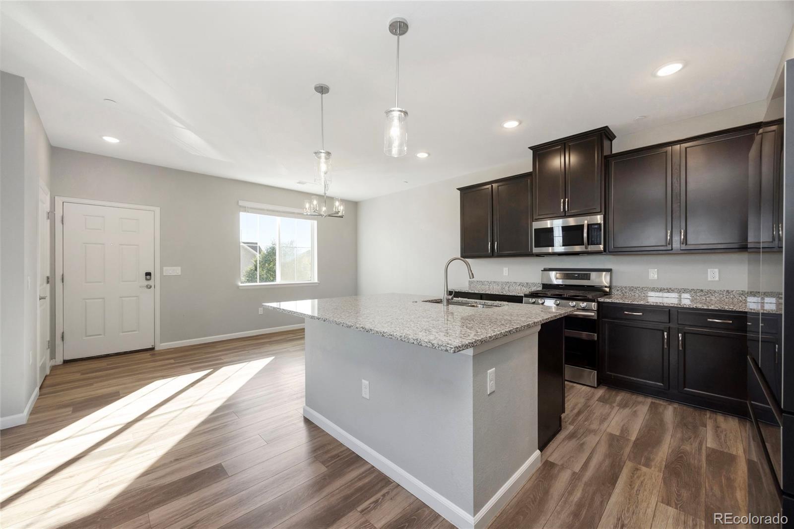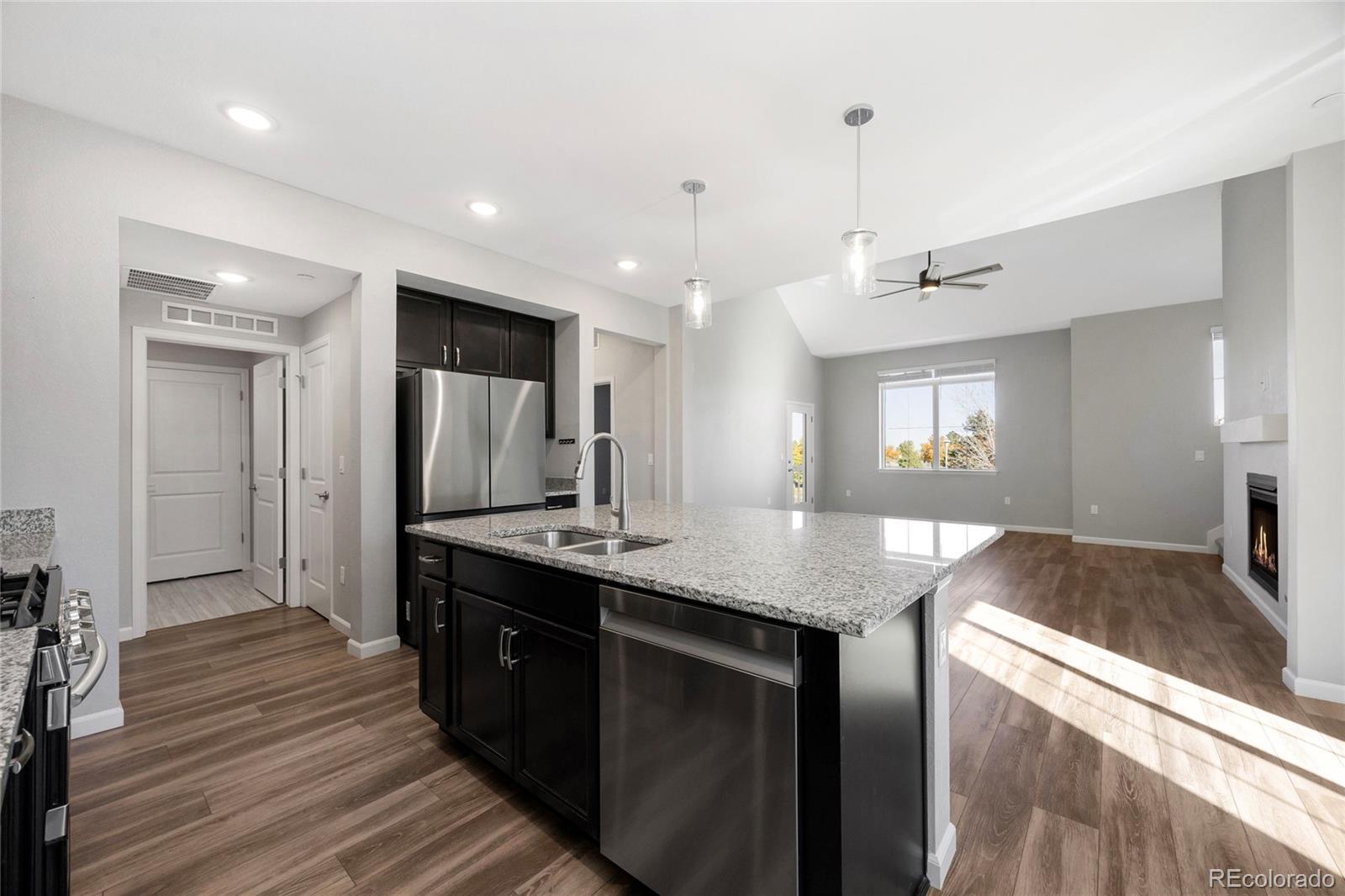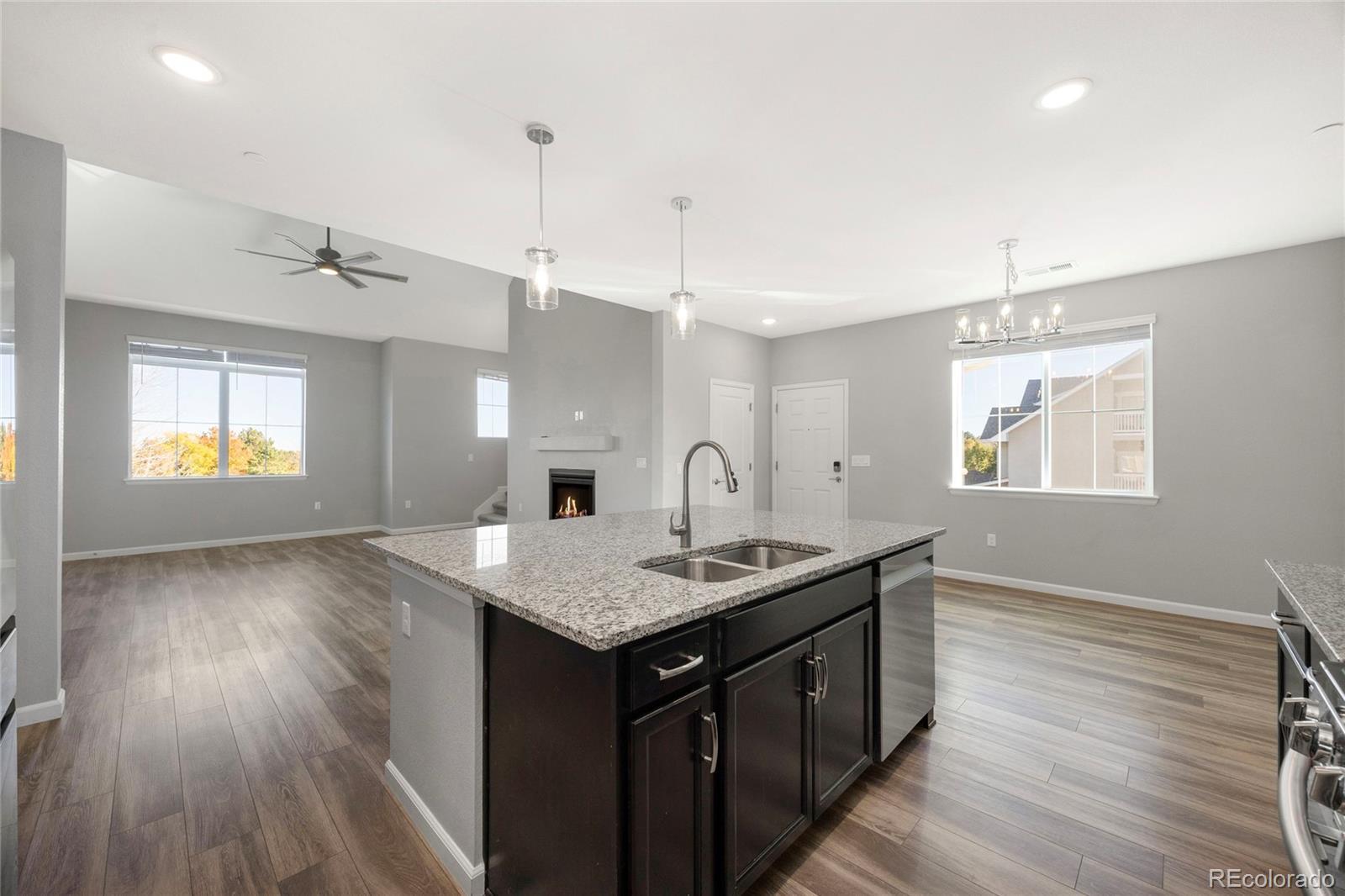 Welcome to 1881 S Dunkirk St #201, Aurora, CO 80017 — a stunning Lokal Homes Caden model offering modern design, comfort, and convenience with park views right outside your window. This spacious 2-story, 3-bedroom, 3-bath corner condo features 1,843 square feet of beautifully designed living space. The open-concept main level showcases luxury vinyl plank flooring, a gas fireplace, and an inviting eat-in kitchen island with granite countertops and stainless steel appliances. Step out onto your north-facing balcony overlooking Side Creek Park — the perfect place to enjoy morning coffee or a peaceful sunset. Upstairs, you’ll find both a primary ensuite and guest ensuite, providing comfort and privacy for all. The main-level laundry includes a washer and dryer for added convenience, and you’ll appreciate the attached 1-car garage plus an assigned parking space. This FHA-warrantable condo is part of a well-appointed community offering exceptional amenities: a pool, clubhouse, gym, playground, and spa/hot tub — all designed for easy, low-maintenance living. With its ideal location near parks, shops, dining, and major commuter routes, this Lokal Homes Caden model delivers the perfect balance of modern living, community connection, and everyday ease.