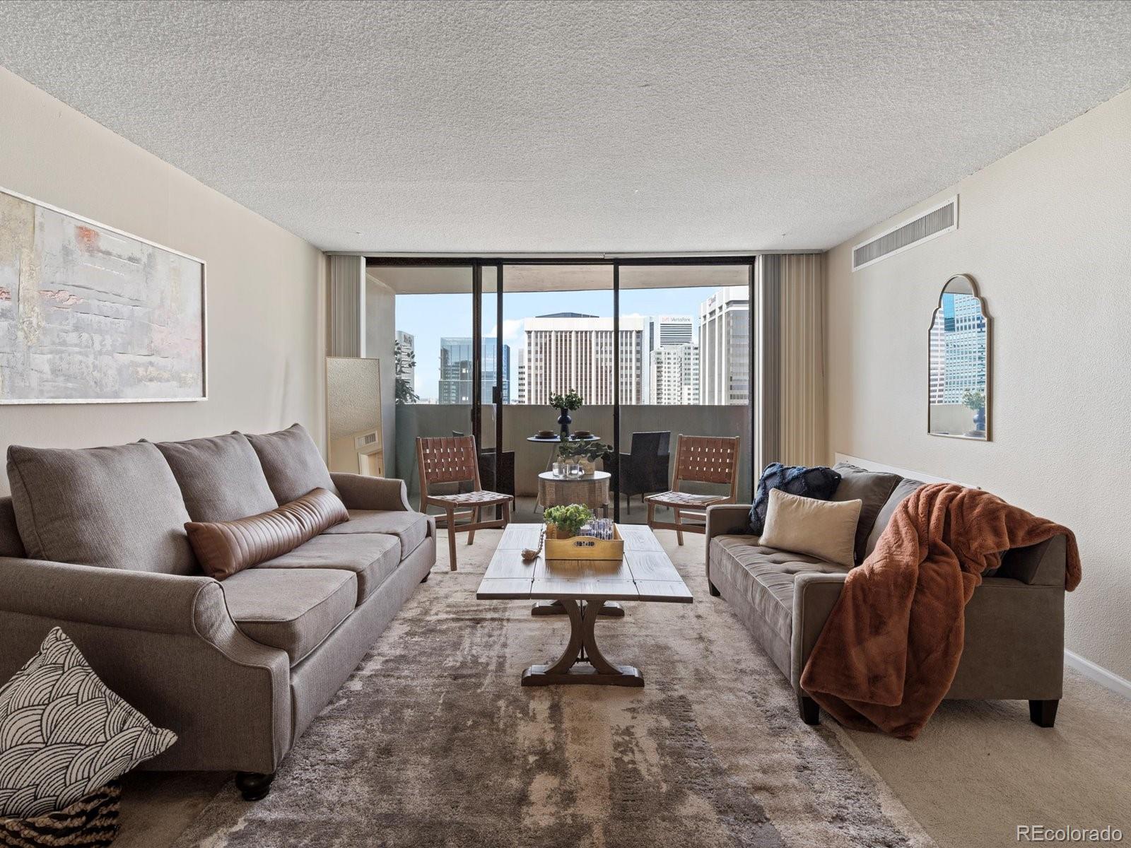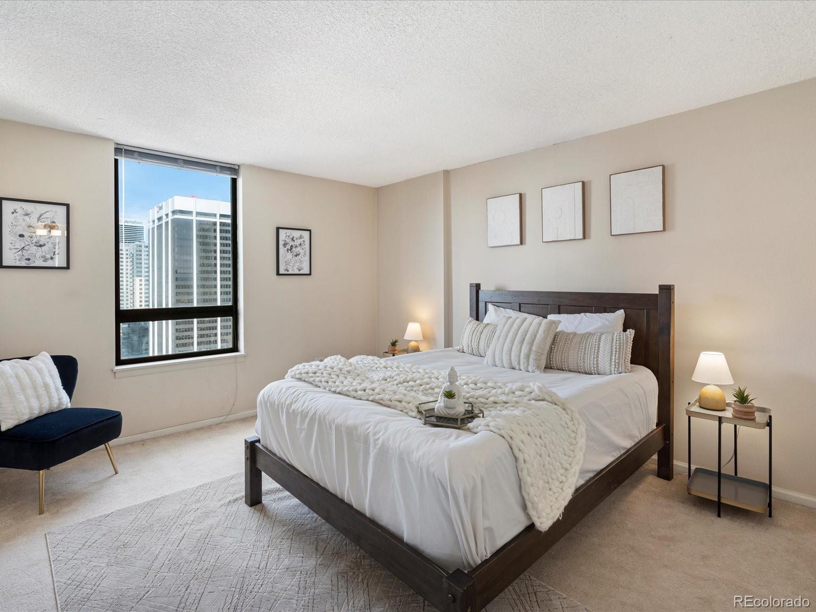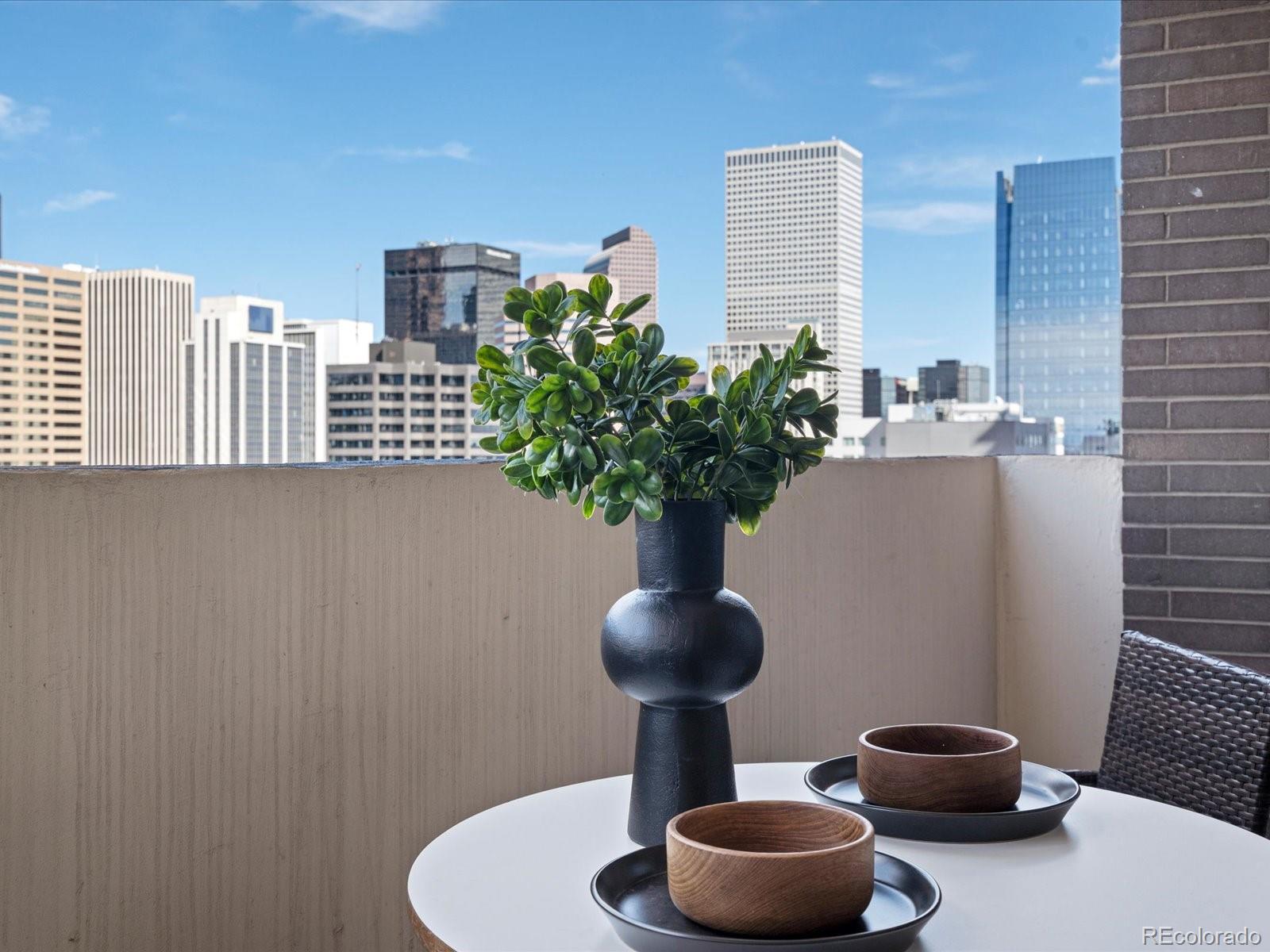 Welcome home to your urban sanctuary. This inviting condo effortlessly combines luxury and convenience. Upon entering you are greeted with an open floor plan and a breathtaking city view. Take in the views and all that Downtown Denver has to offer from your own private balcony large enough for dining and lounging. This home has been recently updated with new stainless steel appliances, shaker cabinets, and top of the line Brazilian Granite Counter tops in both Kitchen and Bathroom. Updates were done meticulously. Carpet was Replaced on 6/4/25, and home is no longer Staged. This is the ideal downtown location, in the heart of it all! Just outside your building doors are museums, theaters, shopping, restaurants, and nightlife. The building offers a city-scape pool, with 2 sundecks, a fitness room, conference center, and even a billiard room. All amenities are easily accessed on the 3rd floor. The HOA covers your water and heat, amazing amenities and the security and convenience of 24hr front desk service. Come take a look and see what the absolute best of downtown Denver living has to offer! If you are not interested in having a parking spot - the seller is willing to sell them separately, lowering the purchase price of just the condo.
