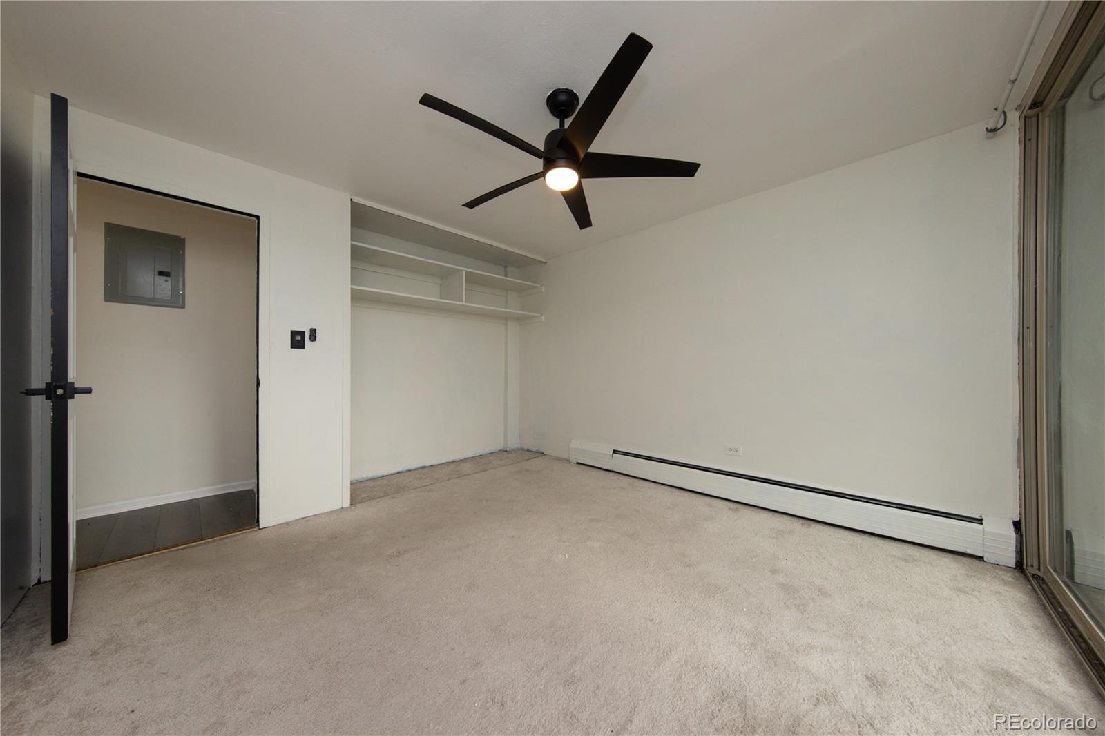 Great 2 bedroom condo close to I25, shopping and restaurants. Beautiful sunsets off the balcony or morning coffee for sunrises. You have all of the amenities - secured door, elevator to get to your unit, washer and dryer hook ups in the unit, ceiling fans in both bedrooms to keep you cool and comfortable and a/c in living room. Separate dining room with chandelier, new electric boxes throughout the complex, workout room and storage in the basement.