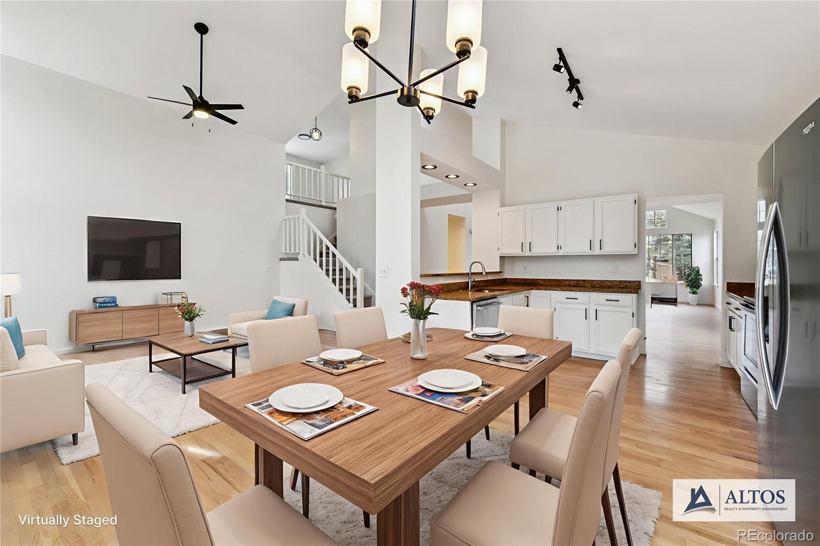 Welcome to 9714 Laredo Street !! A beautifully updated 5-bedroom home in the highly desirable Timberline neighborhood of Highlands Ranch! This home offers an exceptional combination of space, layout, outdoor living & amenities. As you enter, you’re welcomed by a formal living room or flex space followed by a formal dining area - perfect for entertaining. Recent updates include fresh interior paint, updated fixtures, brand-new carpet, and refinished hardwood floors, creating a bright, move-in-ready feel throughout. The kitchen features granite countertops, stainless steel appliances, and ample cabinet space while flowing seamlessly into the main living area. The thoughtfully designed floor plan includes a main-floor primary suite, two bedrooms upstairs and two additional bedrooms in the fully finished basement. An upstairs bonus loft provides additional flexible space for an office or second family area. One of the home’s standout features is the large, south-facing backyard. Enjoy outdoor dining and entertaining on the spacious deck with an expansive yard. Located in one of Highlands Ranch’s most sought-after communities, this home is updated, spacious and move-in ready!