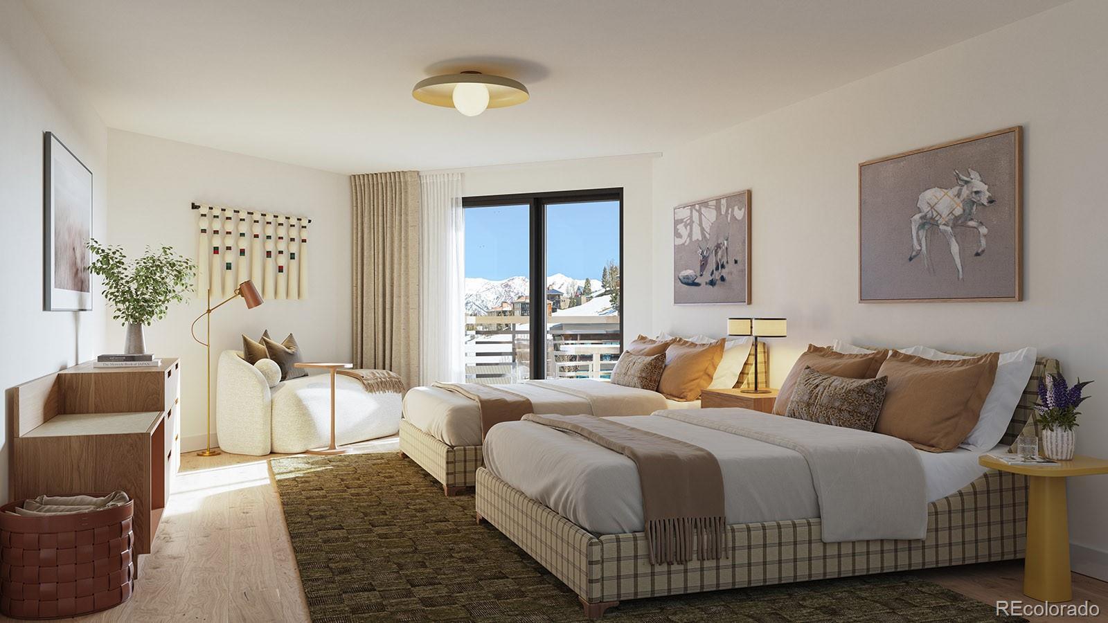 Set on the 4th floor with immediate elevator access, Beckwith Residence 440 offers an elevated take on alpine luxury, combining a spacious and flexible layout with unmatched ski slope views. The Trailrider floor plan spans 2,318 square feet, featuring three bedrooms, three full baths, a bunkroom, mudroom, and a lockoff suite. This slopeside residence delivers five private balconies that immerse you in the energy of the mountain. Enjoy panoramic views of the Red Lady and Silver Queen chairlifts. Inside, discover light-filled and airy interiors bathed in soft earthy neutrals, warm wood tones, and natural textures that echo the alpine meadows of Crested Butte. The open-concept design flows effortlessly from a gourmet kitchen— complete with natural stone countertops, top-tier appliances, and ample storage—into a welcoming living and dining space framed by oversized windows and balcony access. A custom millwork bench and cubbies in the mudroom keep gear and clutter out of sight, so you’re always ready for the next adventure. The primary suite is a peaceful escape, featuring a private balcony, millwork wardrobe, and a spa-inspired en-suite bath with Kohler fixtures and radiant finishes. The flex/bunk room adds additional space for extra guests. The lockoff suite, with its own private entrance and en-suite bath, delivers additional flexibility and privacy. With no compromise on location, layout, or light, Residence 440 is a standout residence for those who crave direct access to the slopes, versatile living, and jaw-dropping views. The Beckwith is the only ski-in, ski-out resort in the heart of Crested Butte's base area, with world-class amenities including a four-star, community-inspired hotel, seamless ski valet, luxurious spa, adventure concierge, and private mountain & social community, Club Beck. A multi-phased reimaging of Elevation Hotel & Spa will transform almost every space at the resort, with residences anticipated for completion in the Winter 26-27 ski season.