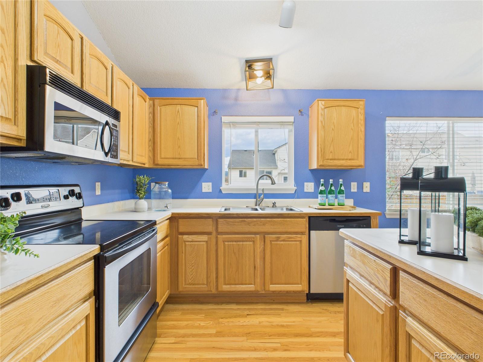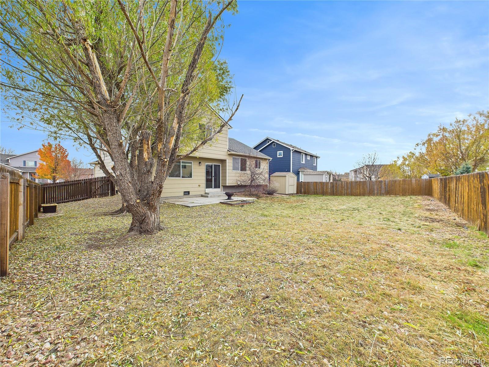 Welcome home to the sought-after Ridgeview at Stetson Hills neighborhood, featuring a beautiful open layout with plenty of space to spread out. Enter to your formal living space with custom floating shelves. The bright, eat-in kitchen shines with newer stainless steel appliances, walk-in pantry and island with breakfast bar. Enjoy the light-filled sunken living room, great for entertaining with direct access to the beautiful fenced backyard. Upstairs you'll find an oasis in the primary suite with an en-suite and walk-in closet along with two spacious bedrooms and another full bath. The real "win" is the unfinished basement—a perfect blank canvas ready for your creativity to add instant equity and build the dream home theater or gym you've always wanted. This home is truly move-in ready, with the washer and dryer included, newer appliances and air conditioning for those warmer summer months. Enjoy an ideal location just minutes from neighborhood schools, parks and all the best shopping and restaurants (Starbucks, Target, etc.) that the Powers corridor has to offer. Just steps from Snowy River Park! This is the opportunity you've been waiting for!