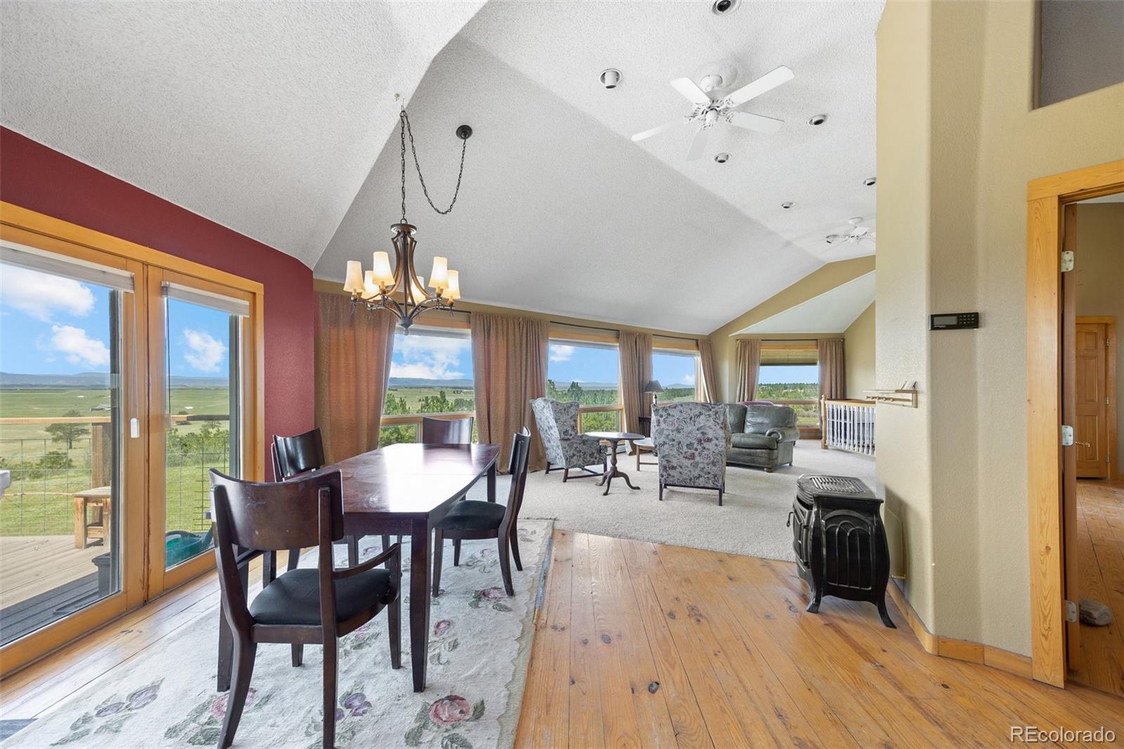 Whether you seek a serene escape or an idyllic space for your horses, this remarkable property offers it all. With spectacular views from every rear window, this spacious home presents a wealth of potential. Nestled on over 36 acres, the home boasts 6 bedrooms, an office, a bonus room, and 4 1/2 baths, providing more than 5,000 finished square feet of living space for everyone to enjoy. The open main level features breathtaking mountain vistas and flows seamlessly onto a large deck, ideal for entertaining family and friends. An oversized four-car garage ensures ample room for vehicles and equipment, while a generously sized barn awaits your horses, accompanied by a large chicken coop. For those craving even more seclusion, an additional adjacent 43 acres are also available for purchase. The photos simply can't capture the full beauty of the views - this property truly needs to be seen. Don't miss your chance to own this Colorado retreat for you and your animals!