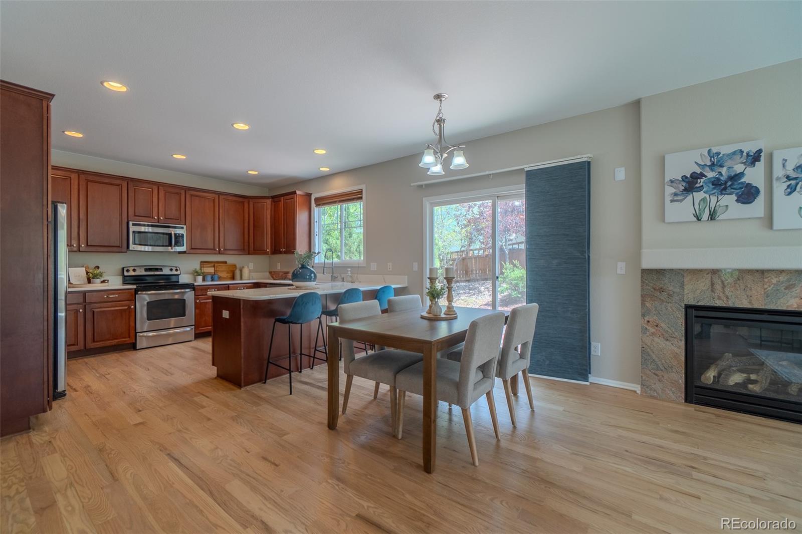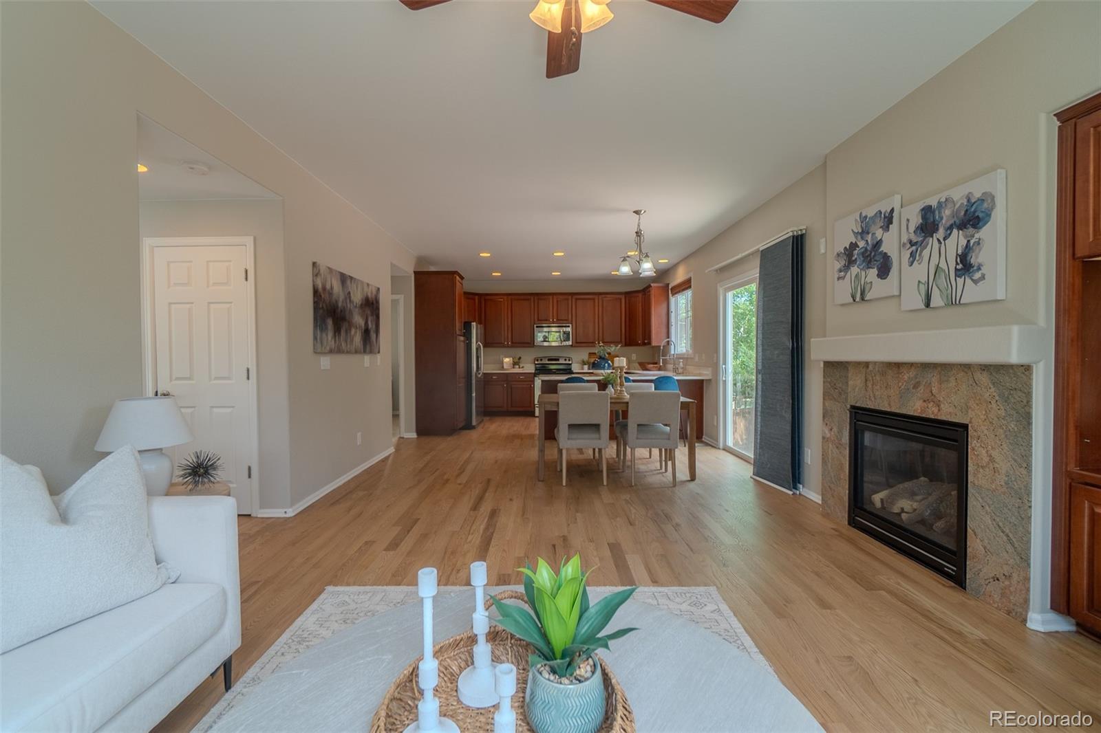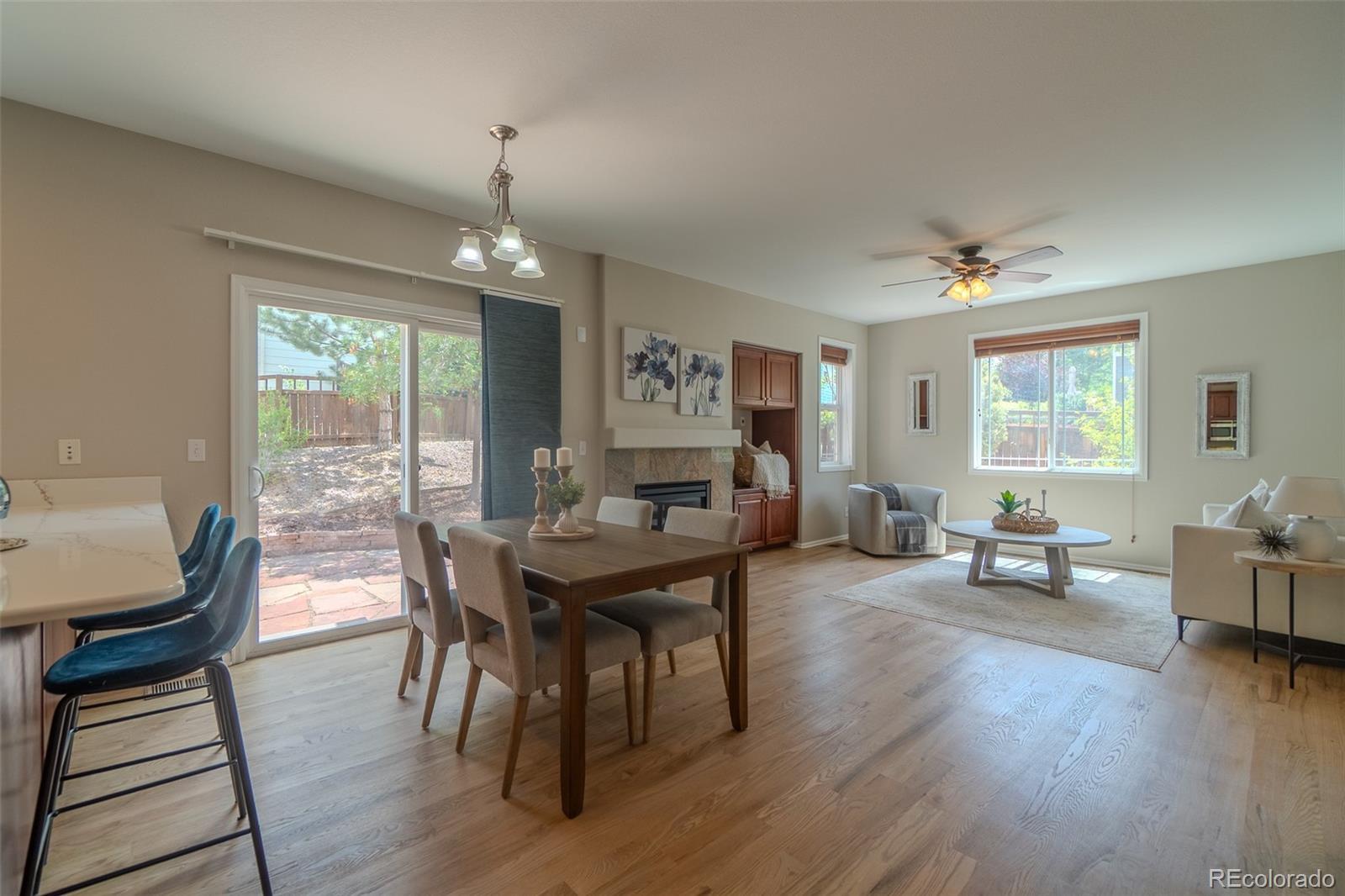 Welcome to this beautifully updated 4-bedroom, 2.5-bath home in the desirable Meadows neighborhood of Castle Rock. Step inside to stunning, newly refinished hardwood floors that flow throughout the bright and open front living room. Toward the back of the home, you'll find a cozy family room featuring a gas fireplace and an abundance of natural light, seamlessly connected to the dining area and spacious kitchen. The gourmet kitchen shines with brand new quartz countertops, a modern tile backsplash, rich mahogany cabinets, a new sink, and stainless steel appliances—perfect for everyday living and entertaining. Upstairs, the luxurious primary suite offers French doors, a generous layout with space for a sitting area, and a spa-inspired 5-piece bathroom complete with a glass-enclosed shower, soaking tub, double vanity, and an expansive walk-in closet. Three additional bedrooms and a full bath complete the upper level, providing plenty of space for family, guests, or a home office. The home also features an unfinished basement, offering endless possibilities to customize and expand your living space. Step outside to your private backyard retreat with a flagstone patio, cozy fire pit area, mature trees, and fresh landscaping—ideal for entertaining or simply relaxing at home. Enjoy all the amenities The Meadows has to offer, including parks, scenic trails, and a community pool. Conveniently located near top-rated schools, shopping, and dining. Don’t miss this move-in-ready gem in one of Castle Rock’s most sought-after neighborhoods!