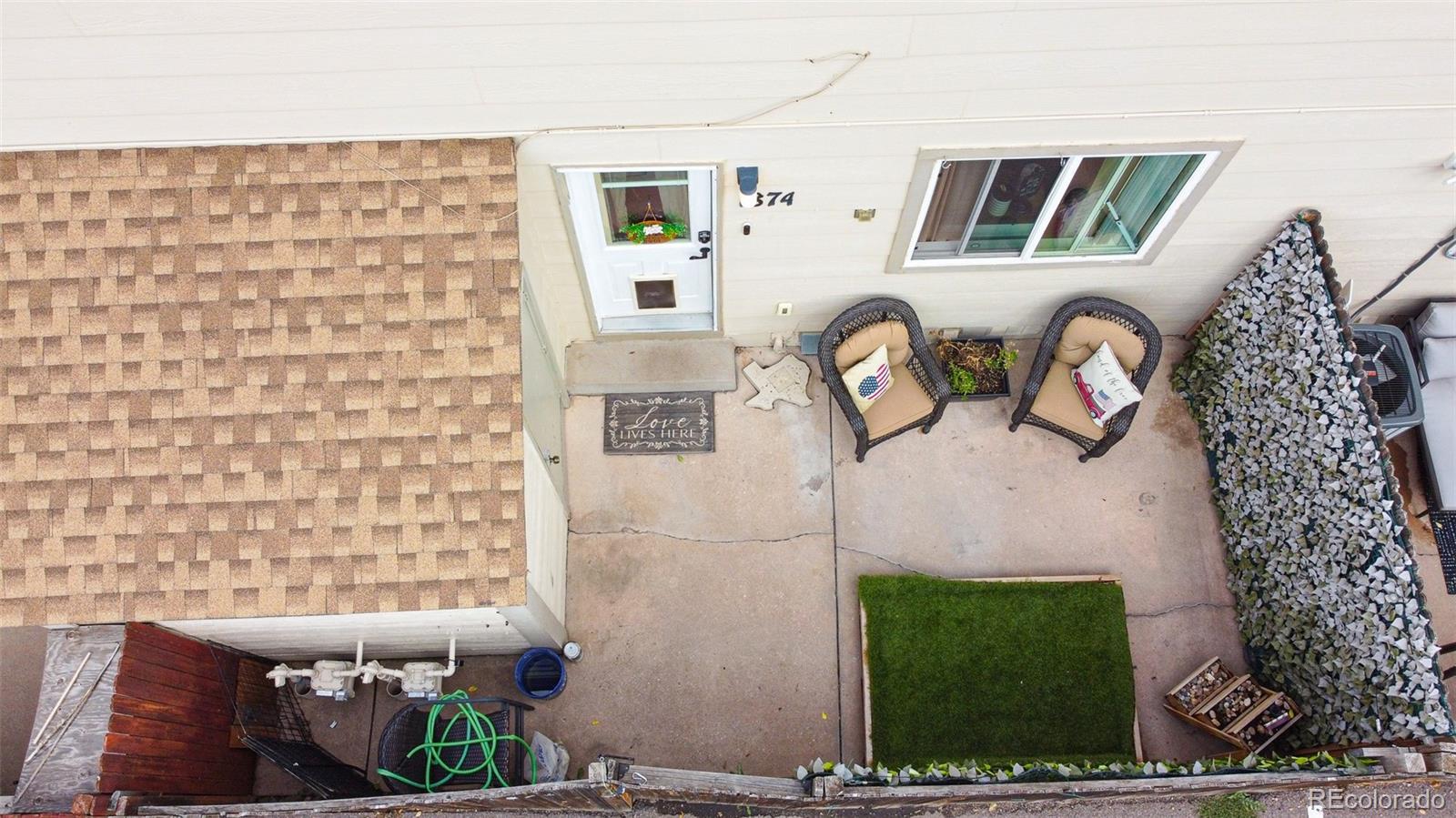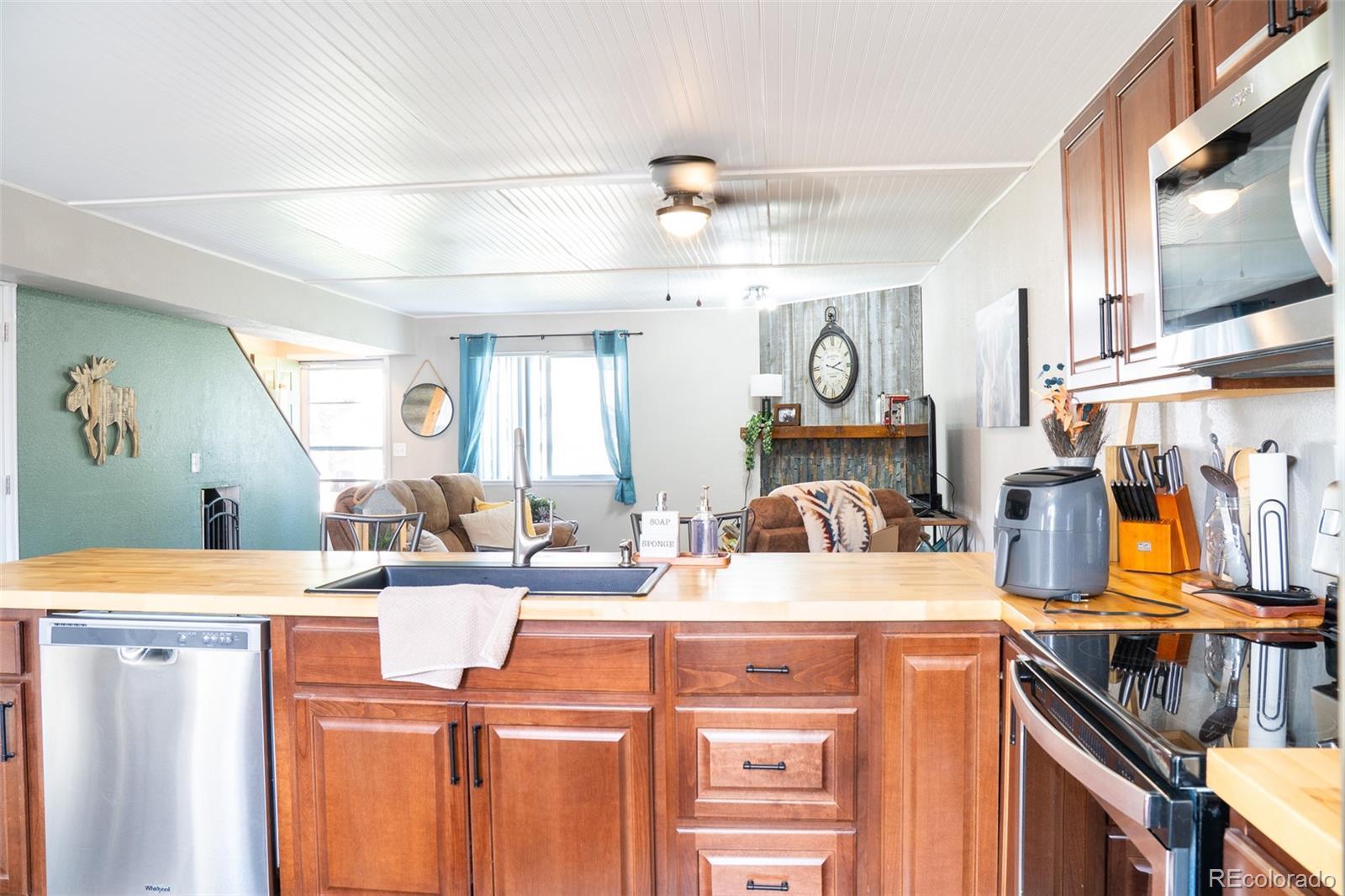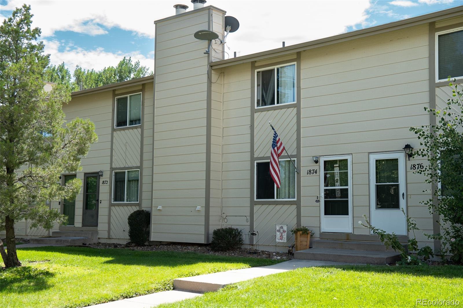 Welcome home to this tastefully updated townhome with private, fenced back patio. As you enter the front door you will notice a secure screen door to allow Colorado breezes in. The wood burning fireplace is the perfect place to cuddle up on a cool evening and keeps the home warm and cozy. Tucked under the stairs you will find a fun & unique, built in dog kennel or storage space. The open concept kitchen is perfect for entertaining with a large breakfast bar, all SS appliances, beautiful butcher countertops & room for a table and chairs. There is a convenient, nicely decorated half bath for your guests. The main floor has newer flooring throughout. Upstairs you will find 3 decent sized bedrooms and a full bath. The bath has been updated to include a Bluetooth speaker. The back patio is located off the kitchen to provide easy access for those family BBQs and a great space for your pups & yourselves to enjoy the outdoors. The Eastridge Townhomes is a very well maintained complex with nice landscaping and green grass to enjoy. This home is close to several military bases, restaurants, theaters, dog parks, golf courses and more. Don't wait to see this affordable and adorable townhome.