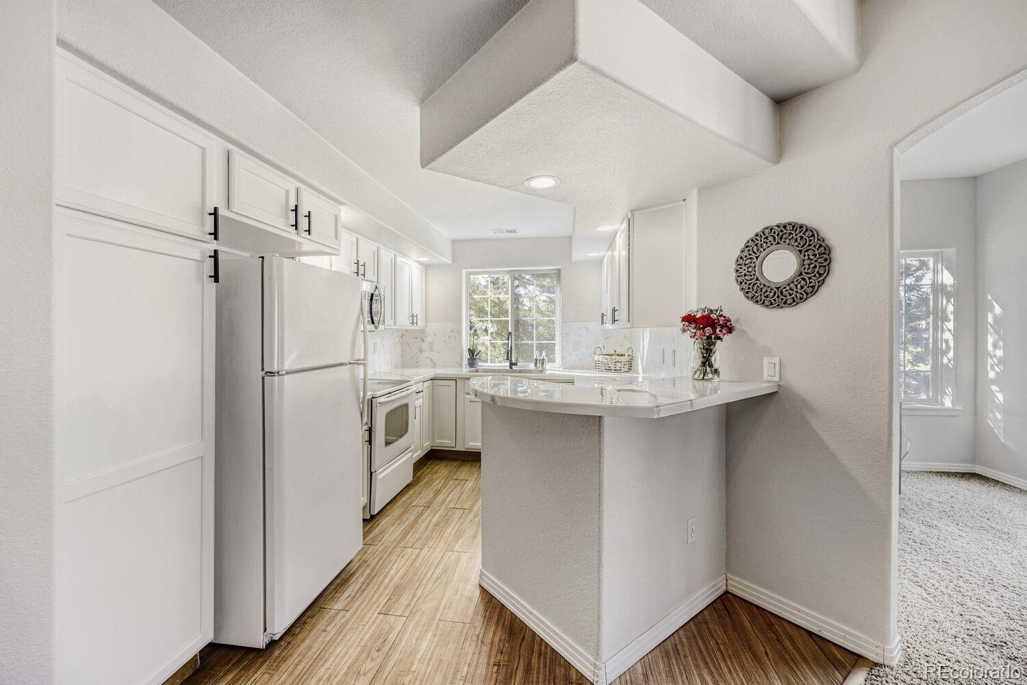 Welcome to 10735 Eliot Circle, Unit 201, where low maintenance living meets golf course serenity. This move in ready 2 bedroom, 2 bathroom end unit condo offers over 1,300 square feet of comfortable and versatile space in a well maintained, professionally managed community just steps from Legacy Ridge Golf Course! Situated as a private end unit near the fifth hole, this home enjoys added privacy and a peaceful setting from the moment you arrive. The open concept layout flows seamlessly between the living, dining, and kitchen areas, plus a flexible bonus space ideal for a home office, workout area, or reading nook. Whether hosting friends or enjoying a quiet evening in, the layout feels open and inviting. The spacious primary suite features an ensuite bathroom and generous closet space, while the second bedroom is perfect for guests, a roommate, or additional work from home needs. In unit laundry and central air conditioning add comfort and convenience year round. Parking is a standout feature with an attached garage, a rare find for condo living, along with additional driveway and guest parking. Enjoy easy access to golf, parks, trails, shopping, dining, and major commuter routes. Close to Denver yet tucked into a calm, established community, this home offers the best of both worlds. Ideal for a first time buyer, downsizing, or investment, this property combines comfort, convenience, and location in one compelling package!