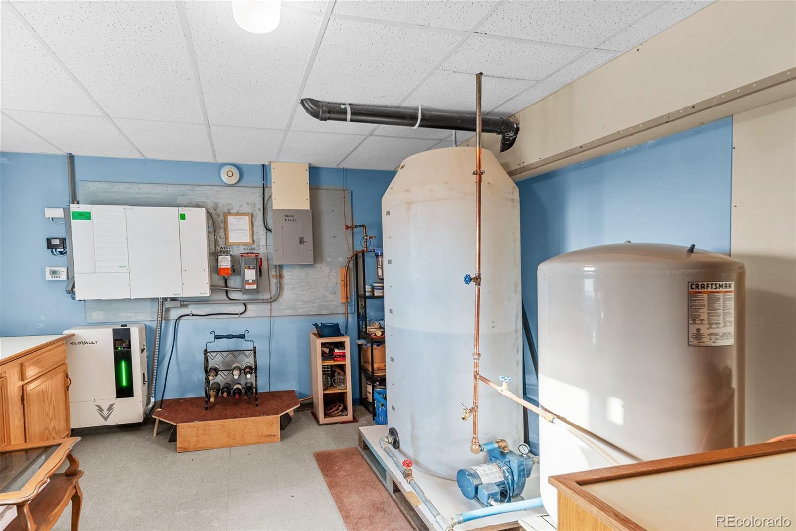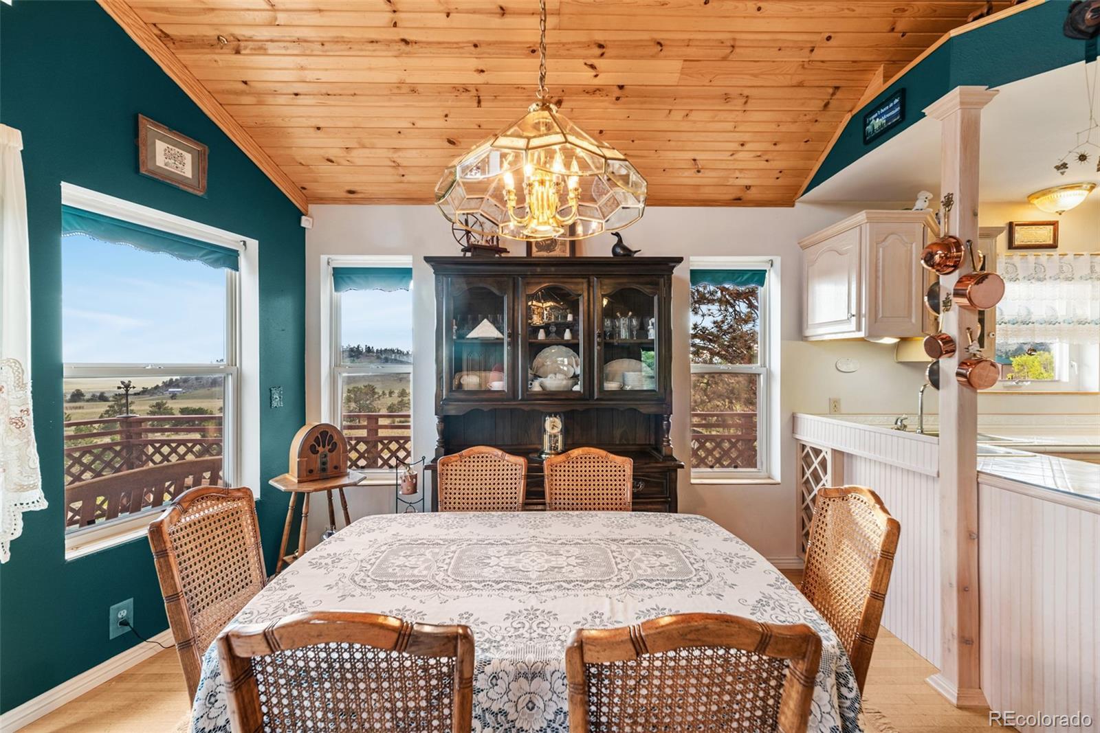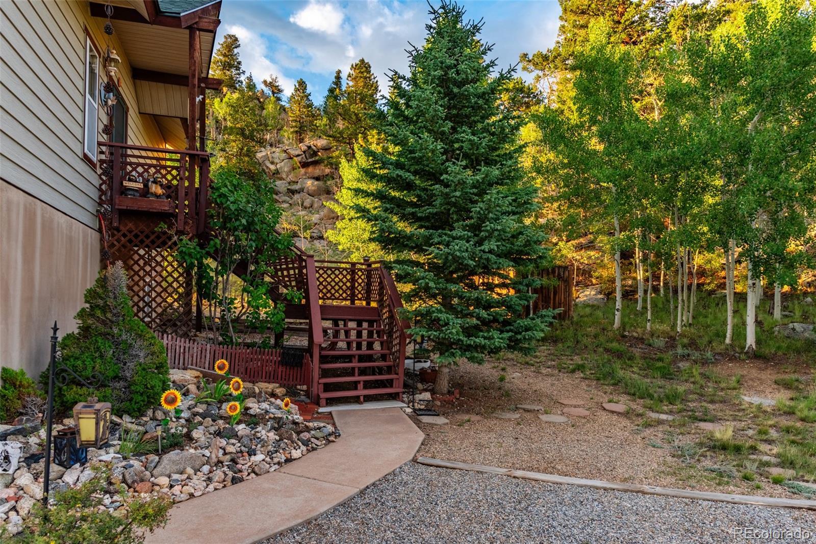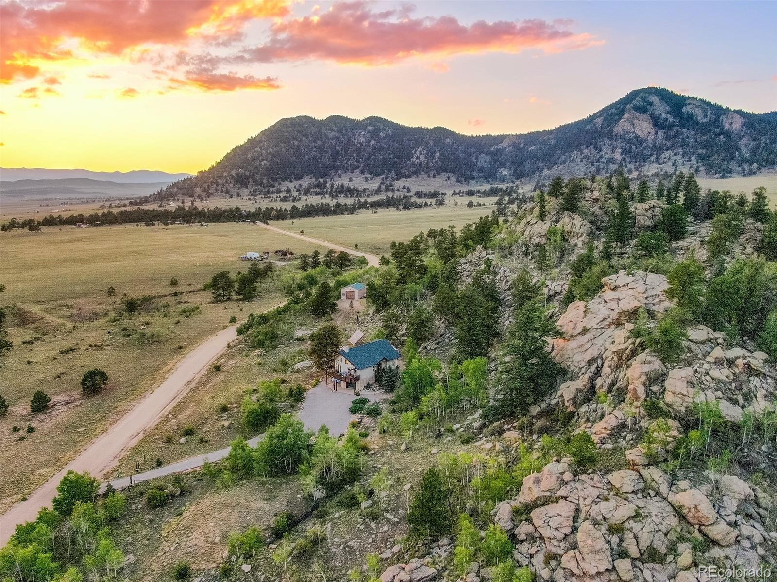 This is the epitome of a mountain getaway! A charming, meticulously kept off-grid cabin on a quiet, private road that backs right up to thousands of acres of National Forest. A beautiful gravel driveway leads through a gated entry up to this landscaped yard and lovely home with so many special touches. The open main level has a spacious living and dining area with tongue and groove vaulted ceilings and a cozy wood stove for that mountain cabin feel. The well laid out kitchen has an abundance of cabinet space and extra seating, perfect for entertaining. A full bath and laundry room are conveniently tucked back behind the kitchen. A primary ensuite with a 3/4 bath and a gas fireplace is a comfortable sanctuary. The upper level loft is ideal for use as office space or an additional sleeping area for guests. The lower level has a two car tuck under garage, a utility room and a second bedroom. A deck on the front of the home is the perfect place to appreciate the views of the Colorado mountains and massive rock outcroppings. Situated on almost 8 acres, you will have room to roam. The property also has an additional 24X30 Metal building with a 14X14 door to store your toys or set up a workshop and a storage shed. Located in such a solar friendly area, the home runs quite efficiently on the upgraded solar system. A new roof, a generator, additional water storage, and metal siding will add longevity to your purchase. DB Pane Single Hung tip-in windows, DB Filtration System. The appeal of location, stunning views, and mountain charm make this a must see.