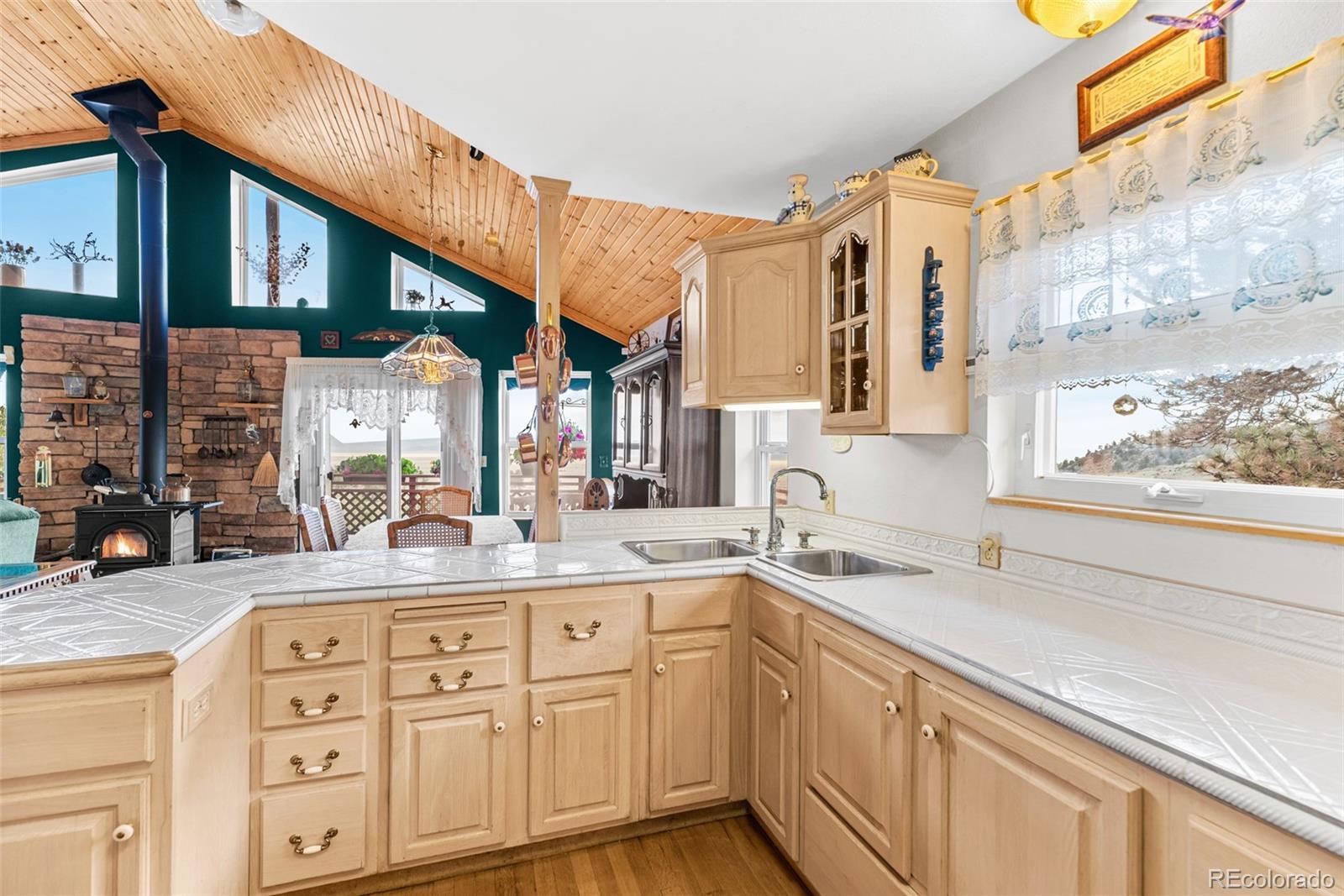 Ceiling Fan(s), Open Floorplan, Primary Suite, T&G Ceilings, Tile Counters, Vaulted Ceiling(s)