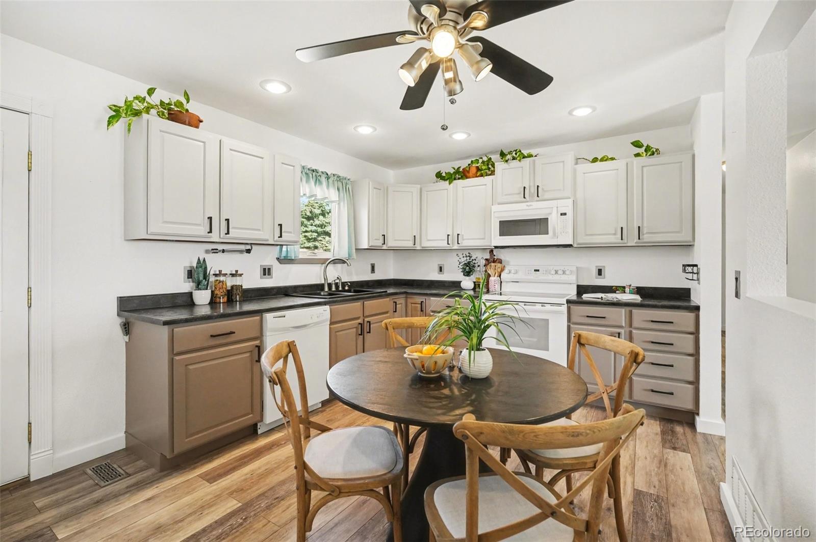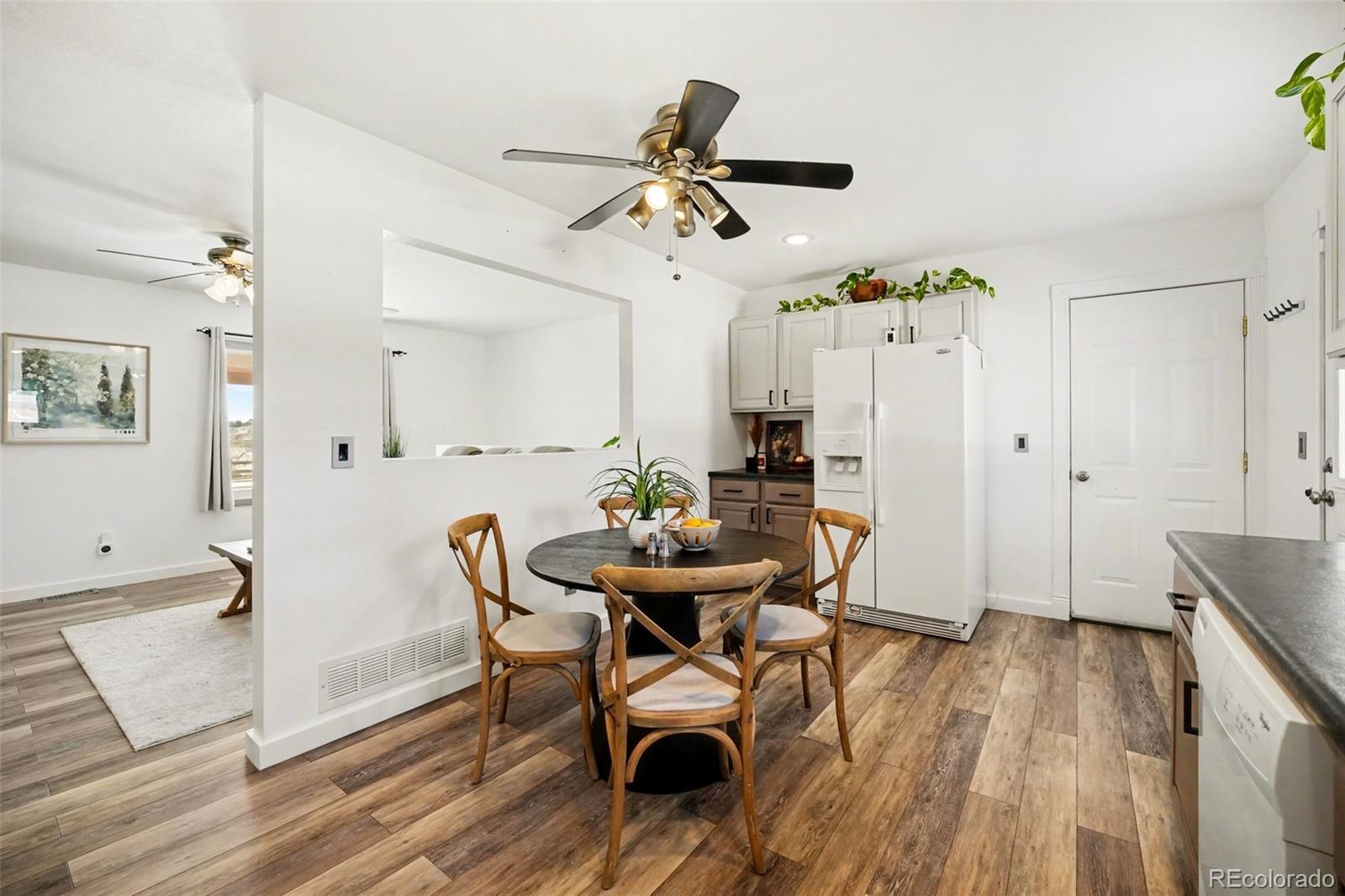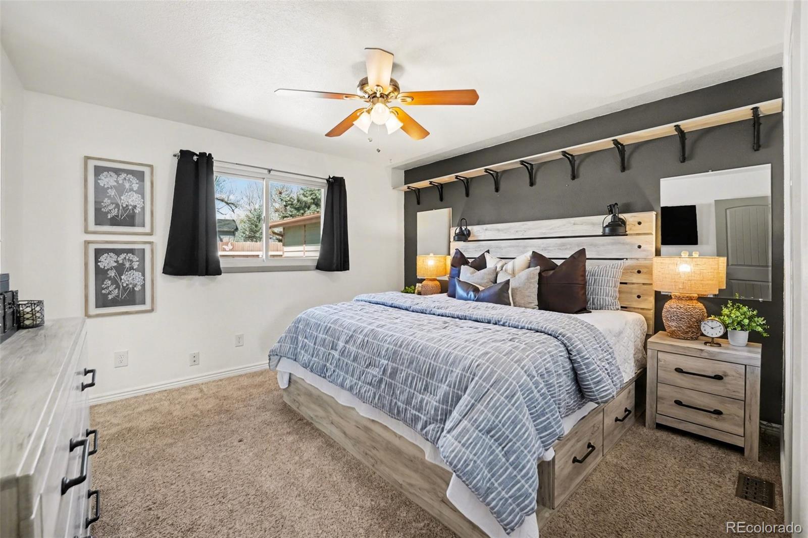 Beautifully maintained 4-bedroom, 3-bath ranch home with basement and primary bedroom on the main level. Recent updates include a new electrical panel and covered front porch addition in 2024, replacement of upper-level windows, and fence painted in 2025. The covered front porch features a concrete pad, exterior ceiling fans, lighting, and added soffit electrical. The basement provides additional bedrooms and flexible living space. Attached 2-car garage with overhead storage, mounted vacuum system, and installed EV charging station, plus additional exterior RV parking. Exterior features include landscaped backyard with garden areas and sprinkler system, storage shed, natural gas line stubbed for BBQ or fire pit, and hot and cold exterior spigots. Located near Standley Lake Regional Park, Big Dry Creek Trail, Westminster Hills Off-Leash Dog Park, Walnut Creek Open Space, and US-36 for access to Denver and Boulder.