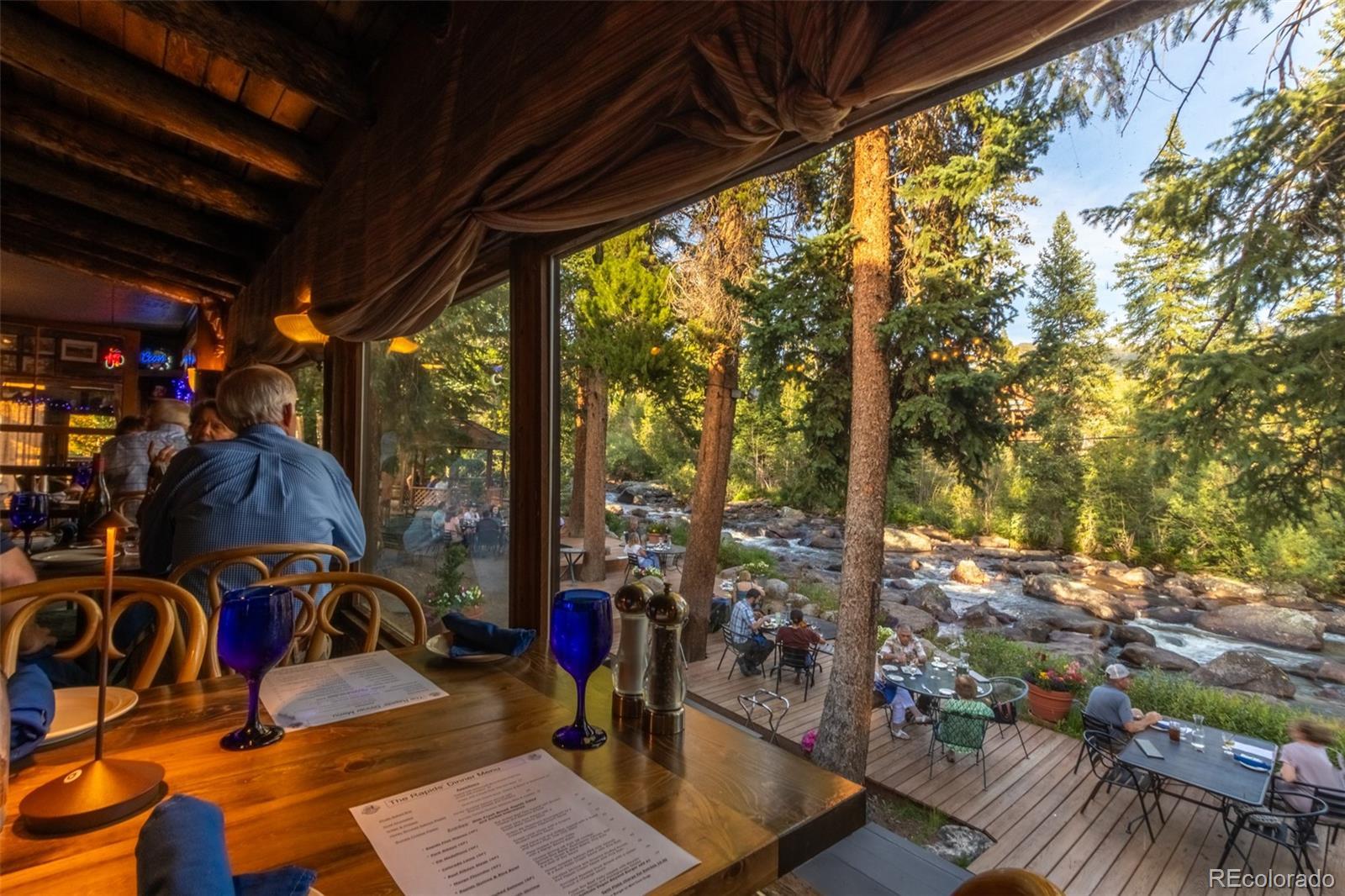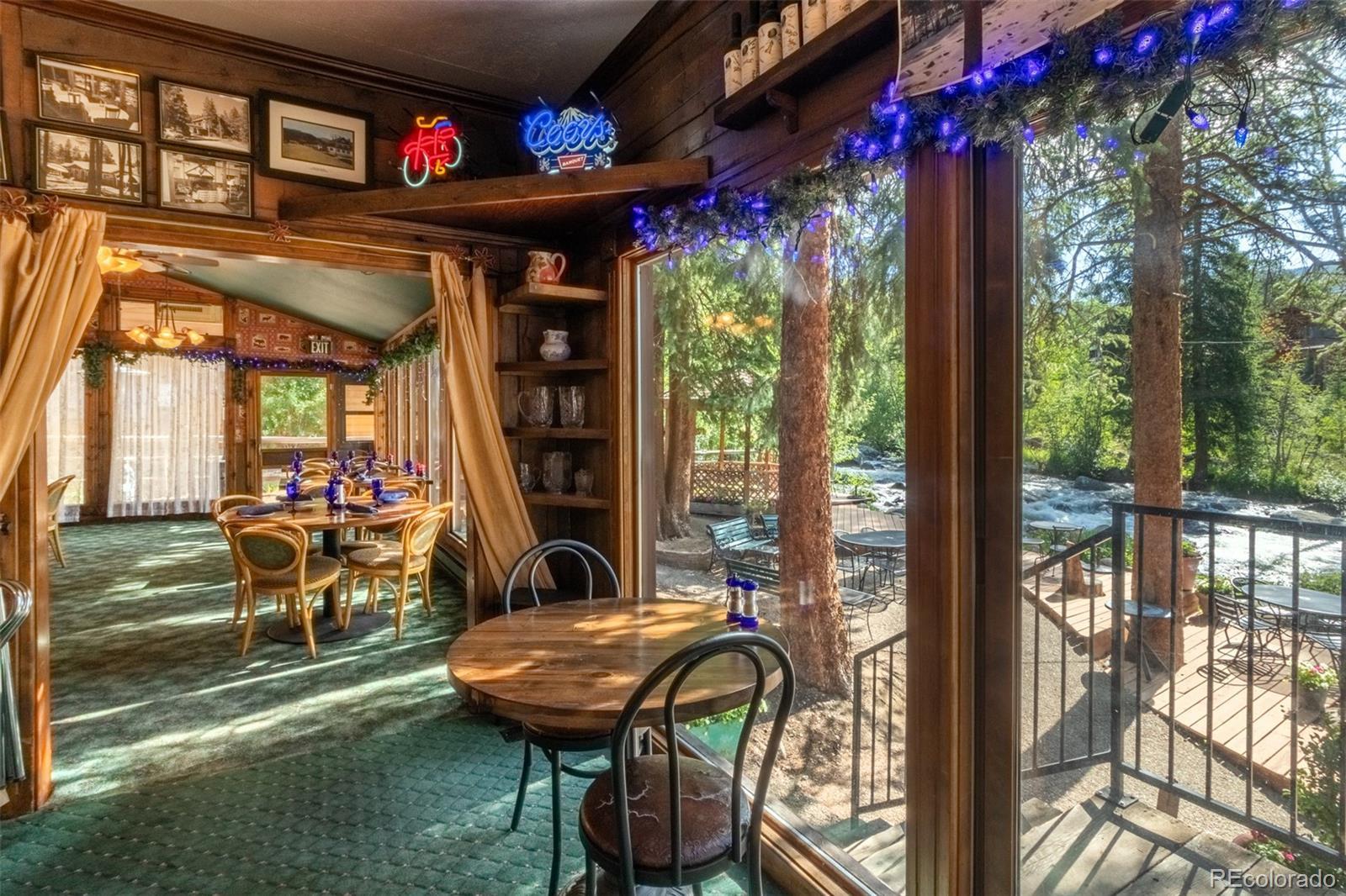 Price just reduced from $2,350,000 to $1,895,000 to make it easy for you to remodel the 7,000 square foot Rapids Restaurant, the only commercial property along the streams in Grand Lake. It could be something other than a restaurant - perhaps a spa, with those 6 charming rooms? Wine & cheese & appetizers along the river? Your own private home? Owner's/ Employee quarters all included at this price - no need to buy a million dollar waterfront home when you can live here and collect income as well. Seller financing is available. Dine along the stream at this popular restaurant & bar, just a few blocks before it spills into Colorado's largest natural lake: Grand Lake. 4,000 square foot restaurant/ bar/ banquet room/ lobby level seats about 100 guests inside and 45 outside. Another 2600 square feet on the middle level: 6 unique employee rooms, each with a private bath, that can be easily offered to Bed & Breakfast guests. Plus, a Spacious 2 bedroom/ 2 bath owner's apartment / manager's quarters on the private third floor adds another 984 square feet. Leave your windows open all summer to hear the sounds of the clear cold water coming from out of the Rocky Mountain National Park just up the hill. Ownership includes land to the middle of the stream - 100 feet along and below the waters of the North Inlet. Just beyond the east end of the Boardwalk, 2 1/2 blocks from the beach! R148150 #210 Rapids Lane Now "as is" at $1,895,000