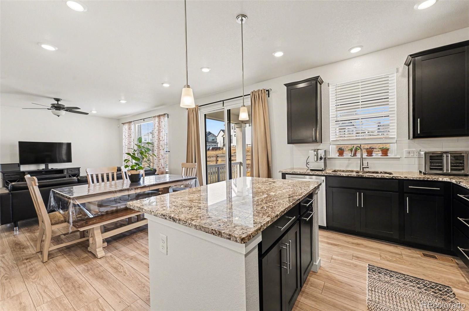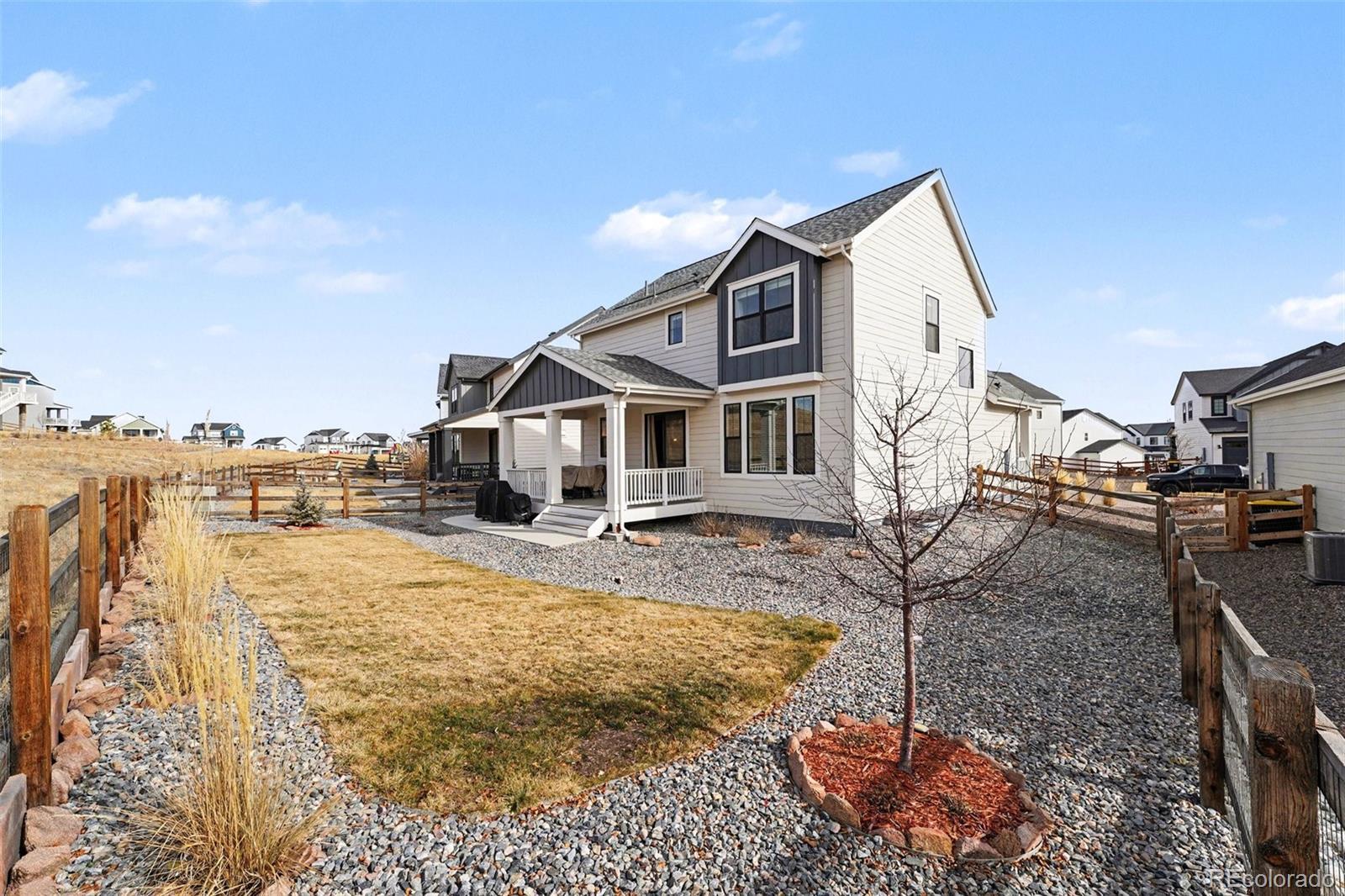 Welcome to this beautifully designed home offering a spacious open concept living area perfect for everyday comfort and entertaining. The modern kitchen features a large island with bar seating and flows seamlessly into the main dining and living space, creating an inviting central hub of the home. Upstairs, the primary bedroom includes an ensuite bath with dual sinks, a vanity area, a walk-in shower, and a walk-in closet. Two additional bedrooms and a full bath complete the upper level, providing flexible space to fit your needs. A large unfinished basement offers endless potential for future expansion, storage, or customization. Step outside to enjoy the fully fenced yard with a covered deck and greenspace, ideal for relaxing or hosting gatherings. Located near local favorites like Casey Jones Park and Running Creek Park, with convenient access to shopping and dining in downtown Elizabeth and nearby Parker, you’ll appreciate the balance of small-town charm and everyday convenience this area provides. Click the Virtual Tour link to view the 3D walkthrough. Discounted rate options and no lender fee future refinancing may be available for qualified buyers of this home.
