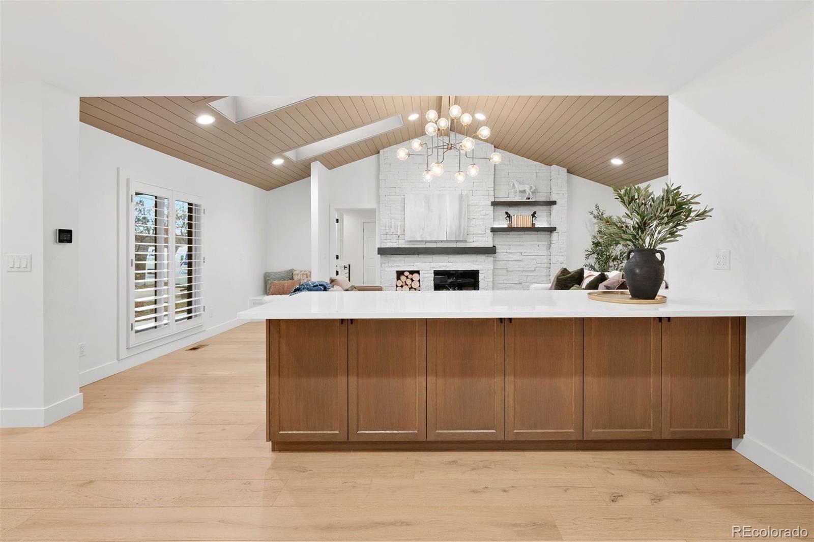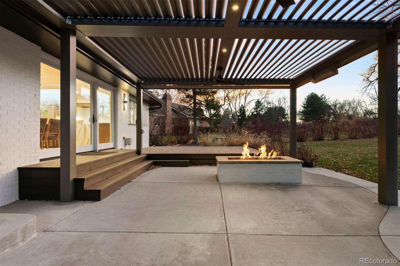 Welcome to One Club Lane, where modern comfort meets effortless Colorado living. Perfectly positioned on a lush, private lot just moments from Columbine Country Club, this thoughtfully updated ranch offers a rare blend of style, function, and indoor-outdoor living. Behind its clean, understated exterior lies a warm, light-filled home designed for both everyday ease and memorable entertaining. Wide-plank, white-washed wood floors and abundant natural light create a seamless flow across the main level. The welcoming foyer opens to a refined dining space and a stunning chef’s kitchen, anchored by a waterfall quartz island and outfitted with Wolf and Sub-Zero appliances. A serving window connects the kitchen to the outdoor living areas, while a fully equipped butler’s pantry—complete with a second oven, dishwasher, microwave, coffee bar, and generous storage—keeps hosting effortless and organized. Comfortable yet sophisticated living spaces are enhanced by modern gas fireplaces, offering inviting gathering areas throughout. Tucked away in a private bedroom wing, three spacious suites provide quiet retreats, including a serene primary suite with direct patio access, a spa-inspired five-piece bath, and an oversized dressing room. The finished lower level expands the home’s versatility with a large great room, an additional bedroom with egress windows, and a full bath—ideal for guests, recreation, or multigenerational living. Outdoor living is truly exceptional. A Struxure louvered pergola with remote-controlled shades, heaters, ceiling fans, and a gas firepit creates a year-round entertaining space surrounded by mature trees. A charming footbridge leading to the adjacent par-3 course completes the resort-like setting. Ideally located near downtown Littleton, Chatfield Reservoir, and miles of scenic trails, One Club Lane offers the perfect balance of privacy, convenience, and refined living—an exceptional opportunity in one of the area’s most sought-after neighborhoods.
