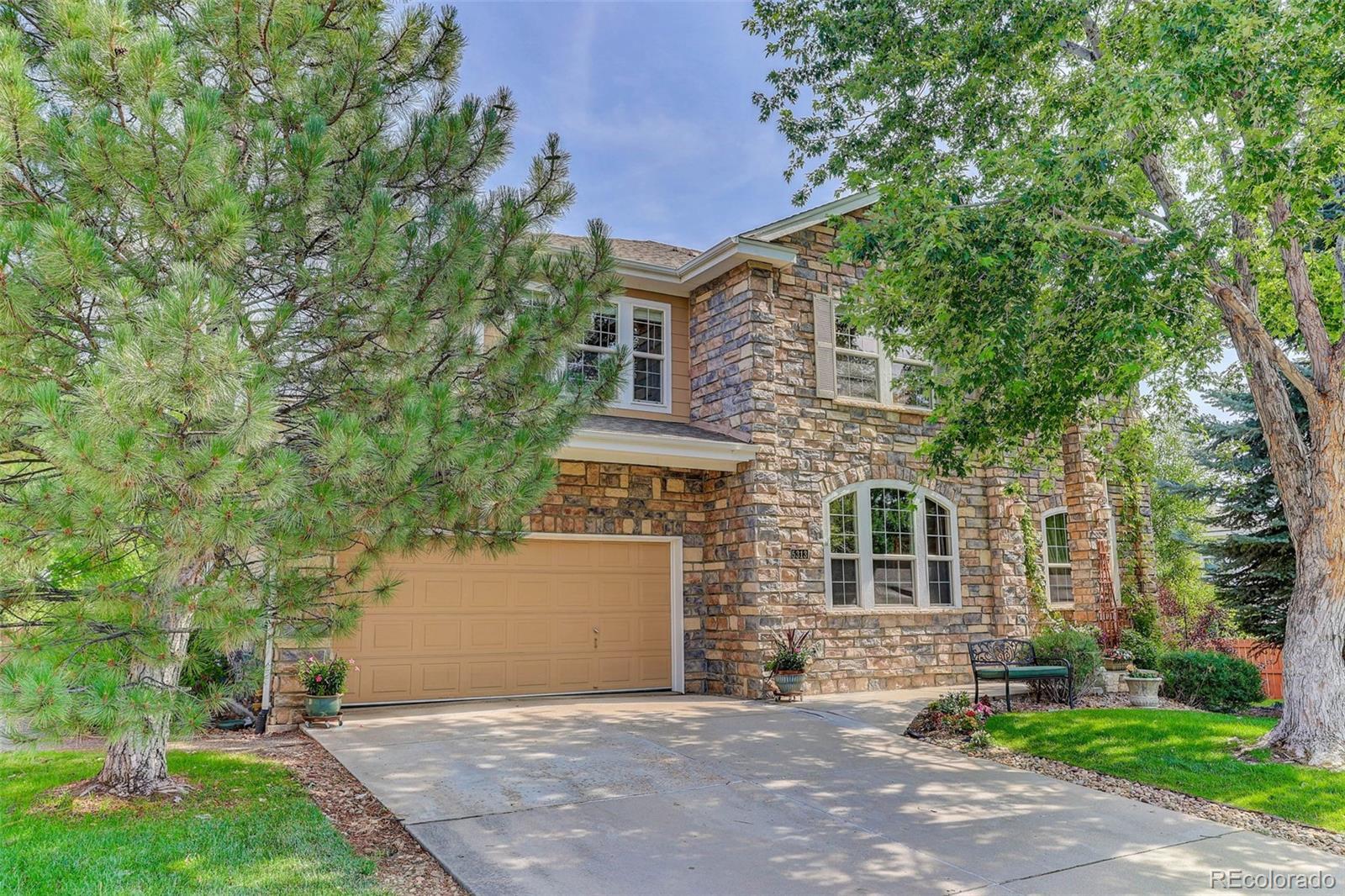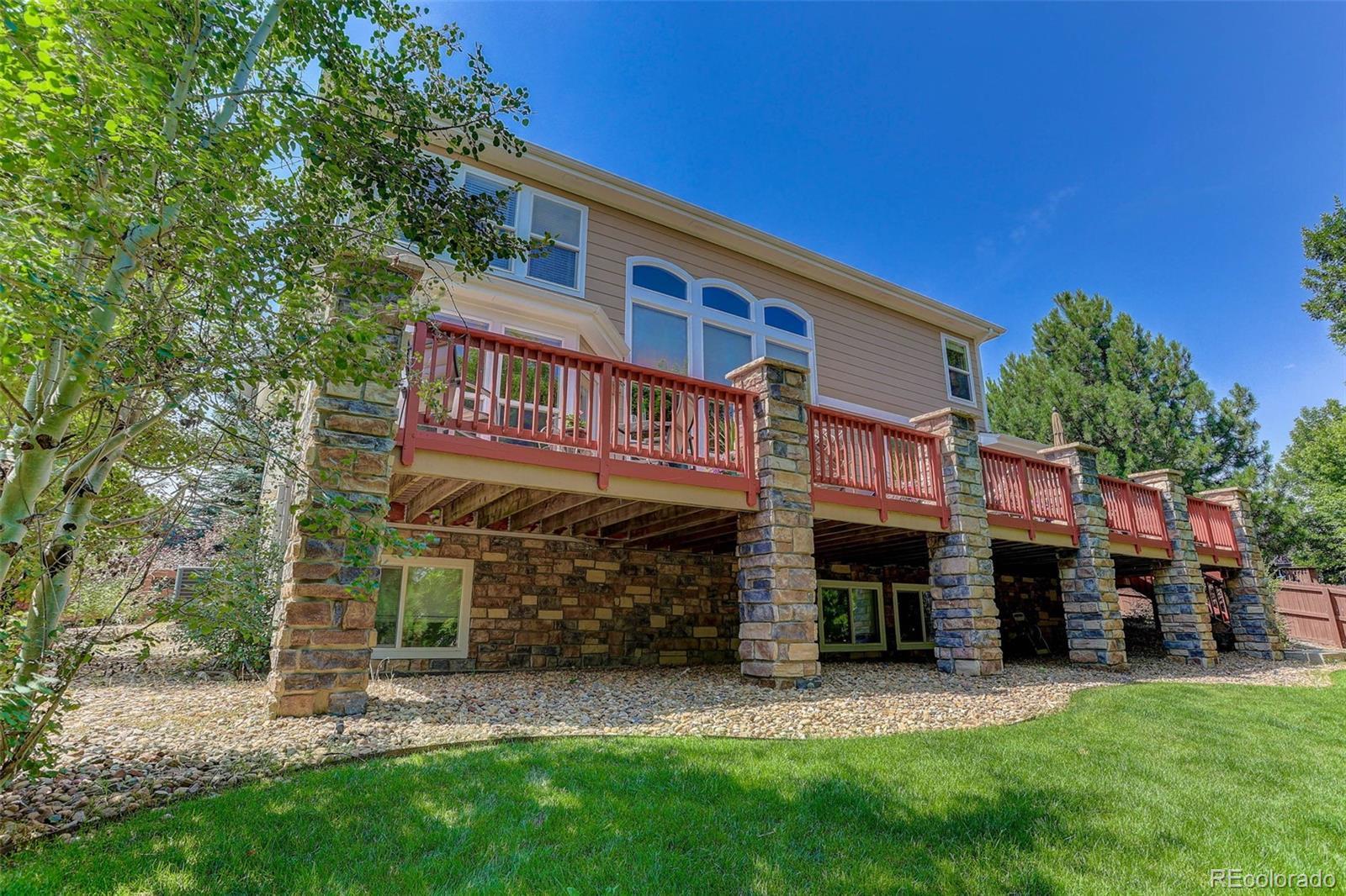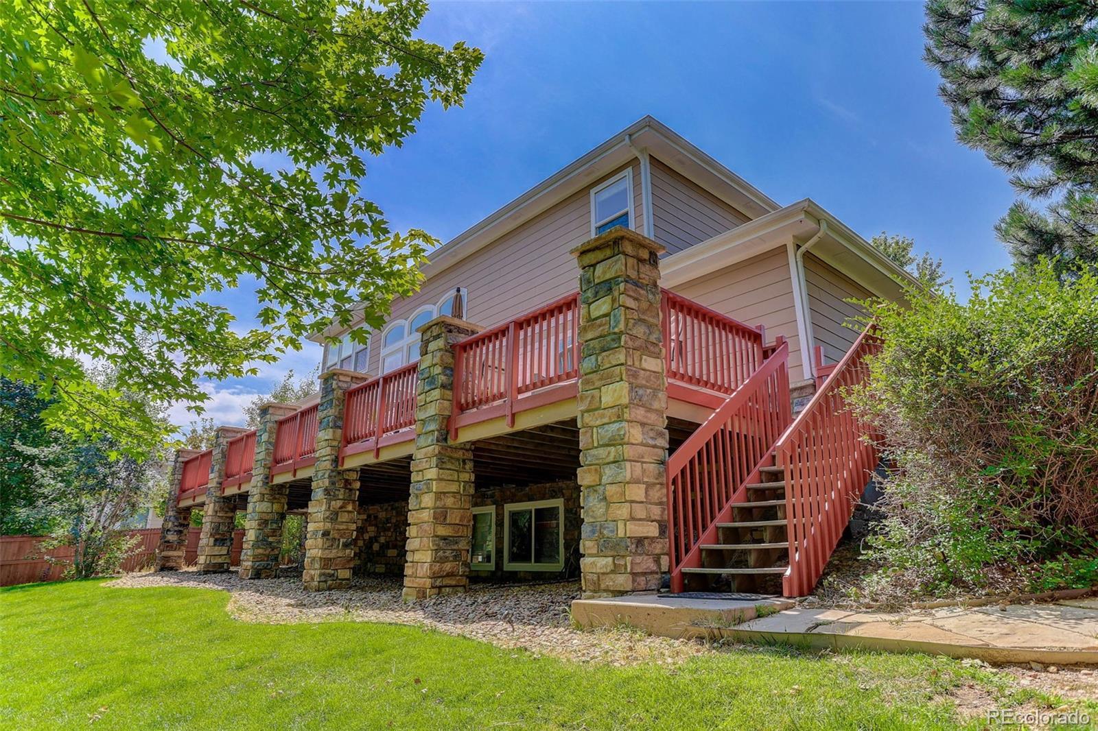Tucked into a quiet cul-de-sac in Broomfield’s coveted Aspen Creek neighborhood, this home blends elegant design with scenic Colorado living in Broomfield, recently named the #1 best city to live in out west! The residence is defined by rustic elegance, highlighted by a soaring two-story family room with a dramatic stone fireplace with a log mantle and walls of windows that bathe the interior in natural light. The gourmet kitchen serves as the heart of the home, boasting slab granite countertops, modern stainless-steel appliances, and gleaming hardwood floors that flow throughout the main level. For those seeking flexibility, a dedicated study offers a quiet retreat for remote work, while the upstairs loft provides a versatile area for play or relaxation. The full basement provides lots of room for storage or expanded living area. Situated on a rare, oversized lot, the property offers a level of privacy and outdoor space that is increasingly hard to find. Step outside to the expansive deck, a true showstopper where privacy abounds in the summer months thanks to lush, mature landscaping and gorgeous maple trees. The location perfectly complements the home's interior, providing direct access to scenic trails and a short walk to the neighborhood pool and the highly regarded Aspen Creek K-8 School. With a 3-car garage offering space for all your outdoor toys and affordable HOA fees covering trash, recycling, and common amenities, this home delivers an unbeatable lifestyle in the region's premier community.