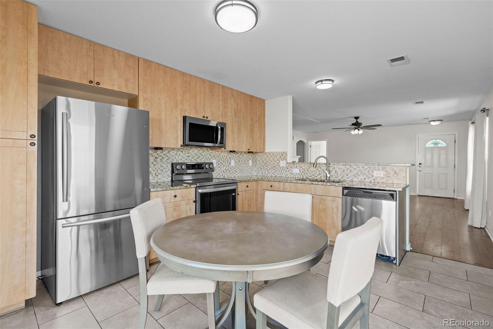 You don’t want to miss this opportunity to own a move-in ready 3 bedroom, 2 bathroom ranch on a generous lot with a large deck and backyard. Designed for comfort and convenience, the single-level layout connects the living, dining, and updated kitchen in an easy, open flow that works for everyday life and effortless entertaining. Inside, 1,260 square feet lives larger with brand new carpet, fresh finishes, and smart storage. A sunlit living room with a gas fireplace sets a welcoming tone and carries naturally to the dining area. The kitchen is ready for weeknight dinners and weekend brunch, offering ample prep space and a clean, updated look. Down the hall, three well-sized bedrooms provide quiet retreats, and two tidy bathrooms keep routines simple. The two car garage adds space for vehicles, gear, and projects, and the no-stairs design makes coming and going a breeze. Step outside and your living space expands. A wide deck overlooks an expansive backyard with plenty of room for gardening, play, pets, and relaxing evenings under big Colorado skies. Host a barbecue, set up a fire pit, or just unwind after a long day. Location is a standout. You are minutes to I-76 for quick trips to Denver and DIA, close to Prairie Center shopping and dining, and a short drive to Barr Lake State Park for trails, birding, and weekend picnics. Local parks, community amenities, and everyday essentials are all nearby, so errands and recreation fit easily into your schedule. Opportunities that blend single-story ease, move-in readiness, and a convenient location do not come around often. Schedule your showing and start imagining life at 209 Vista Blvd. The preferred lender for this listing is providing a free 1-0 temporary rate buy down for qualified buyers to reduce their interest rate on this property.