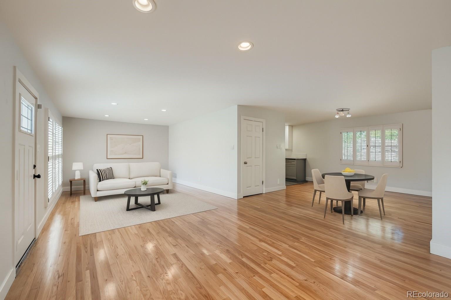 Welcome to this light-filled, move-in ready ranch located in the highly desirable Southmoor Park neighborhood of South Denver. This home blends charm and modern comfort with an open-concept layout, hardwood floors throughout, and a fully finished basement perfect for guests or entertaining. Step inside to discover a bright and inviting main level featuring two spacious living areas, a dedicated dining room, and an updated kitchen with granite countertops, 42-inch cabinets, stainless steel appliances, and a view of the lush backyard. The primary suite offers a private bathroom, while a second bedroom, full bathroom, and main-floor laundry add convenience and functionality. Downstairs, the finished basement provides endless possibilities, a large family or media room with an egress window, two additional bedrooms, a bathroom with dual access, and bonus storage rooms. It’s the perfect setup for a guest suite, home office, or gym. Outside, enjoy the mature landscaping, spacious yard, and backyard shed for extra storage or hobby space. The location can’t be beat, walking distance to neighborhood parks and Thomas Jefferson High School, and just minutes from Park Hampden Shopping Center, Cherry Creek State Park, I-25, I-225, and multiple light rail stations. This South Denver gem has everything you’ve been looking for, updated finishes, flexible living space, and an unbeatable location. Schedule your private tour today and make this beautiful ranch your new home!