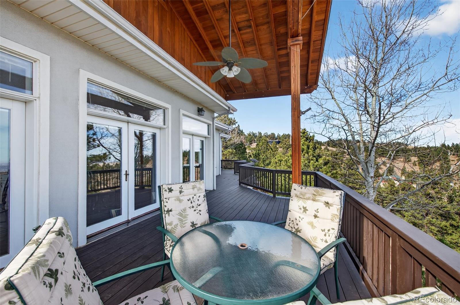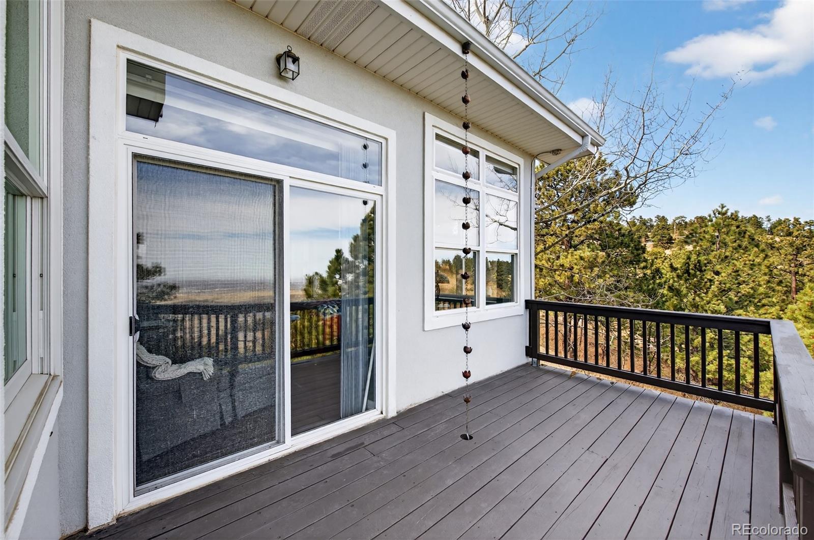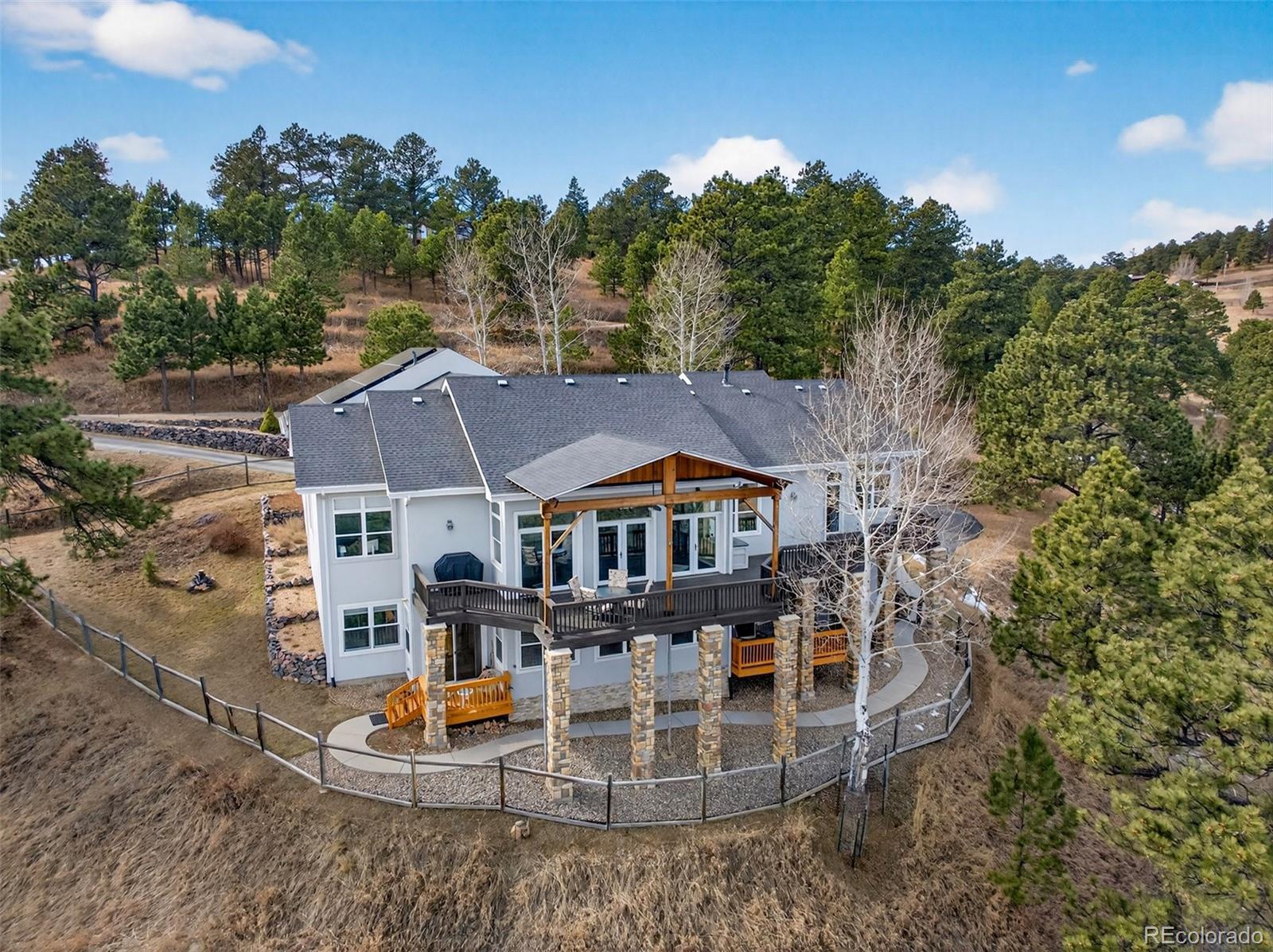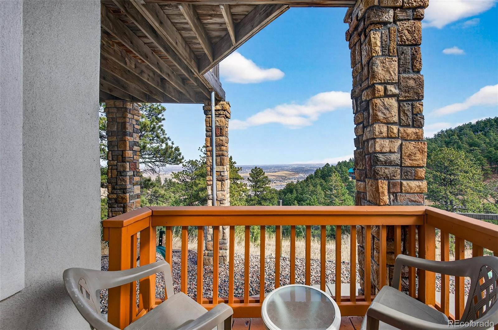 Welcome Home! Step inside and feel instantly at ease in this light-filled, thoughtfully designed residence. This rare ranch-style home is perfectly situated on over 2 private acres on a peaceful street, offering breathtaking, unobstructed views of Denver—from glowing sunrises to sparkling city lights at night. Built in 2000, this custom 4,768 sq ft stucco ranch showcases sleek design and quality craftsmanship with steel construction, soaring open-beam ceilings, and an expansive great room layout. Three sets of French doors seamlessly connect the interior to a large deck, creating an ideal setting for entertaining or simply soaking in the spectacular scenery. Refined finishes include a tiled entry, hardwood floors, granite surfaces, soft neutral hues, and two striking rock fireplaces. The open floor plan seamlessly connects the family room, dining area, and kitchen, creating an ideal space for both everyday living and entertaining. The dream kitchen anchors the home, while the main-floor primary suite offers a true retreat with a cozy two-sided fireplace shared with the well-appointed bath. The light-filled walkout lower level offers a generous recreation room with a convenient entertainer's bar, two well-appointed guest suites with two additional bathrooms (one ensuite), a second laundry area, and ample storage throughout. Just a short walk to Apex Park trails and open space, this exceptional home combines privacy, design, and unforgettable views—truly a one-of-a-kind opportunity. Oversized 2.5 car garage that has ample space for 3 vehicles and extra storage. Solar Generation System and Tesla Powerwall 3 40.5 kWh Electrical Backup Storage System (both fully paid off).