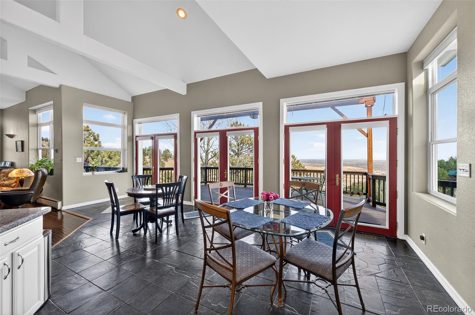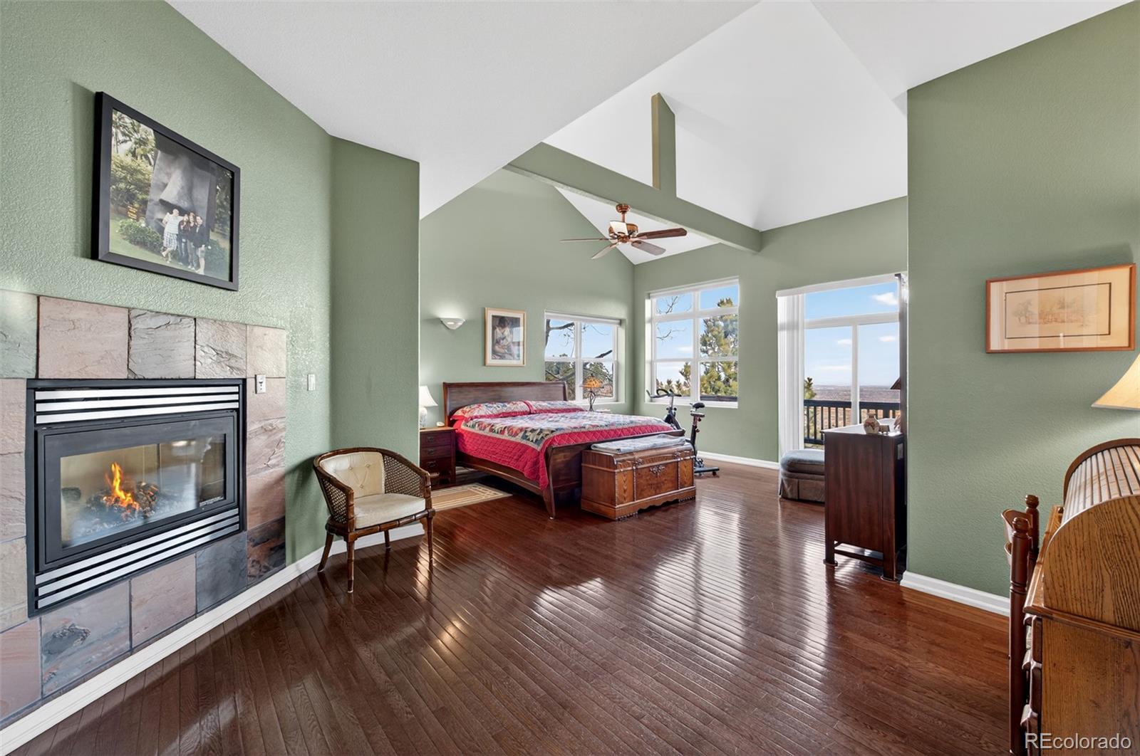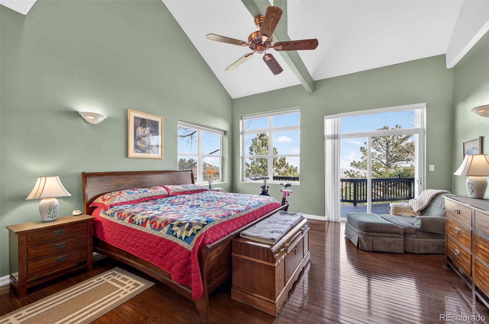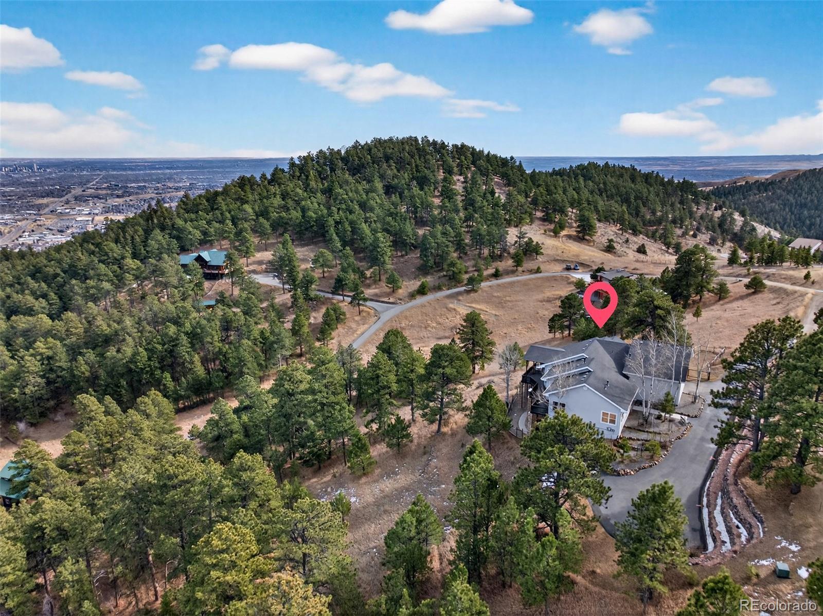 Welcome Home! Step inside and feel instantly at ease in this light-filled, thoughtfully designed residence. This rare ranch-style home is perfectly situated on over 2 private acres on a peaceful street, offering breathtaking, unobstructed views of Denver—from glowing sunrises to sparkling city lights at night. Built in 2000, this custom 4,768 sq ft stucco ranch showcases sleek design and quality craftsmanship with steel construction, soaring open-beam ceilings, and an expansive great room layout. Three sets of French doors seamlessly connect the interior to a large deck, creating an ideal setting for entertaining or simply soaking in the spectacular scenery. Refined finishes include a tiled entry, hardwood floors, granite surfaces, soft neutral hues, and two striking rock fireplaces. The open floor plan seamlessly connects the family room, dining area, and kitchen, creating an ideal space for both everyday living and entertaining. The dream kitchen anchors the home, while the main-floor primary suite offers a true retreat with a cozy two-sided fireplace shared with the well-appointed bath. The light-filled walkout lower level offers a generous recreation room with a convenient entertainer's bar, two well-appointed guest suites with two additional bathrooms (one ensuite), a second laundry area, and ample storage throughout. Just a short walk to Apex Park trails and open space, this exceptional home combines privacy, design, and unforgettable views—truly a one-of-a-kind opportunity. Oversized 2.5 car garage that has ample space for 3 vehicles and extra storage. Solar Generation System and Tesla Powerwall 3 40.5 kWh Electrical Backup Storage System (both fully paid off).