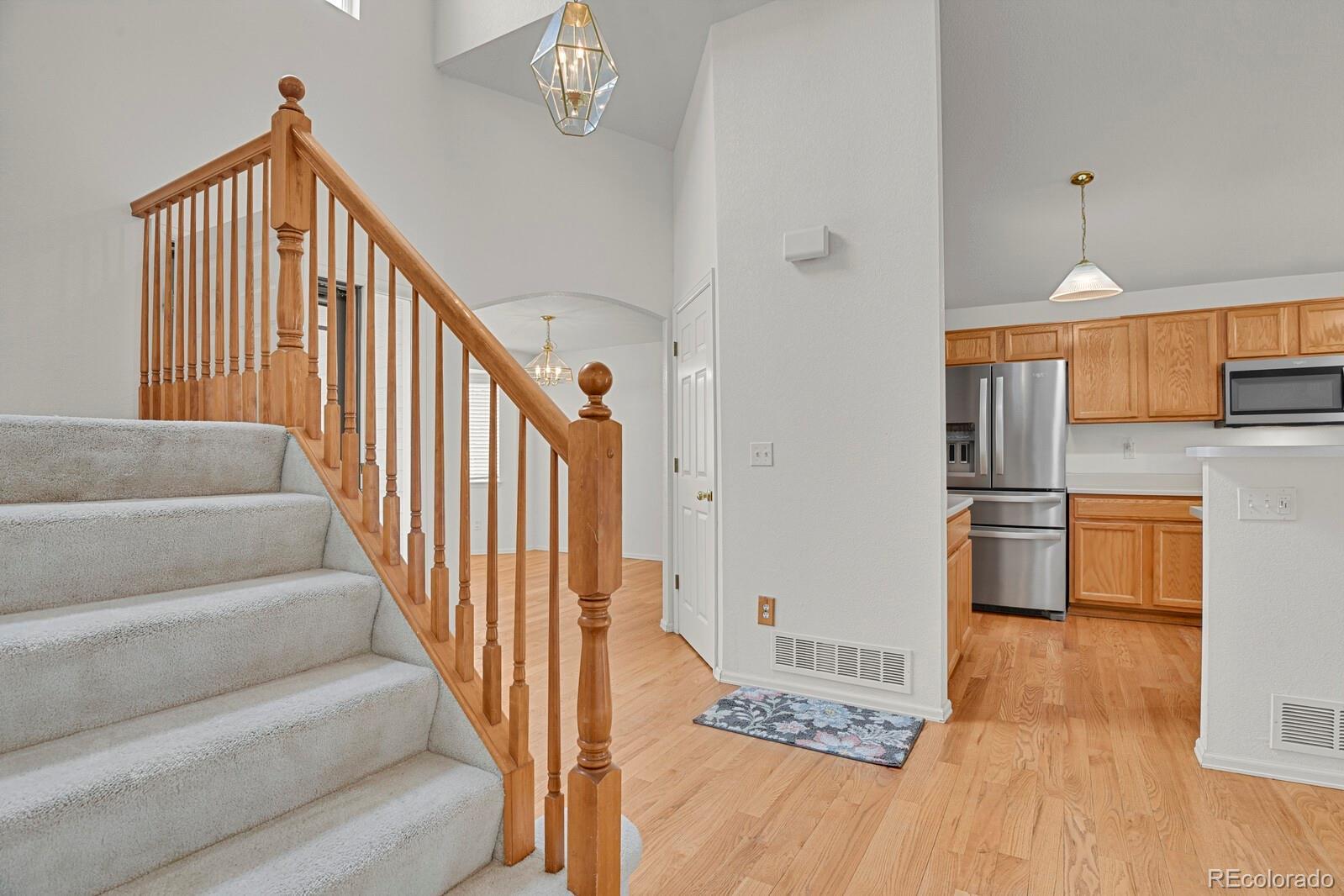 Welcome home to this 4-bedroom, 2.5-bath residence tucked into a quiet cul-de-sac next to Crescent Park in the heart of Erie. The functional floor plan includes a main-floor primary suite, offering flexibility for a variety of living needs. For added peace of mind, the seller is including a one-year home warranty. The main level features hardwood floors, abundant natural light, and an open-concept layout connecting the living, dining, and kitchen spaces. The kitchen offers ample cabinetry, generous counter space, stainless steel appliances, and room for an everyday dining table, in addition to a separate dining room. Sliding glass doors open to the backyard and concrete patio, creating easy indoor-outdoor living. Upstairs, you’ll find three additional bedrooms, a full bathroom, and a versatile loft well suited for a home office, creative space, or additional living area. The unfinished basement is plumbed for a future bathroom and includes egress windows, providing excellent storage and strong potential for future finish. Additional features include central A/C, an attached 3-car garage, and a fully fenced backyard. Enjoy immediate access to Crescent Park, nearby walking trails, downtown Erie dining, the recreation center, ball fields, and a full calendar of community events. Conveniently located near Highway 287 and I-25, this home offers the appeal of small-town living with everyday connectivity.